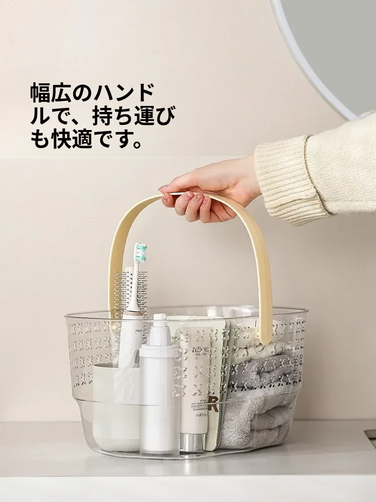 FaSoLa 手提シャワーバスケット - 衛生的で便利な洗面用具収納バスケット!学生寮や浴場に最適なデザインで、バスルームをスッキリ整理。おしゃれで機能的なアイテムで、毎日のバスタイムを楽しもう!