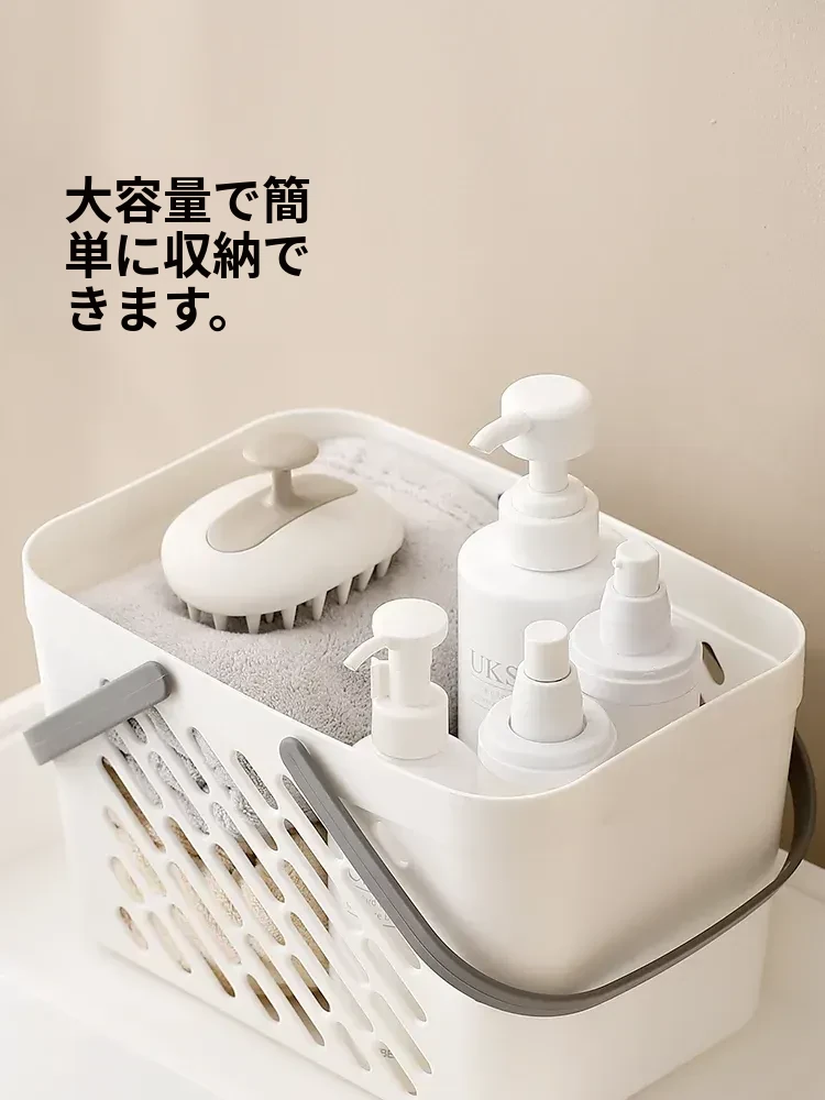 FaSoLa おしゃれなバスルーム収納バスケット - 便利な持ち手付きで、シャワー用品や日用品をスッキリ整理!水切れも良く、寮や浴場でも大活躍のアイテムです。