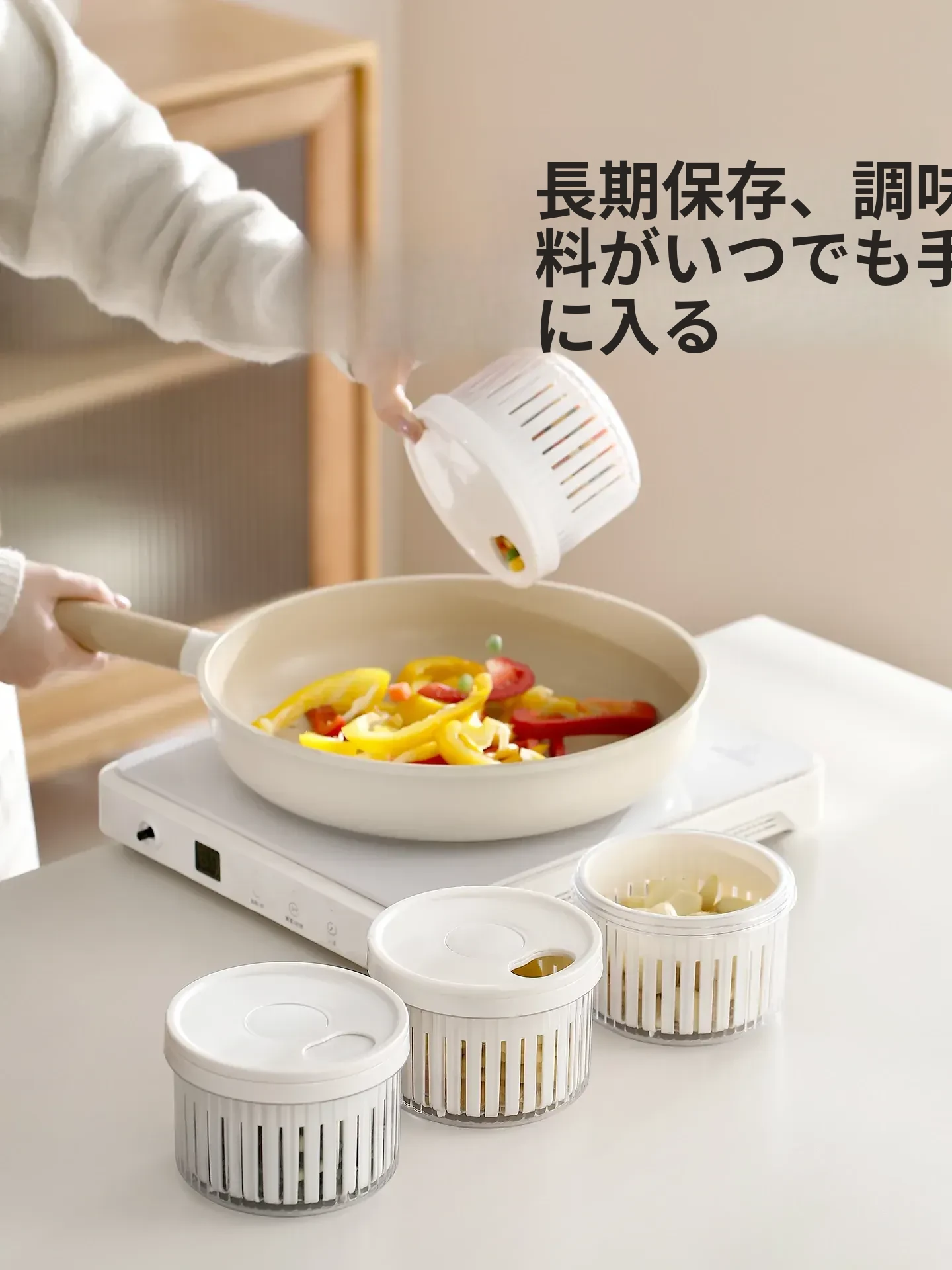 FaSoLaキッチン用ネギ、生姜、ニンニク用水切り調理ボックス - 蓋付きで密封、味が移らない!フルーツや冷蔵庫の保存に最適な収納ボックスです。