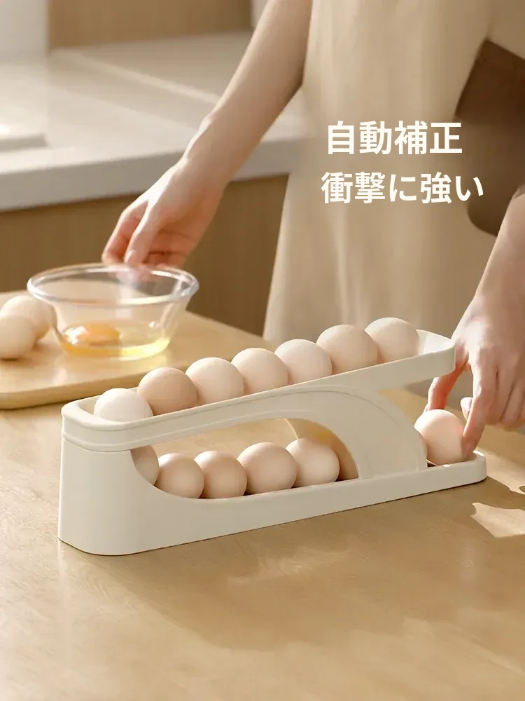 FaSoLaエッグストレージボックス - キッチンや冷蔵庫のサイドドアに最適!食品安全基準を満たした新しいデザインの卵収納ラック。滑り降りるように取り出しやすく、毎日の料理をもっと便利に!