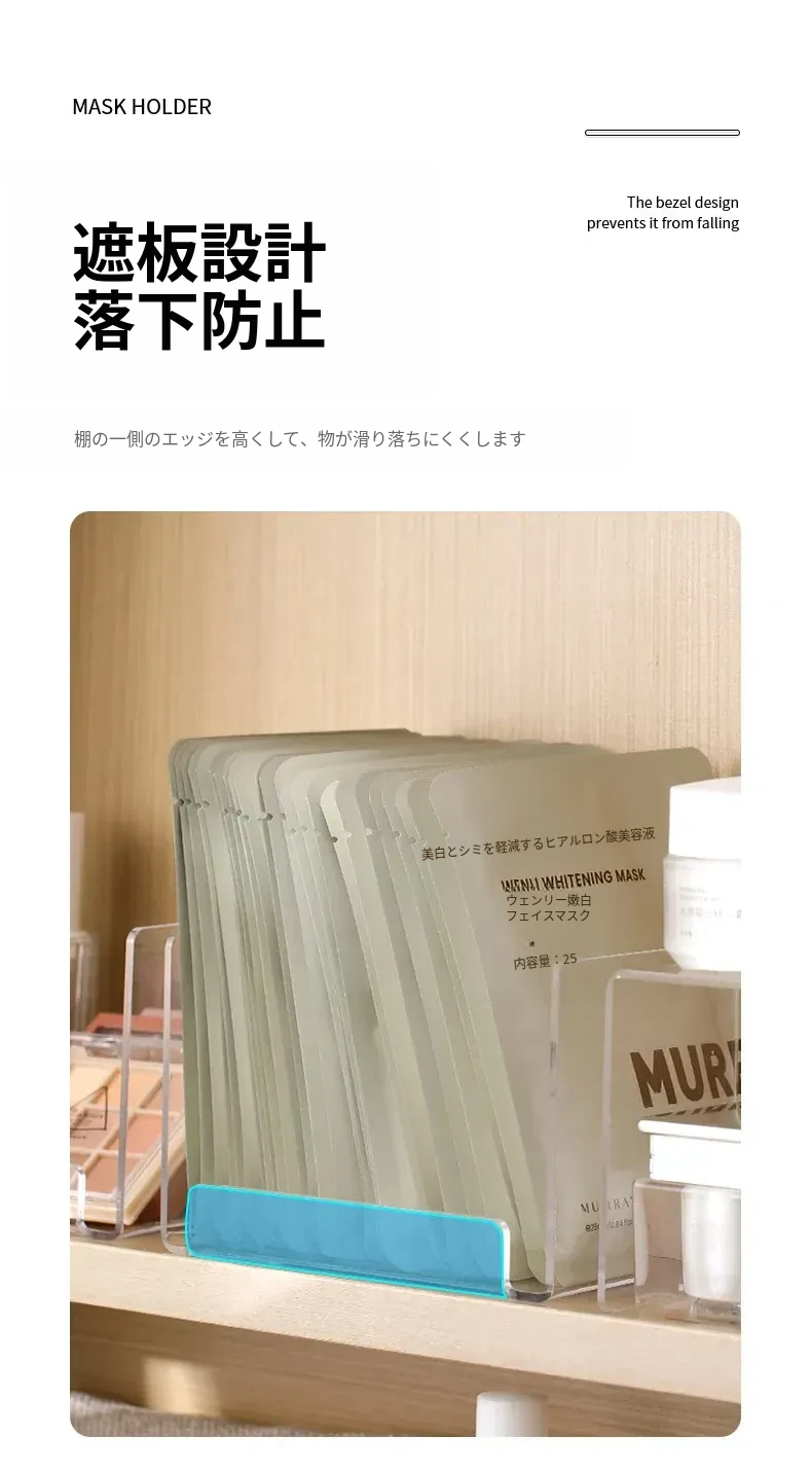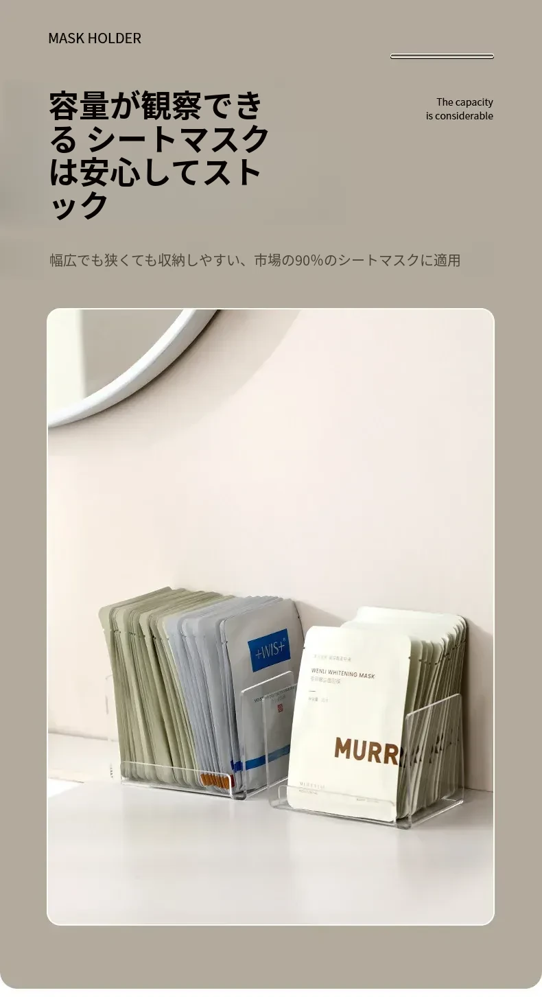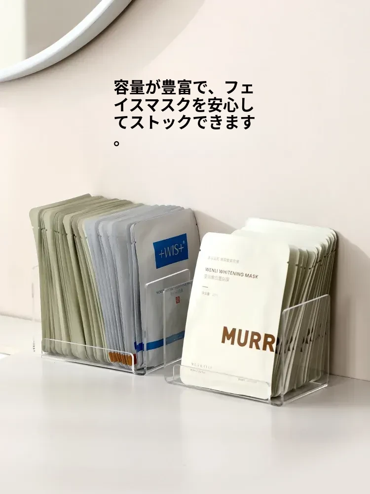 FaSoLaフェイスマスク収納ボックス アクリル製 メイク台用 大容量コスメ整理ラック 透明仕切りボックスでスッキリ整理!おしゃれで実用的なデザインで、あなたのメイクスペースを美しく演出します!