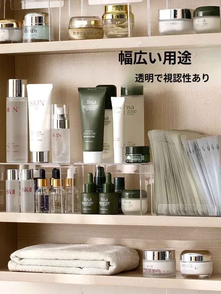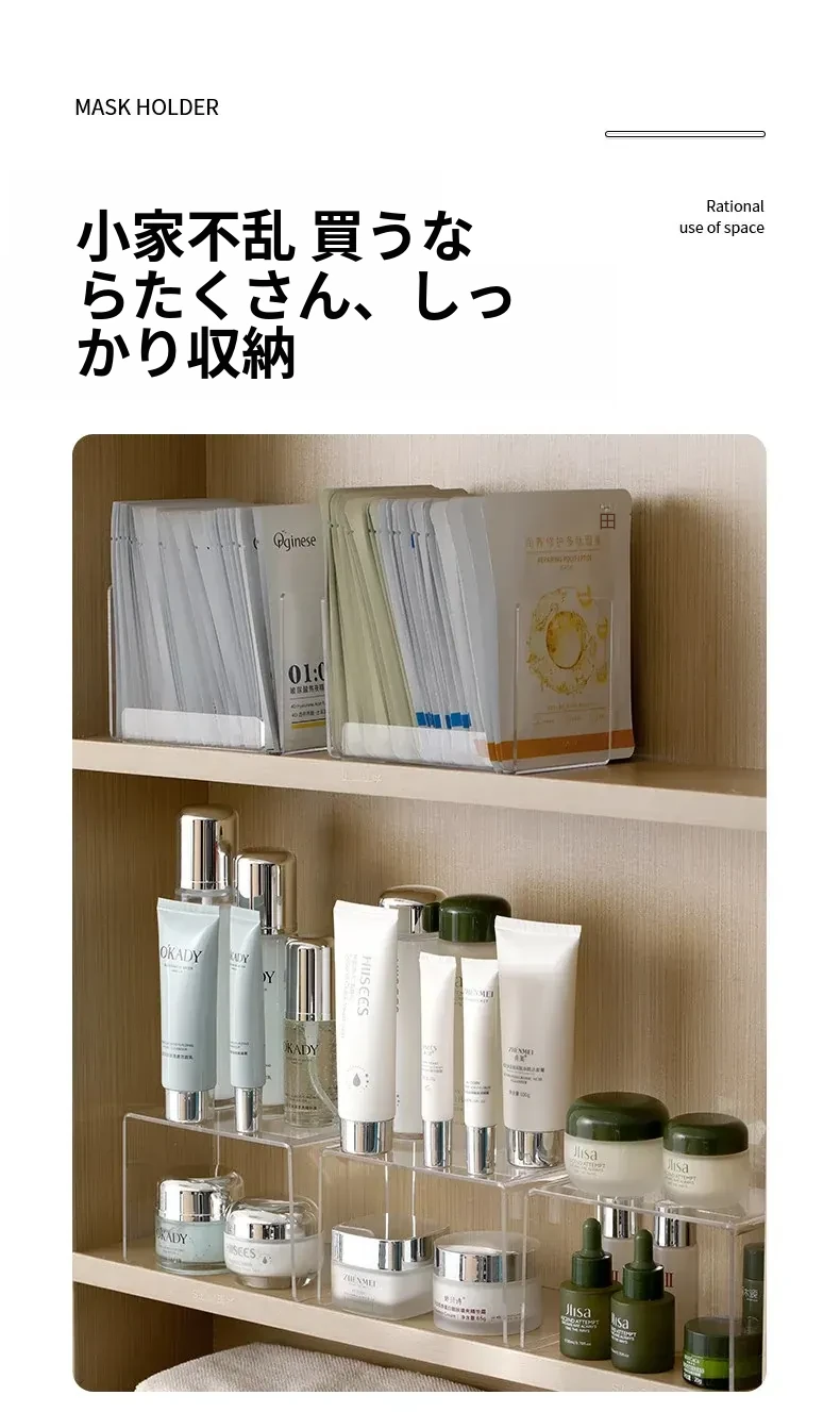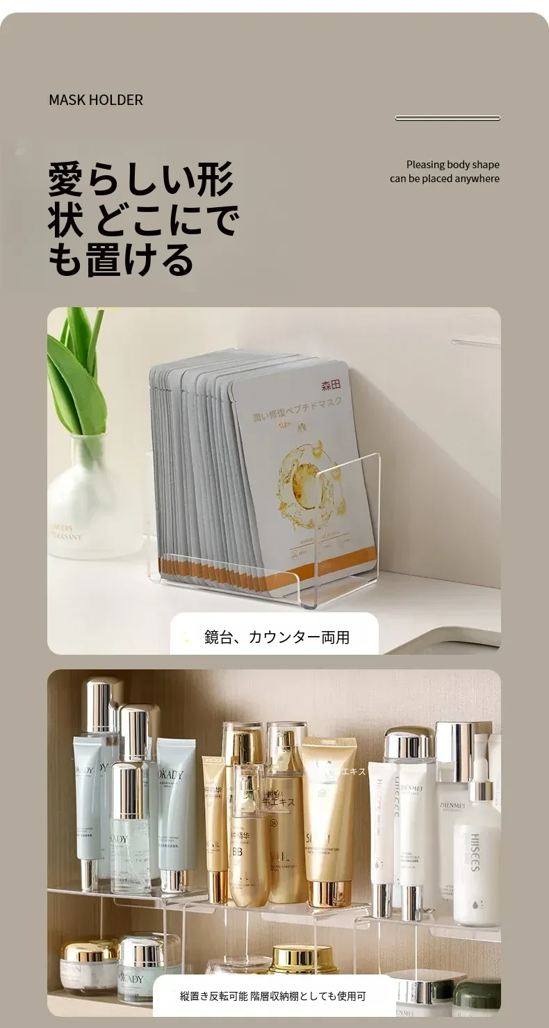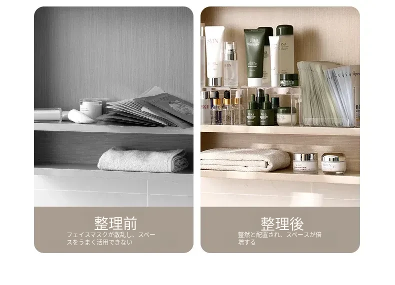 FaSoLaフェイスマスク収納ボックス アクリル製 メイク台用 大容量コスメ整理ラック 透明仕切りボックスでスッキリ整理!おしゃれで実用的なデザインで、あなたのメイクスペースを美しく演出します!