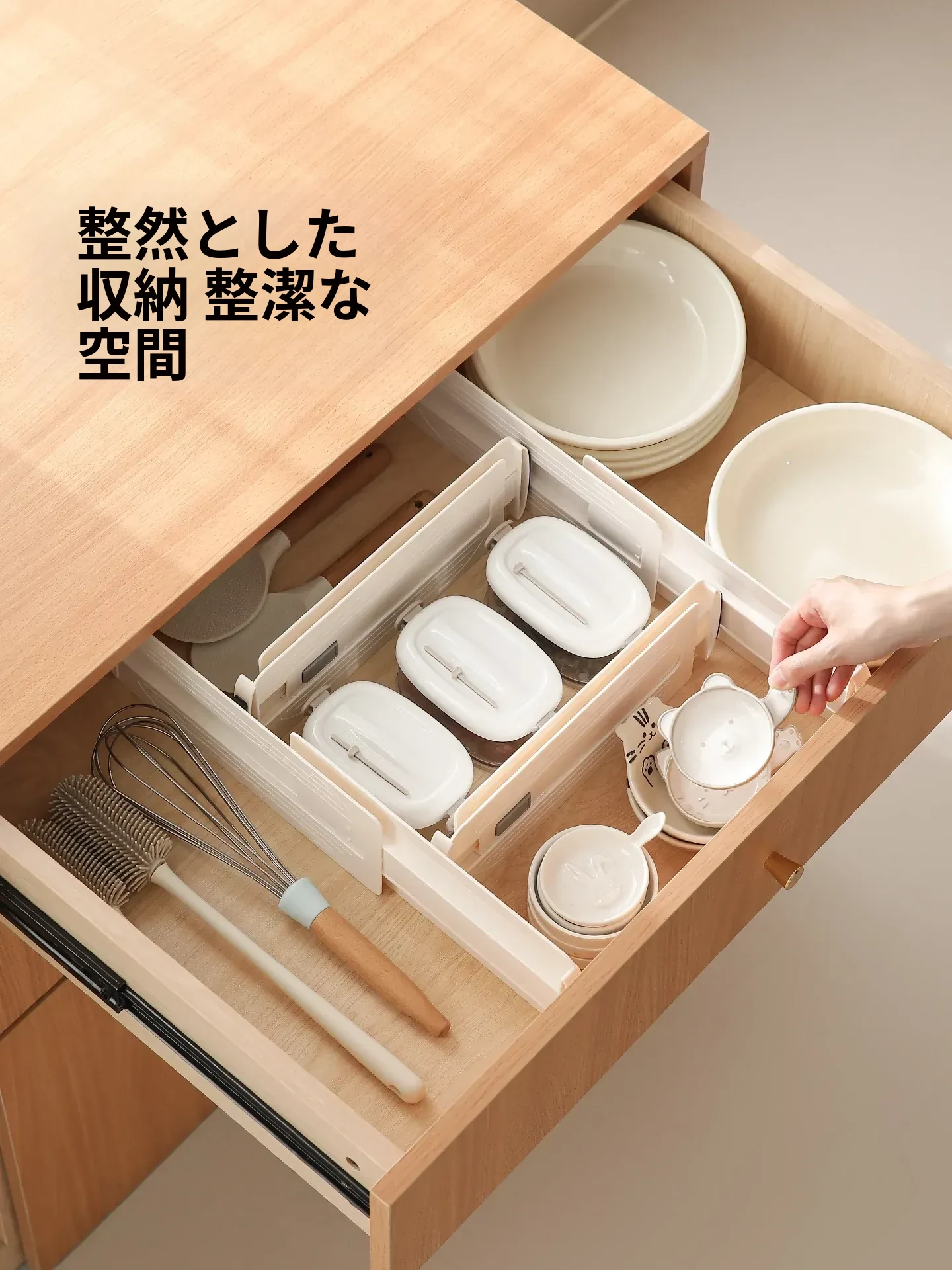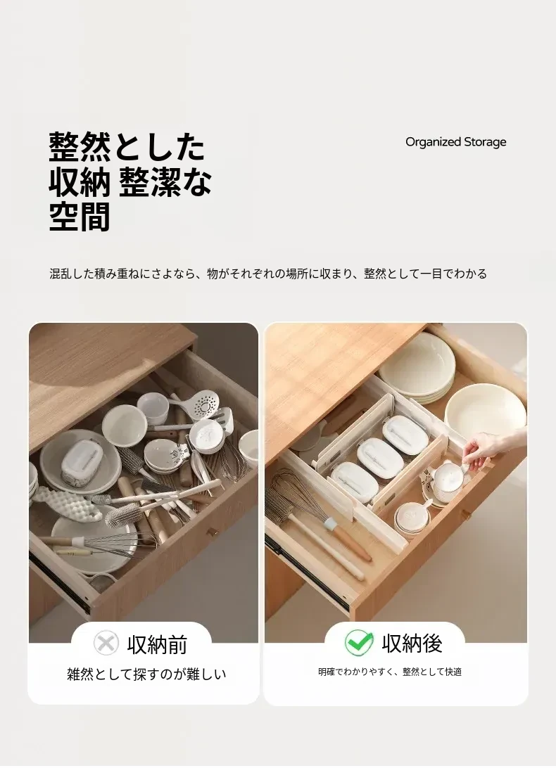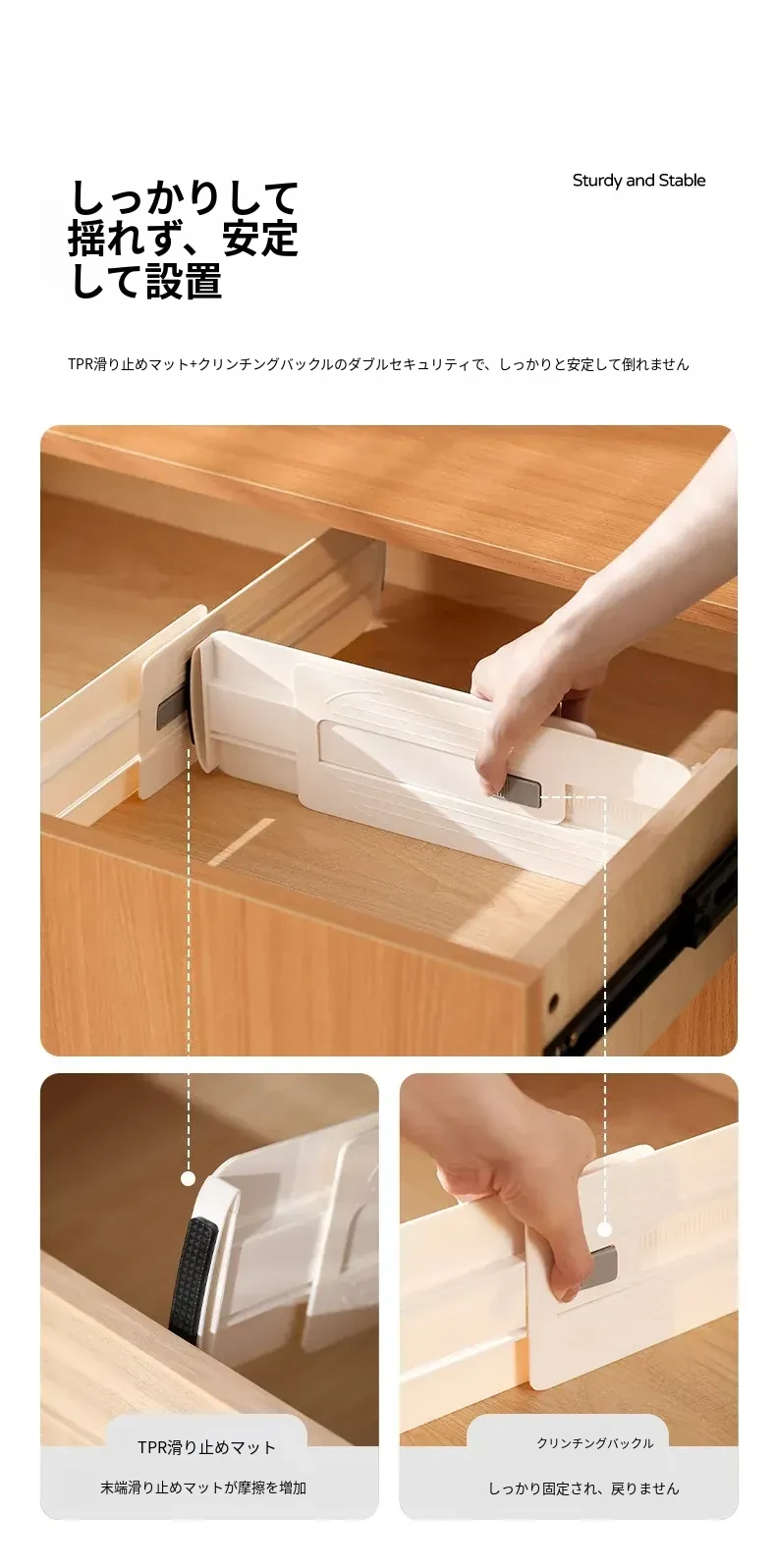 FaSoLa 引き出し仕切り板 - 伸縮可能な収納オーガナイザー、キッチンや家庭用の引き出しをスッキリ整理!あなたの収納スペースを最大限に活用し、使いやすさを向上させる必需品です!