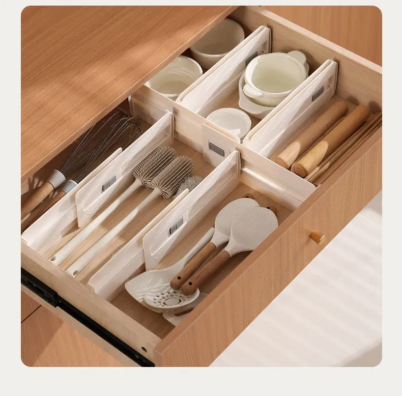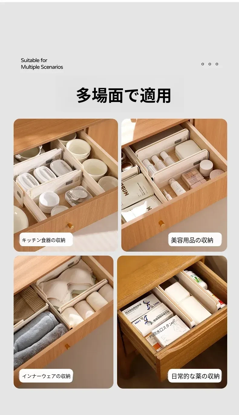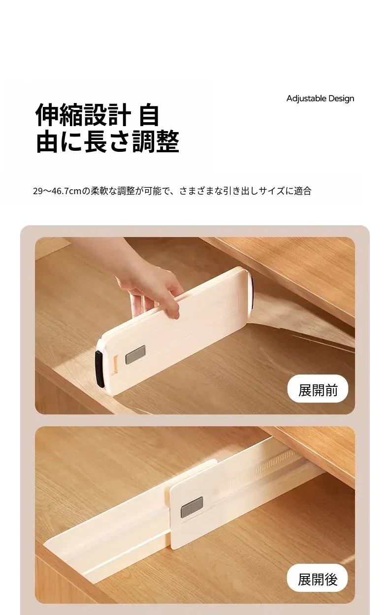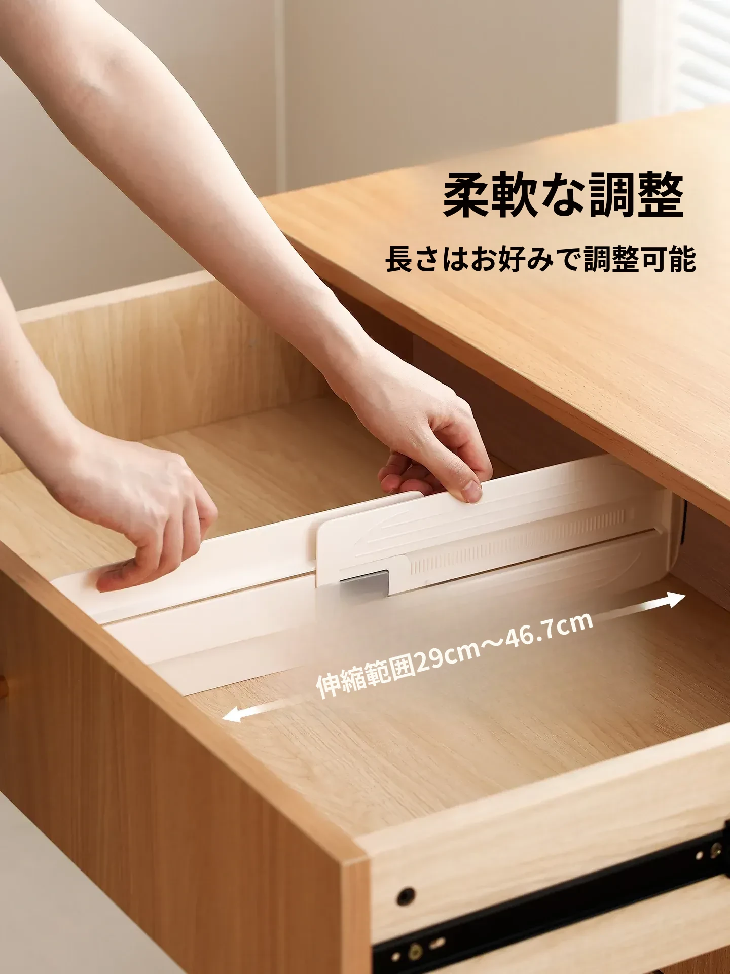 FaSoLa 引き出し仕切り板 - 伸縮可能な収納オーガナイザー、キッチンや家庭用の引き出しをスッキリ整理!あなたの収納スペースを最大限に活用し、使いやすさを向上させる必需品です!