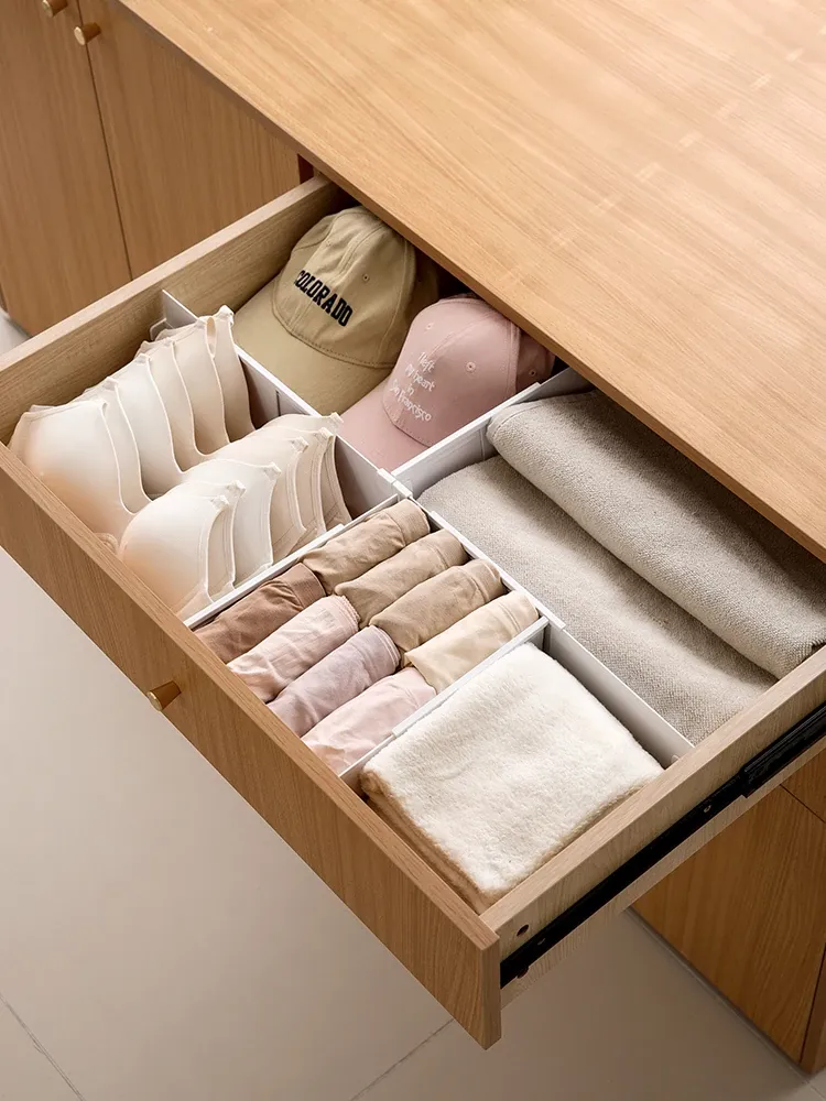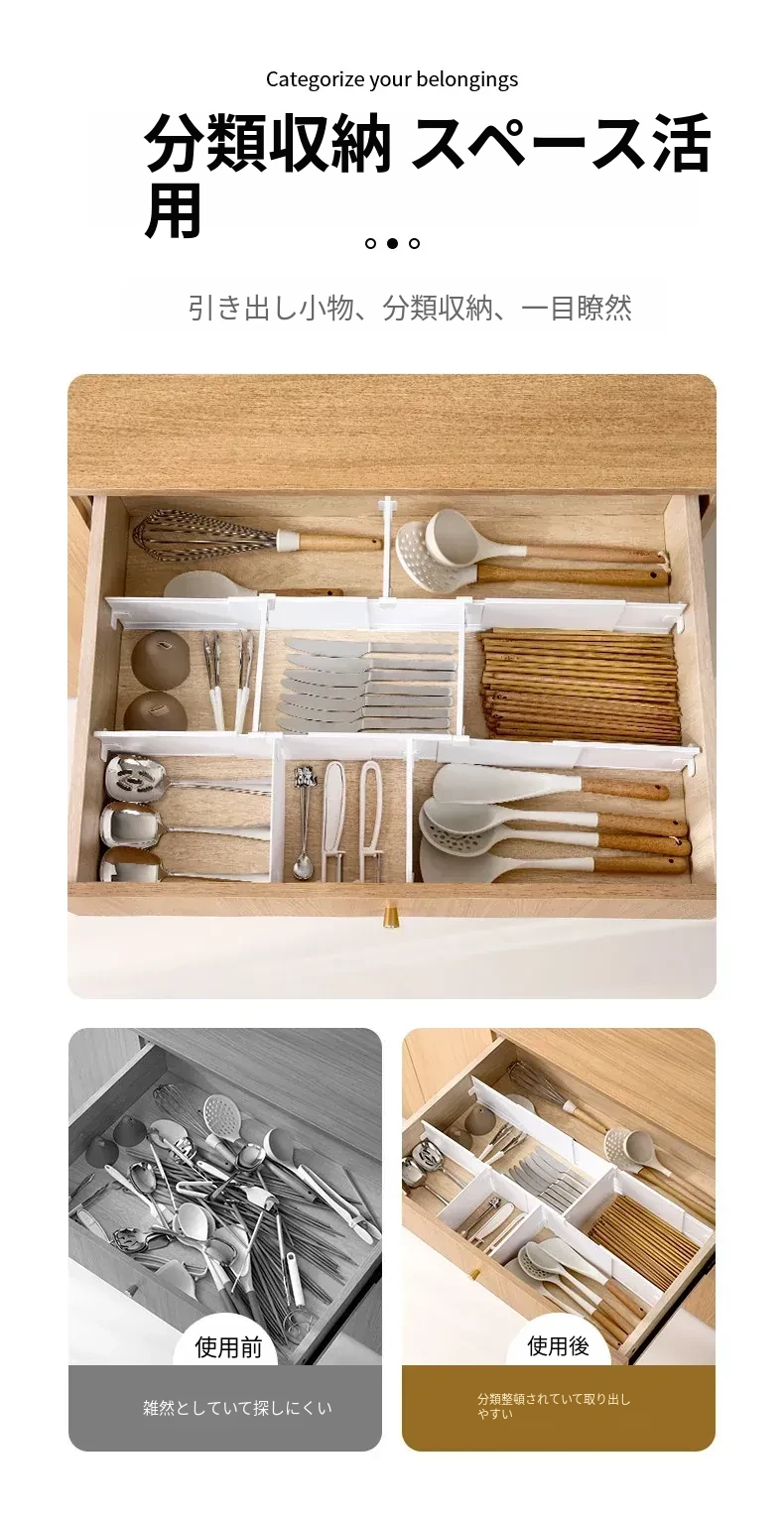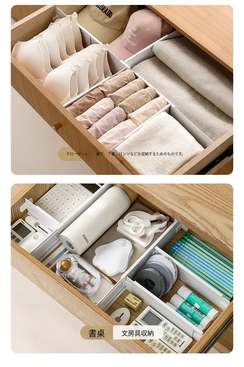 FaSoLa伸縮可能な引き出し仕切り - 自由に組み合わせて収納力アップ!衣類や靴下をスッキリ整理する魔法のアイテム。あなたのクローゼットを整えて、毎日の生活をもっと快適に!