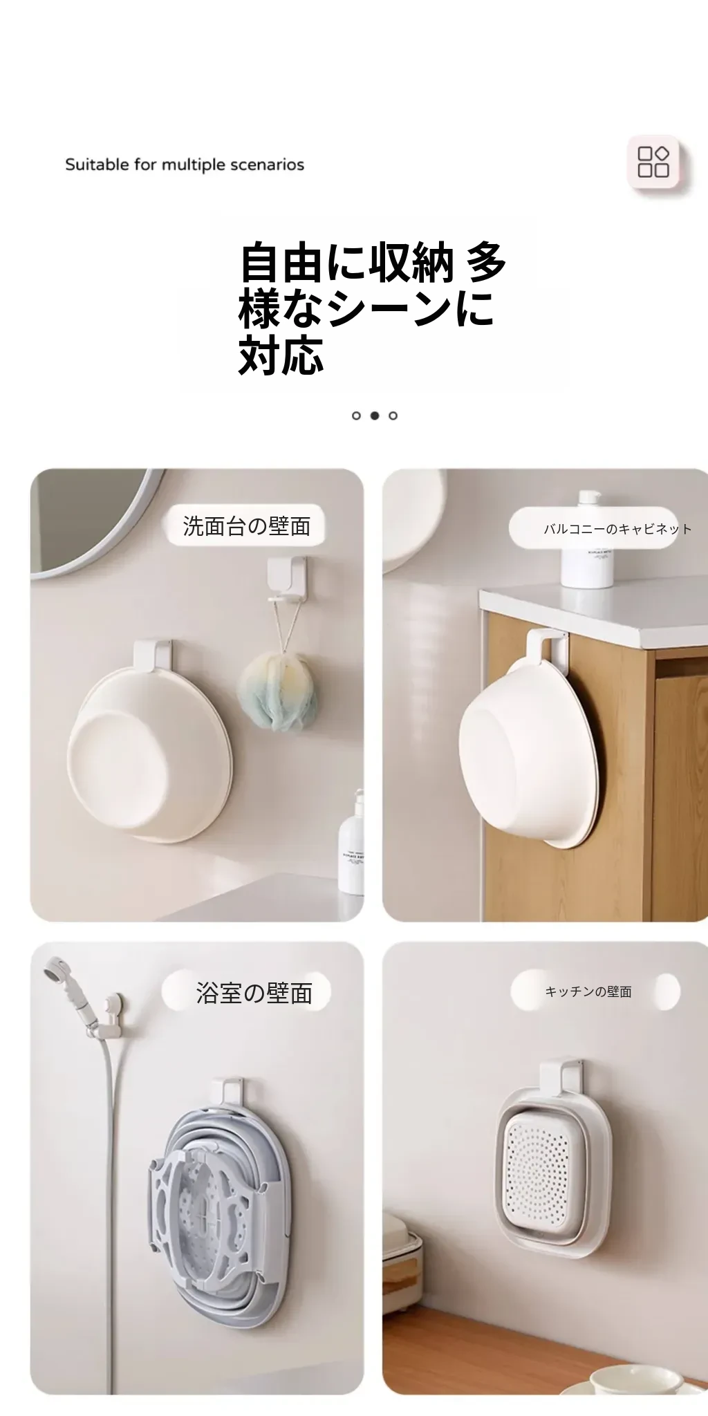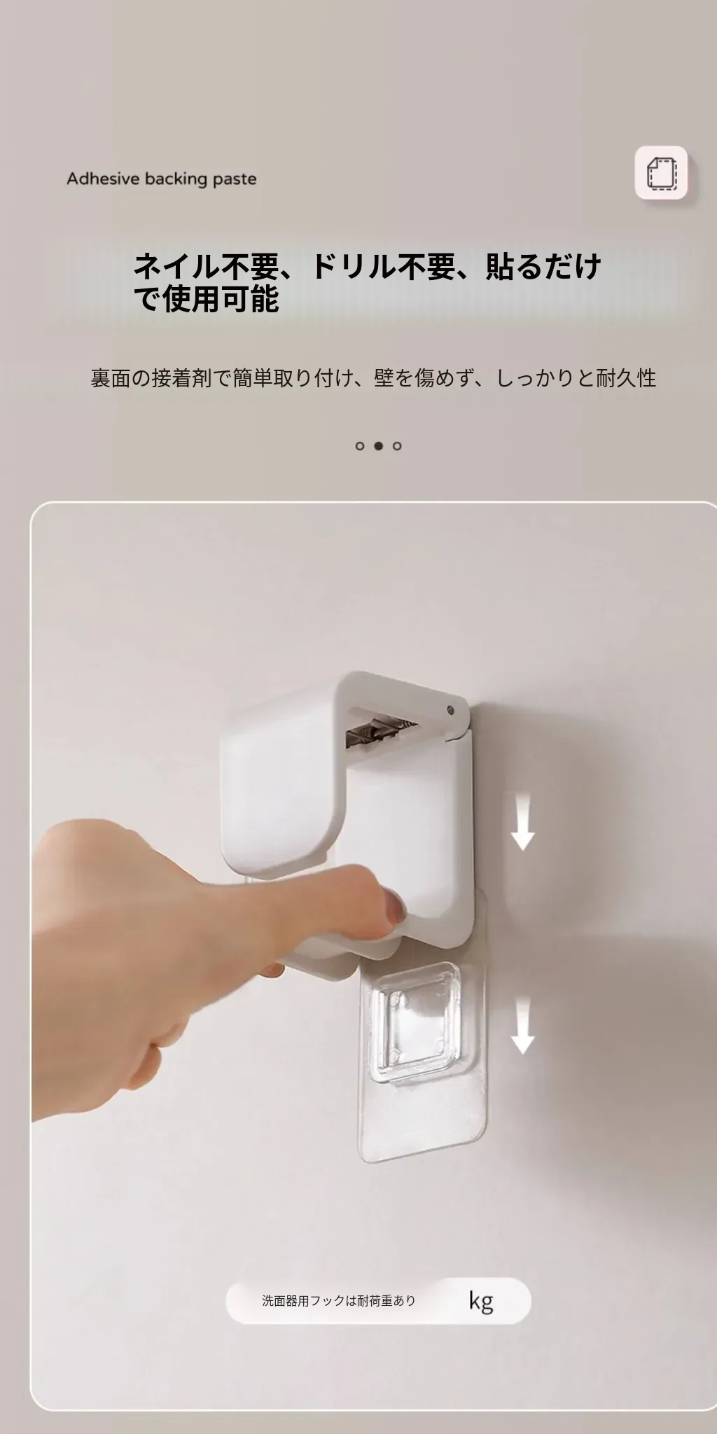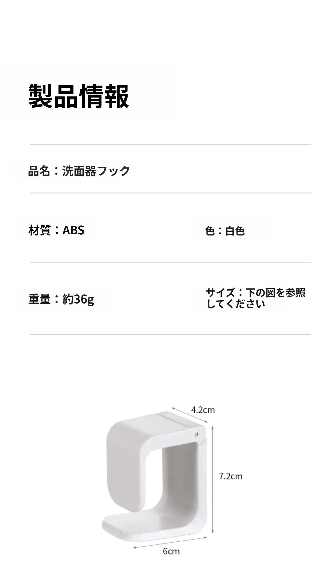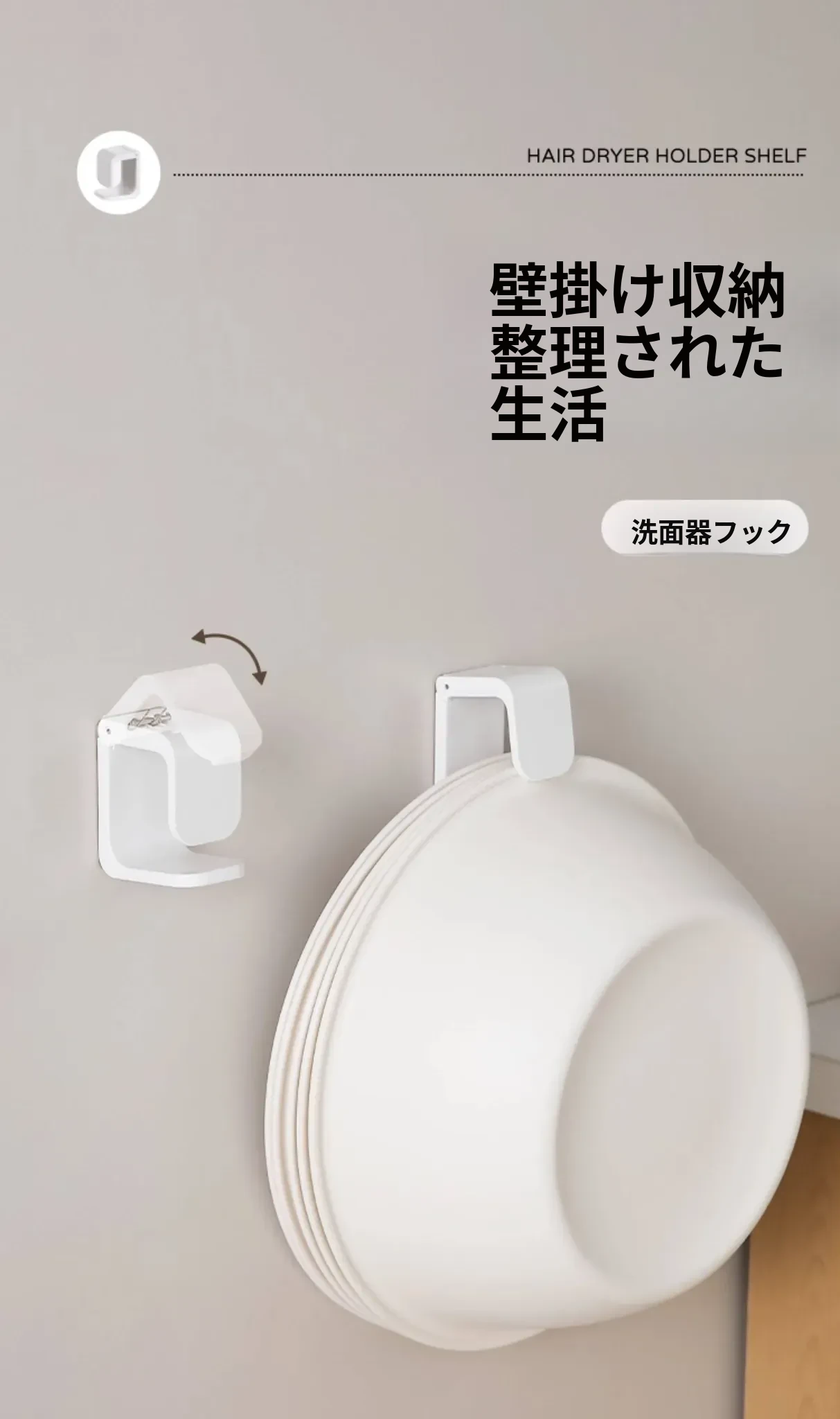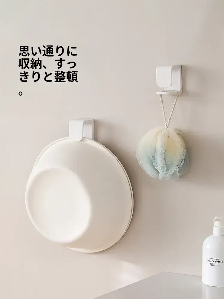 FaSoLa洗面台フック - 壁掛け式で穴を開けずに取り付け可能!調整可能なデザインで、バスルームやトイレをすっきり整理。洗面盆やバスタブの収納に最適な便利アイテム!