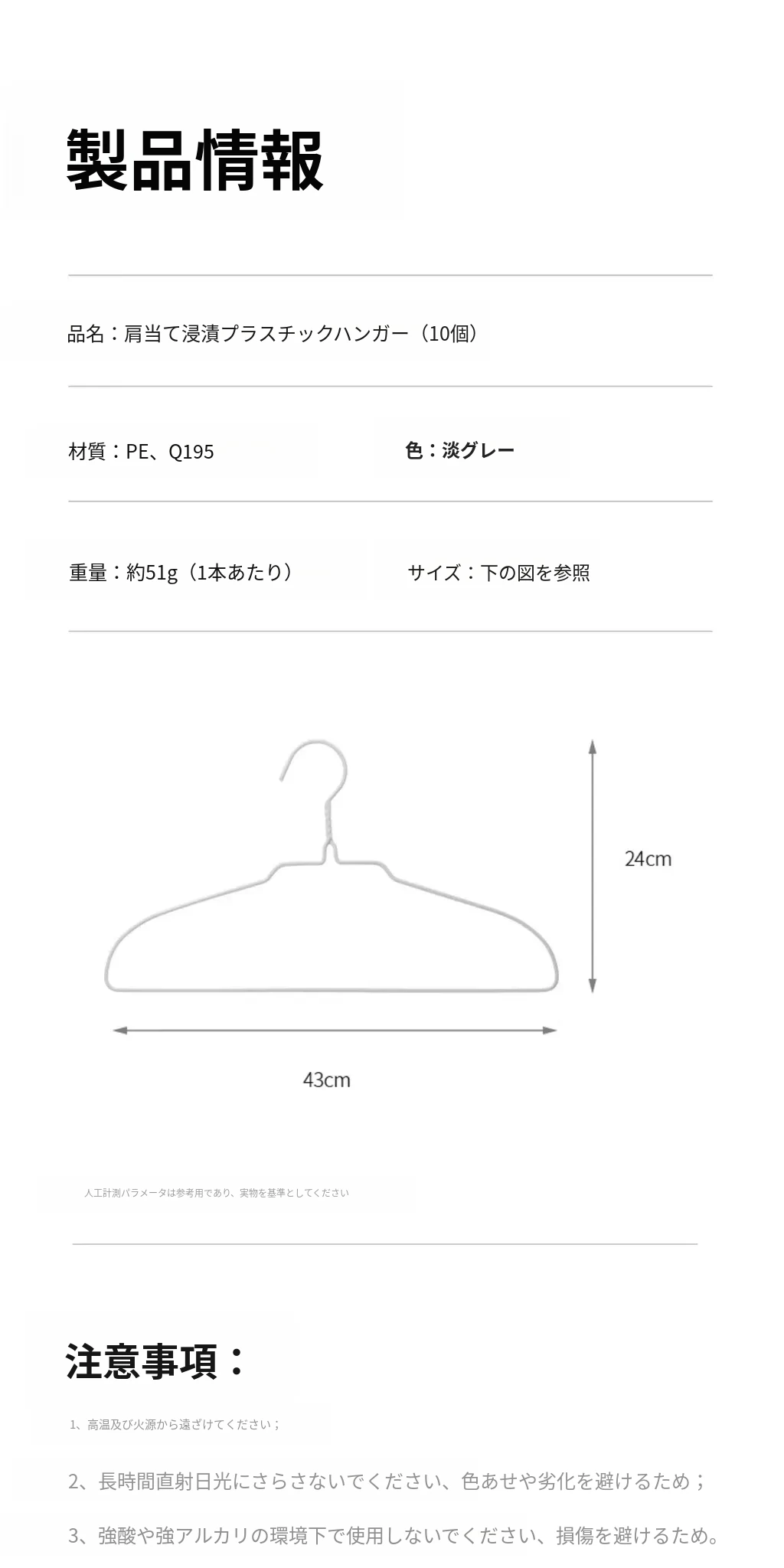 肩パッド付きプラスチックハンガー
