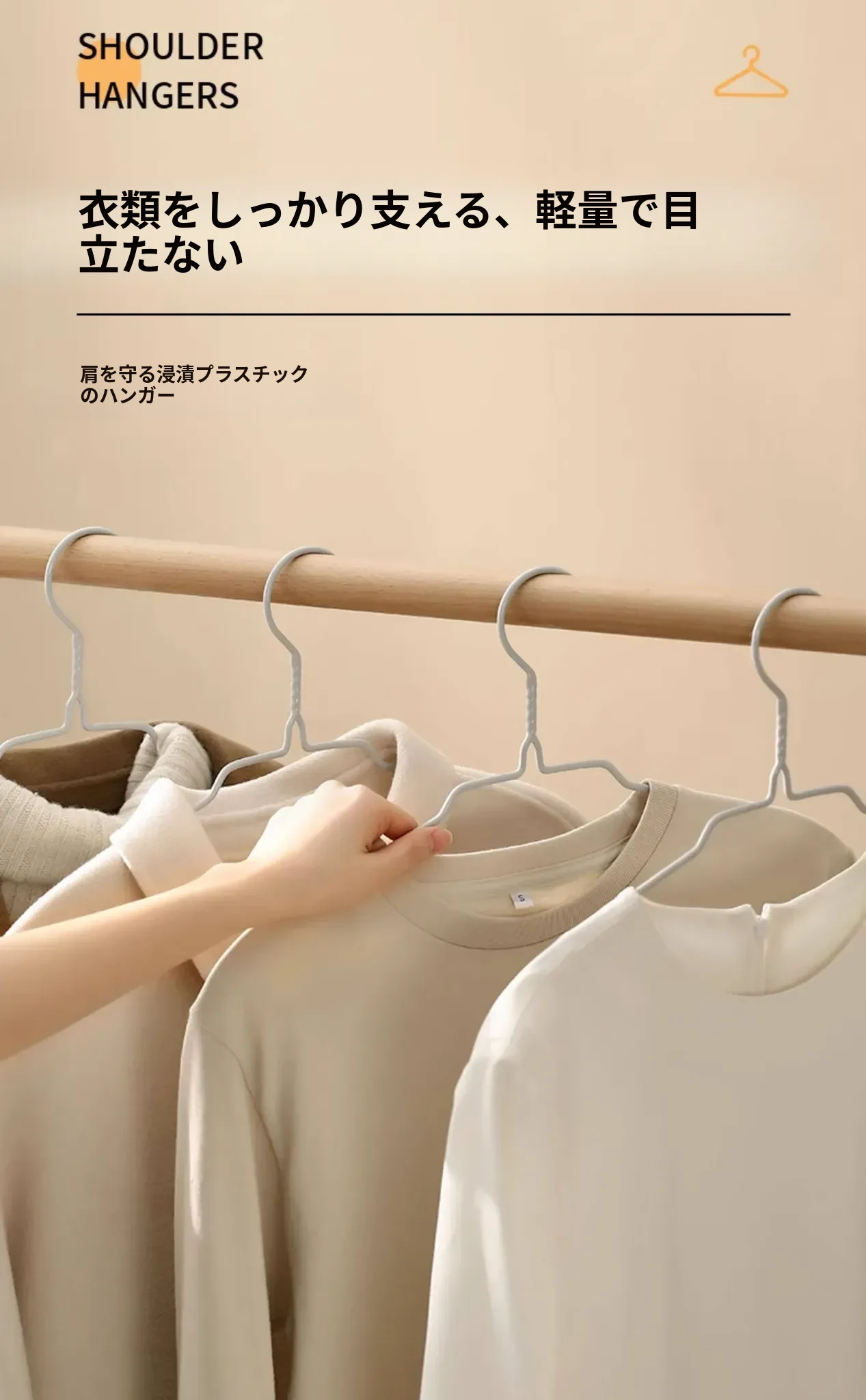 FaSoLa浸塑ハンガー - 家庭用防肩角衣類ハンガー、滑り止め・無痕・変形しない、衣類をしっかり支える!快適な収納で、衣服を美しく保つ!