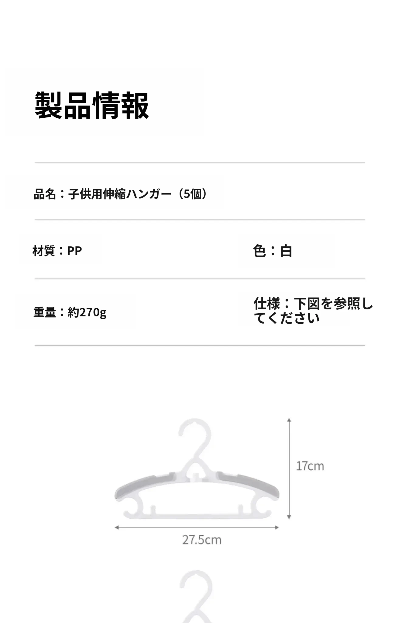 子供用伸縮ハンガー(5個)