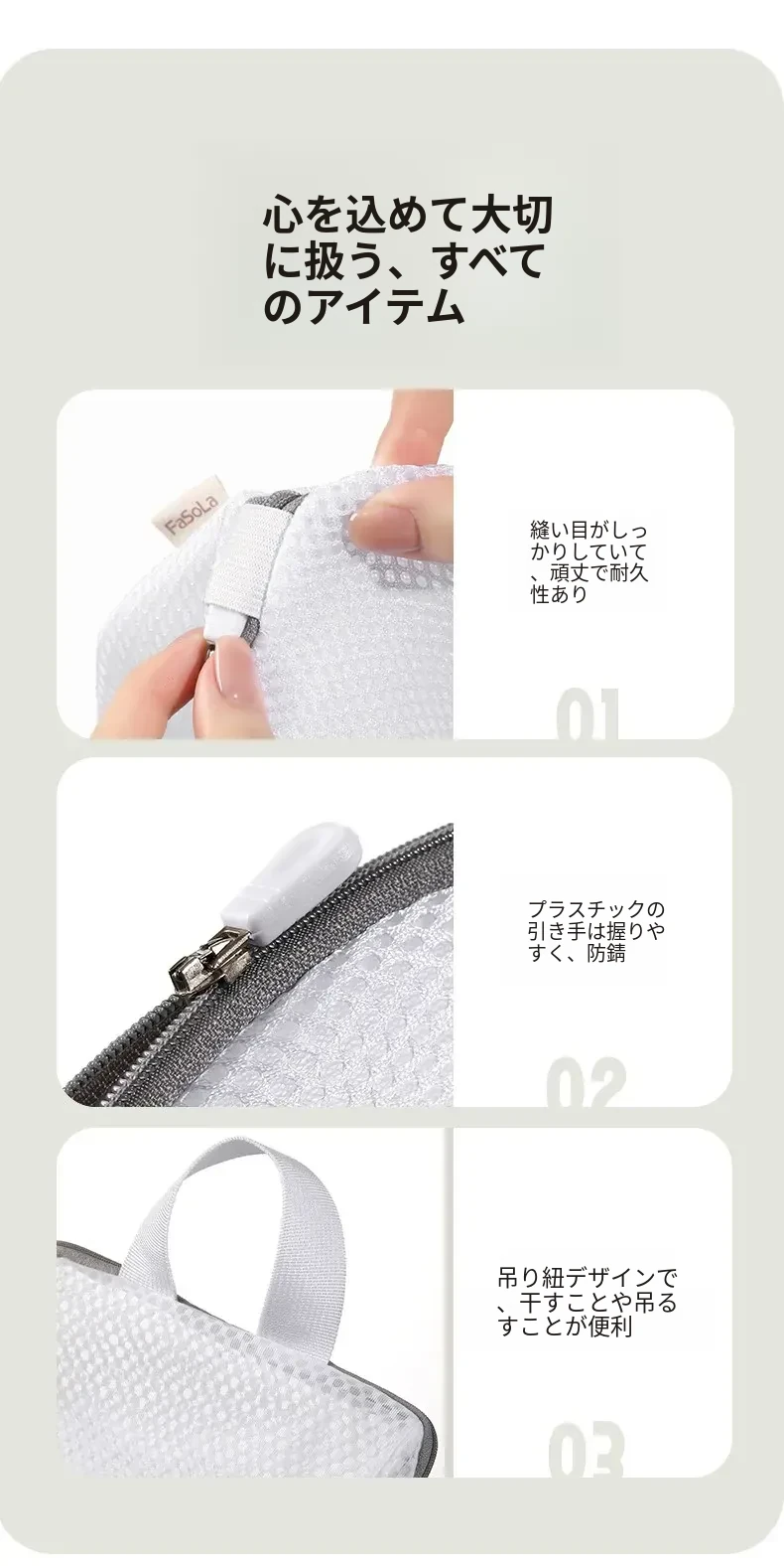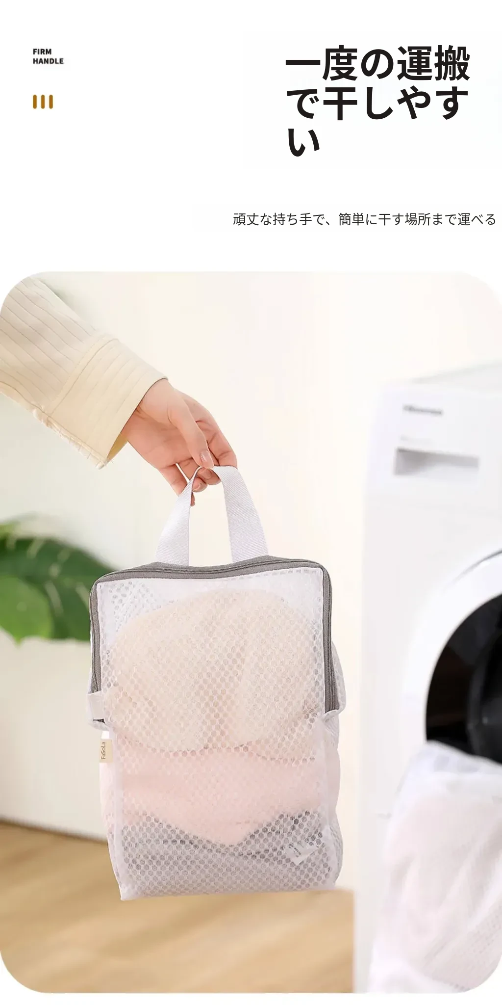 FaSoLa洗濯ネット ブラジャー・下着専用 洗濯機対応 持ち手付き 変形防止 厚手メッシュバッグ しっかり洗えて安心!大切な下着を守る洗濯アイテム!