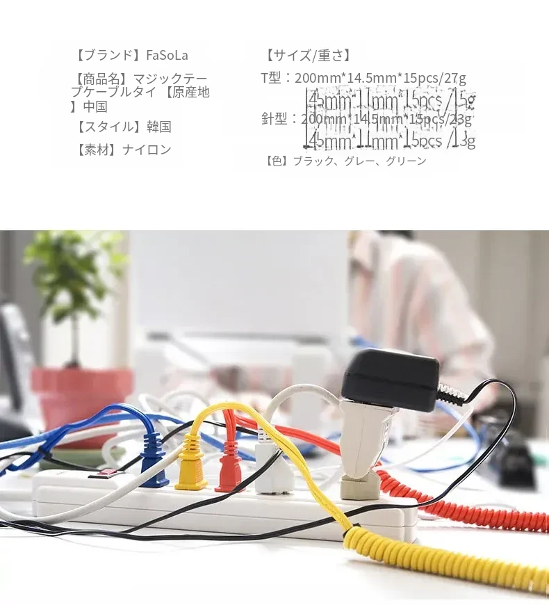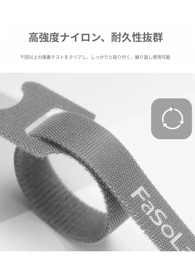 FaSoLa 電線収納・充電ケーブル整理用マジックテープバンド - データケーブル整理の必需品!スッキリとした配線で、生活をもっと便利に!