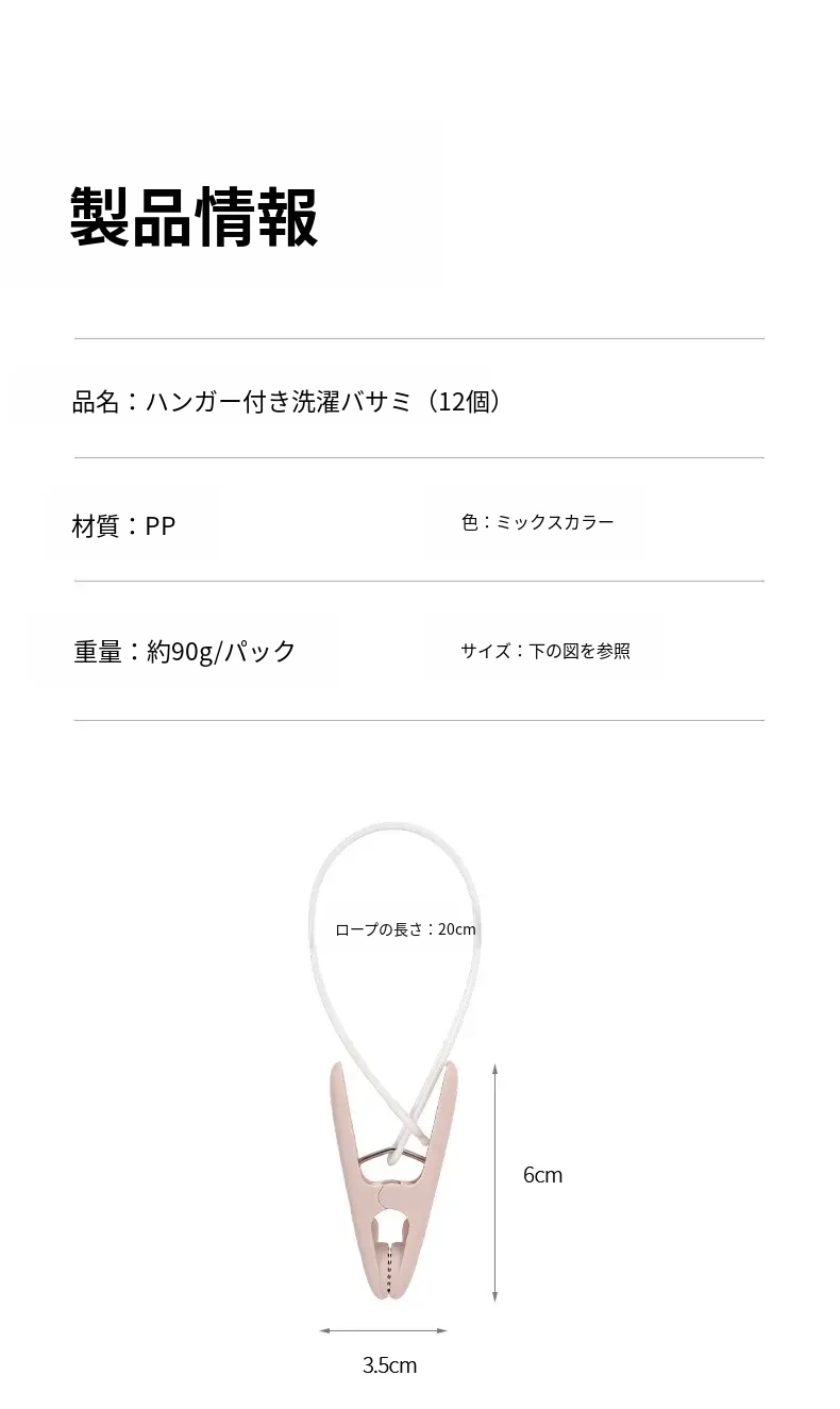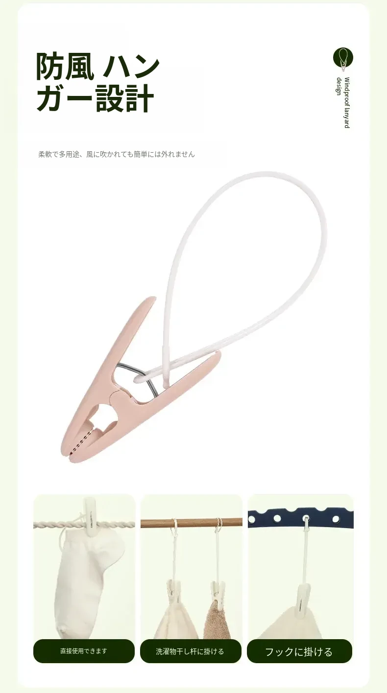 FaSoLa衣類・靴下用クリップ 防風設計で安心!旅行にも便利なプラスチックハンガー付き!簡単に衣類を干せて、毎日の洗濯がもっと楽しくなる!