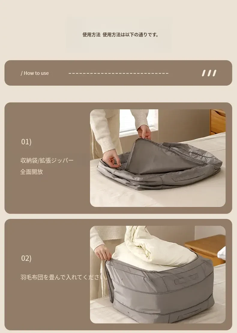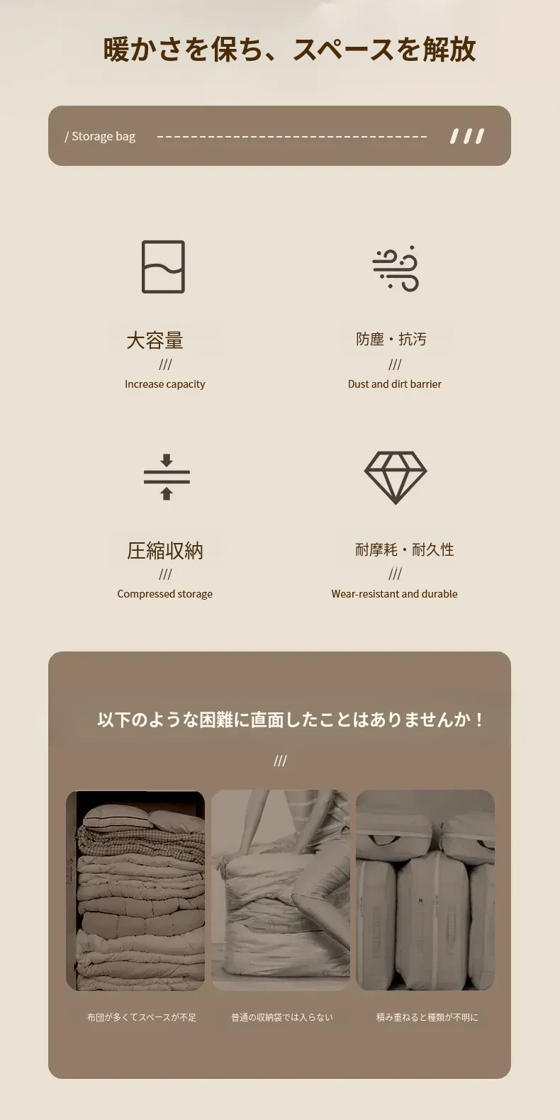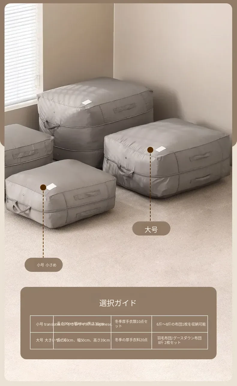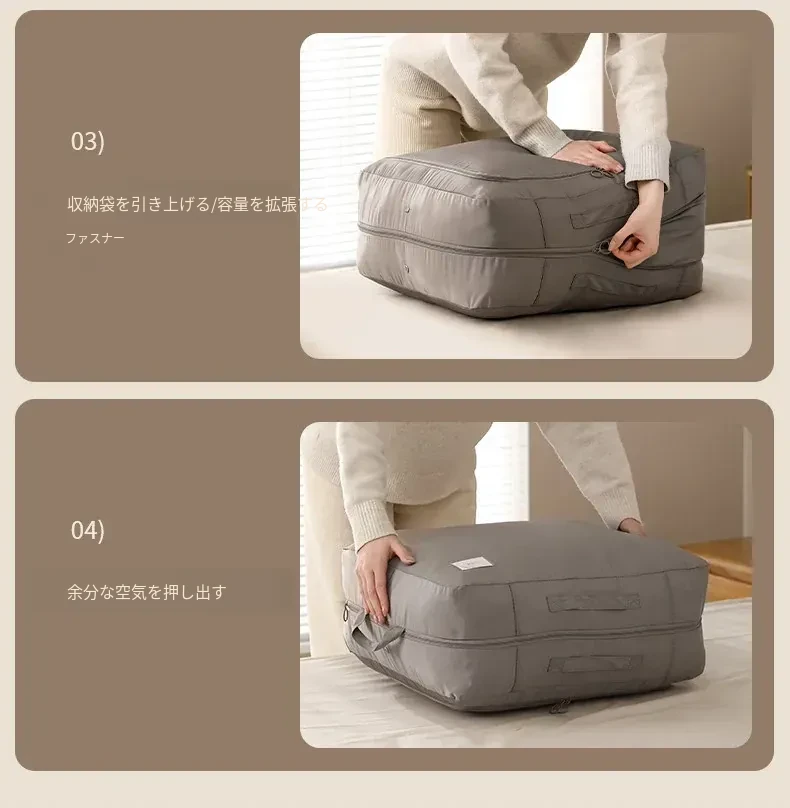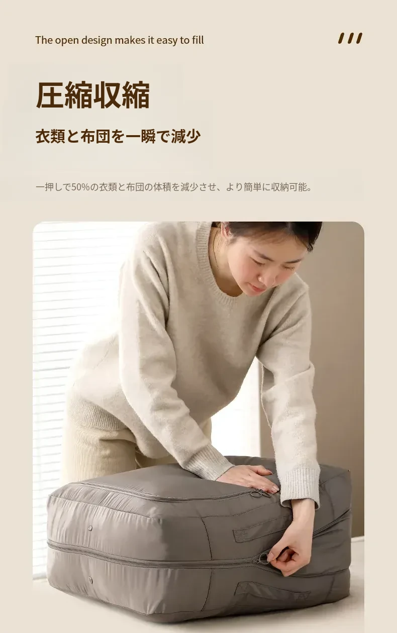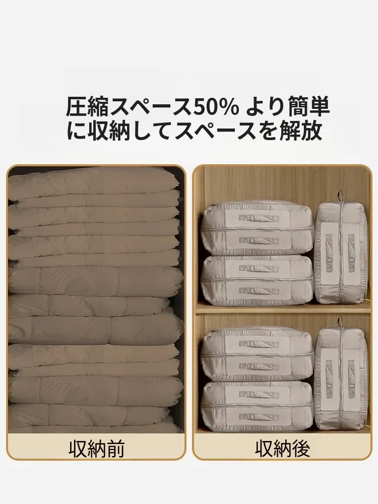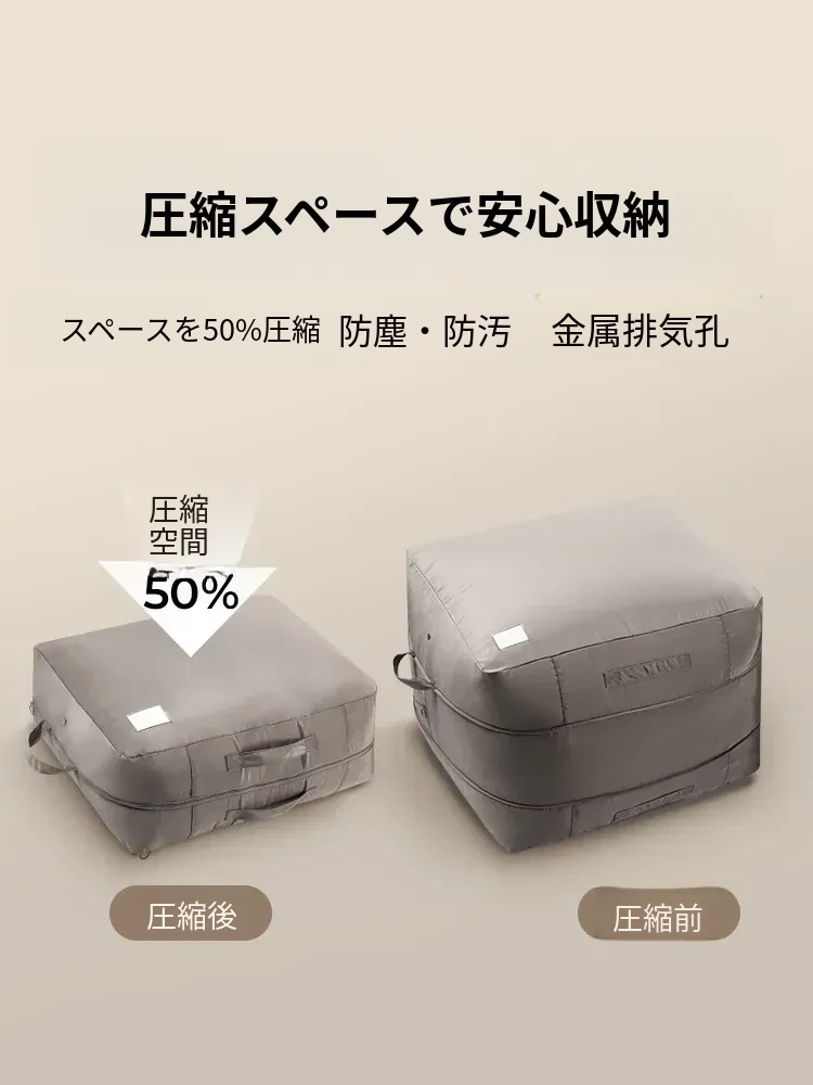 FaSoLa収納袋 - ふわふわの羽毛布団やシルク布団もすっきり整理!圧縮機能付きでスペースを節約、衣類や布団の収納が簡単に。おしゃれなデザインで部屋もスッキリ!