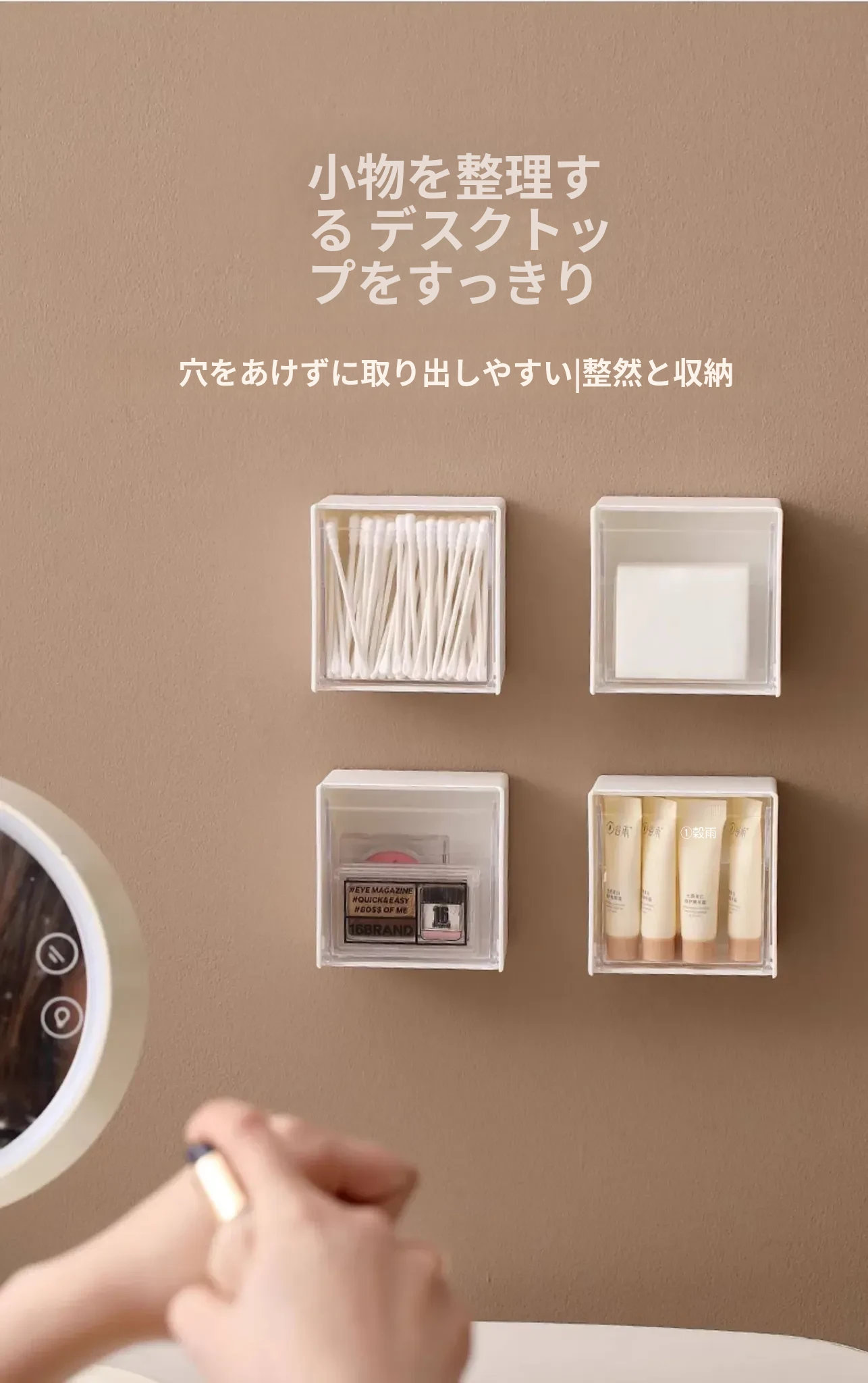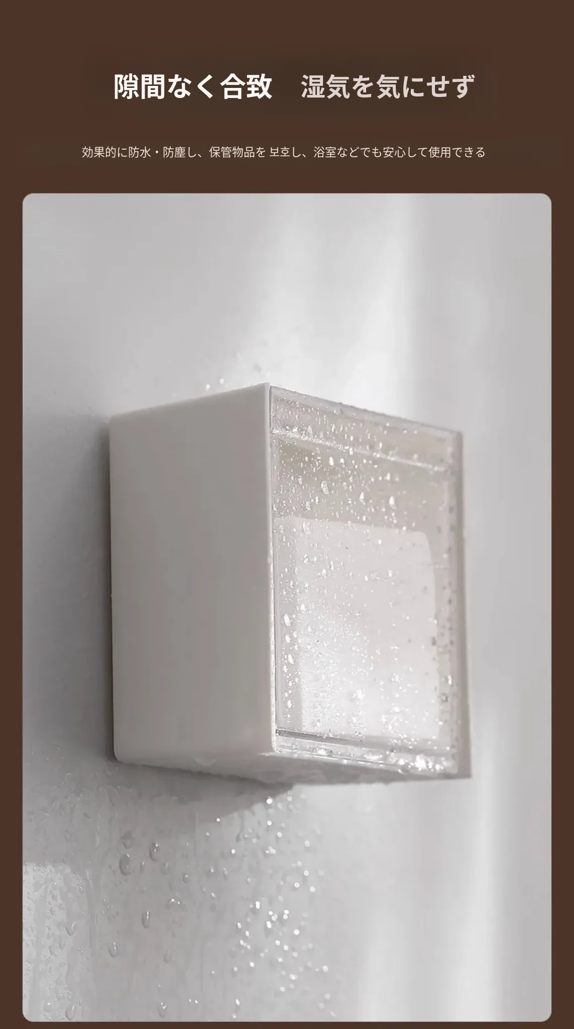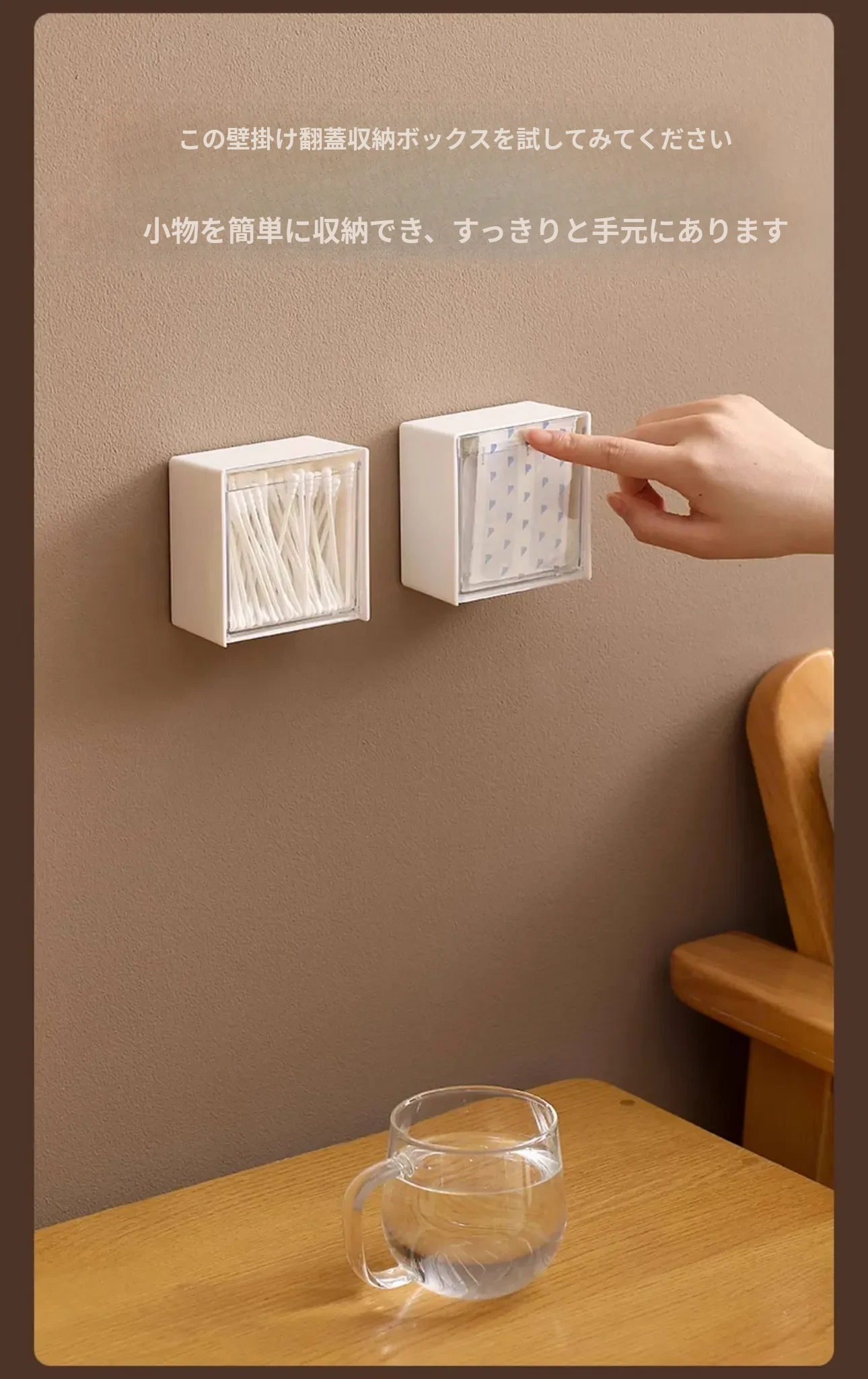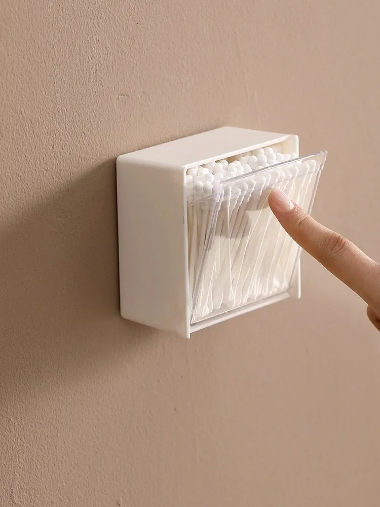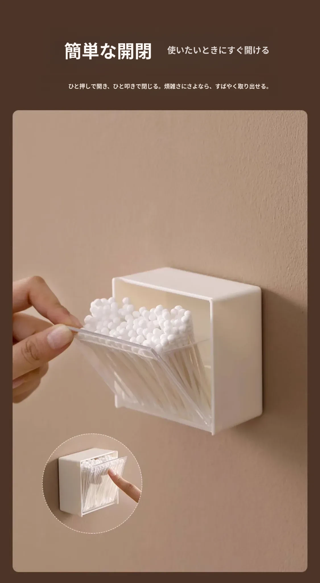 FaSoLaコットンパフ収納ボックス 壁掛け式フタ付き おしゃれなバスルーム用 便利な歯間ブラシ収納も可能!クリーンでスタイリッシュな生活空間を実現するアイデア収納ボックス!