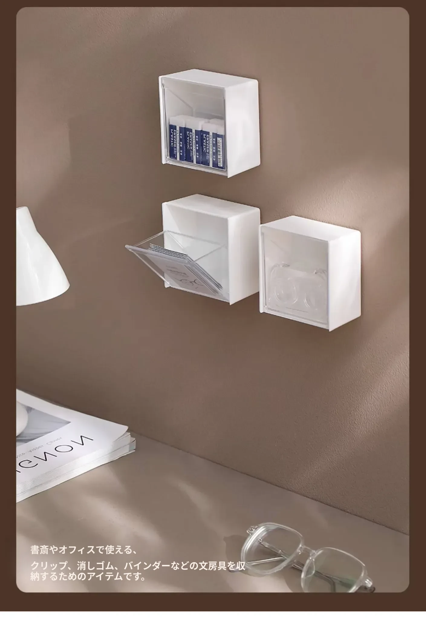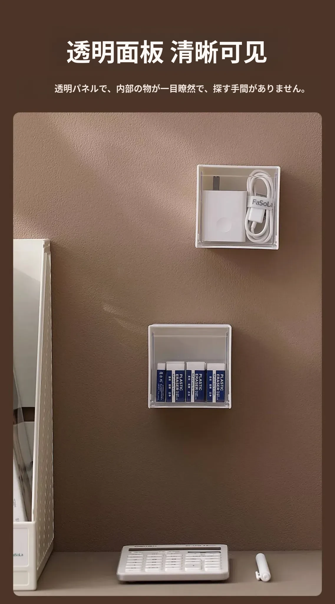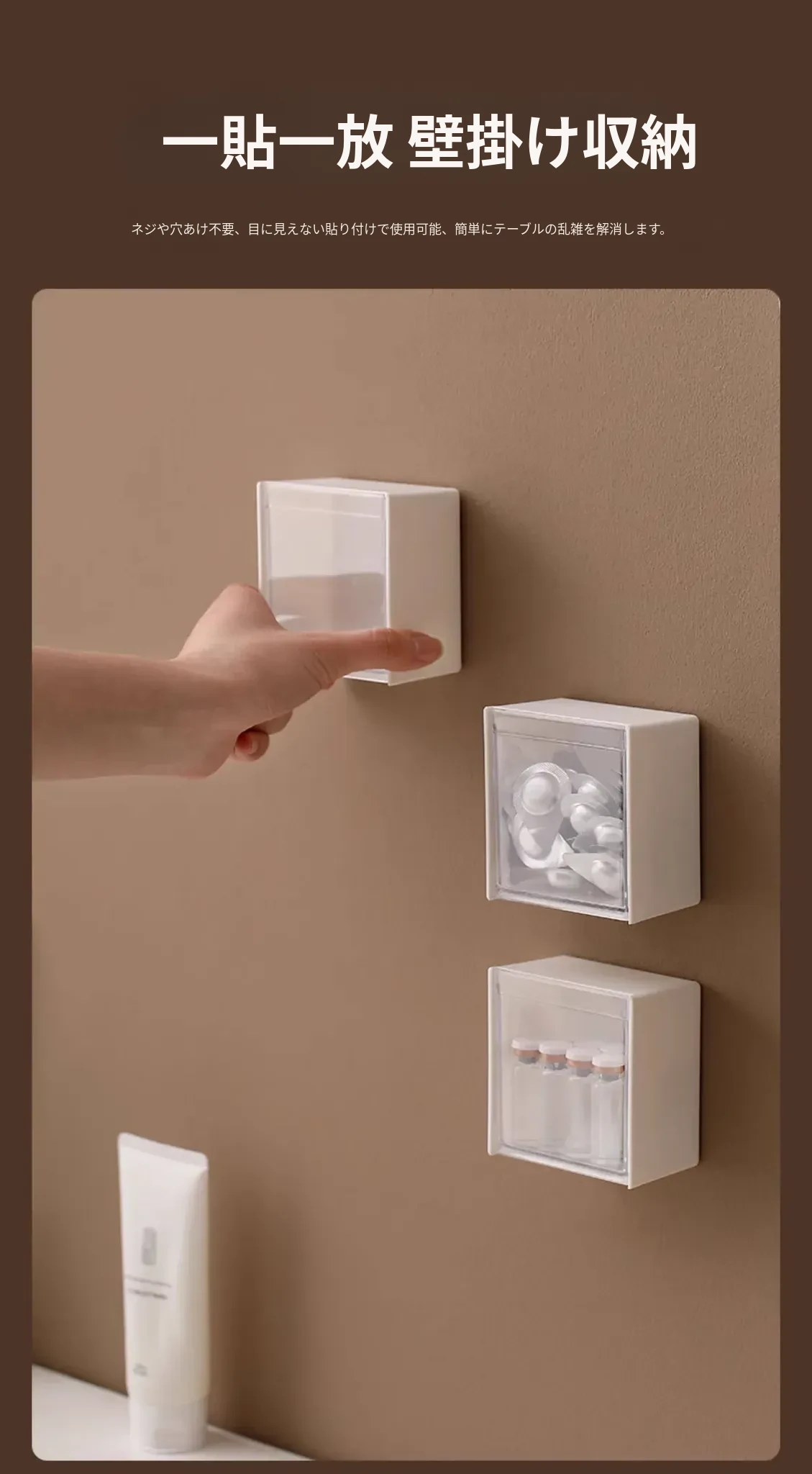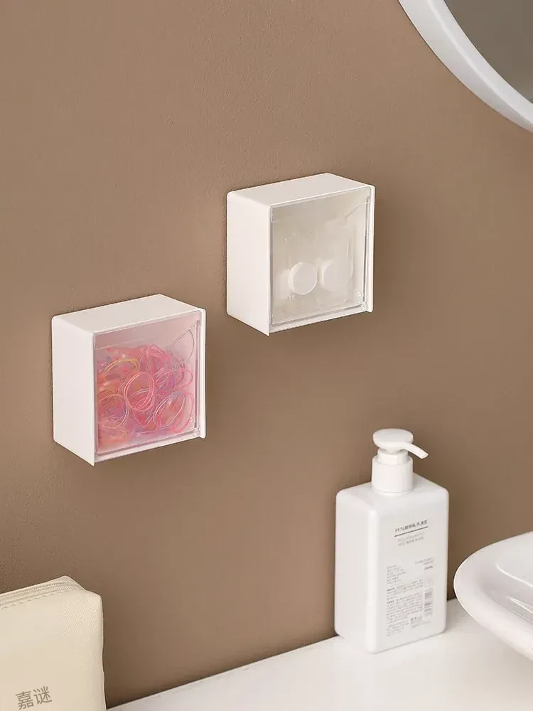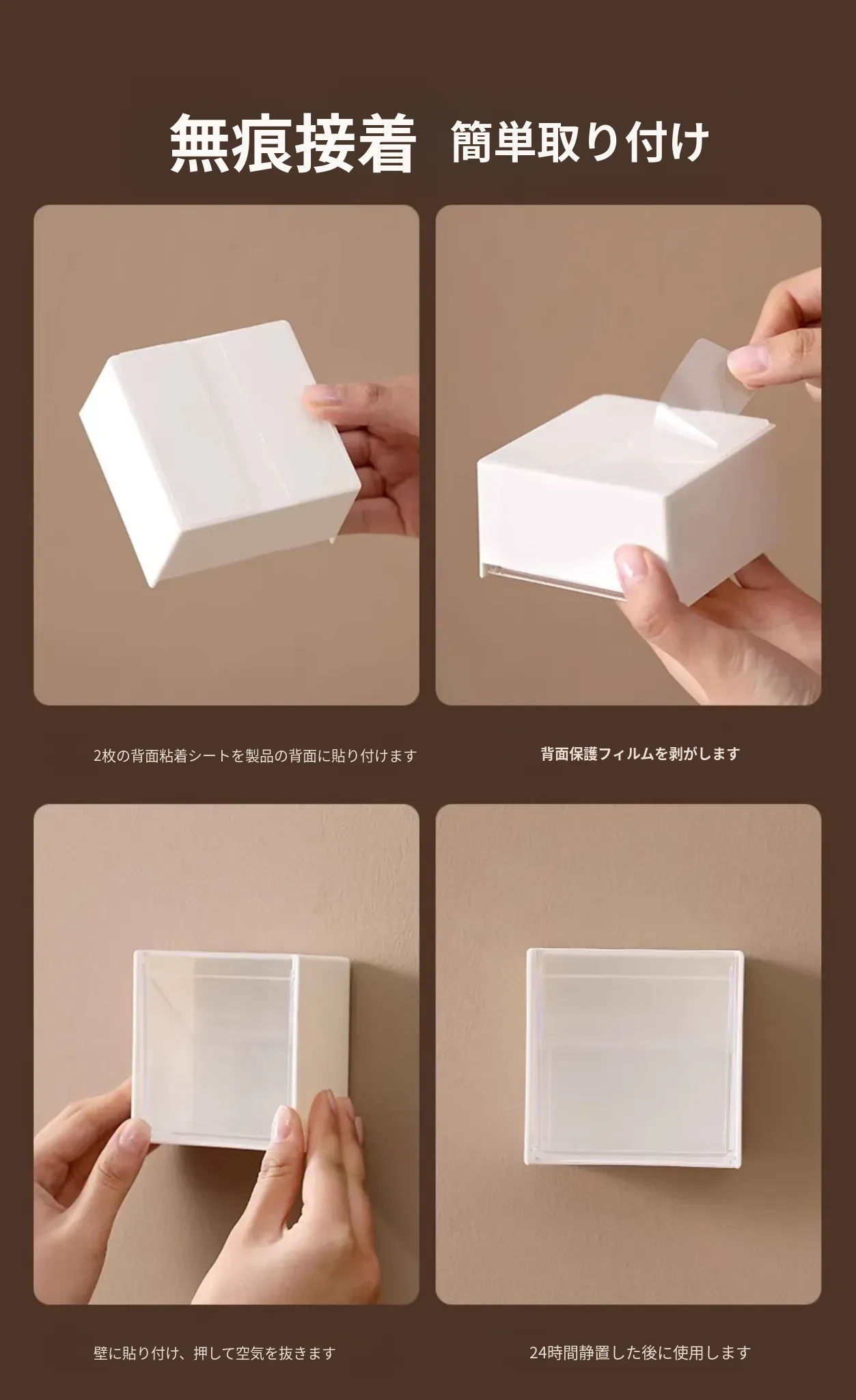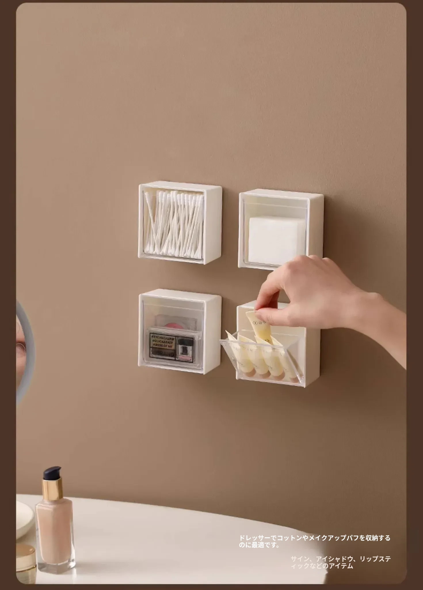 FaSoLaコットンパフ収納ボックス 壁掛け式フタ付き おしゃれなバスルーム用 便利な歯間ブラシ収納も可能!クリーンでスタイリッシュな生活空間を実現するアイデア収納ボックス!