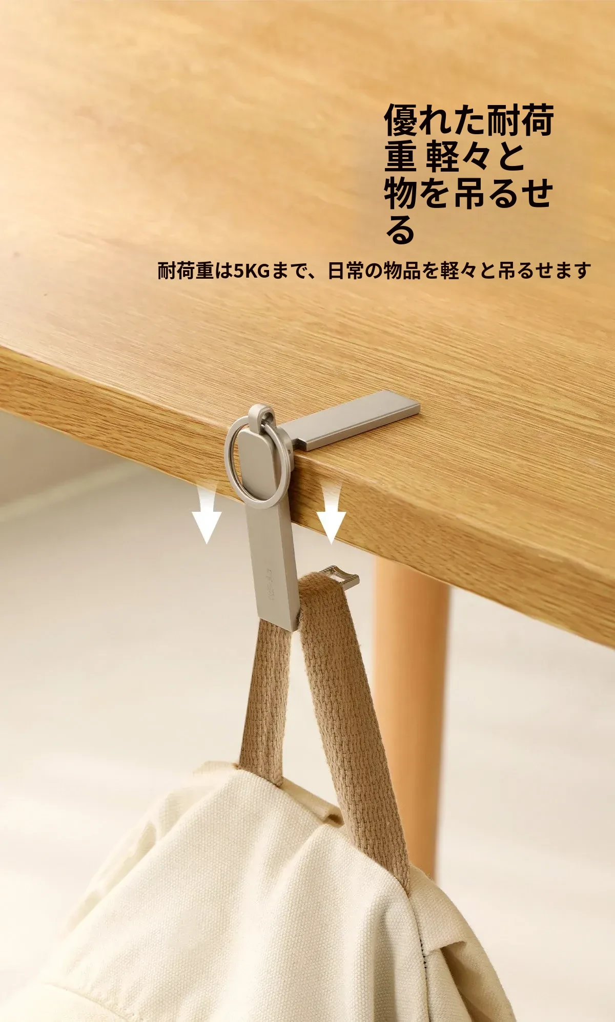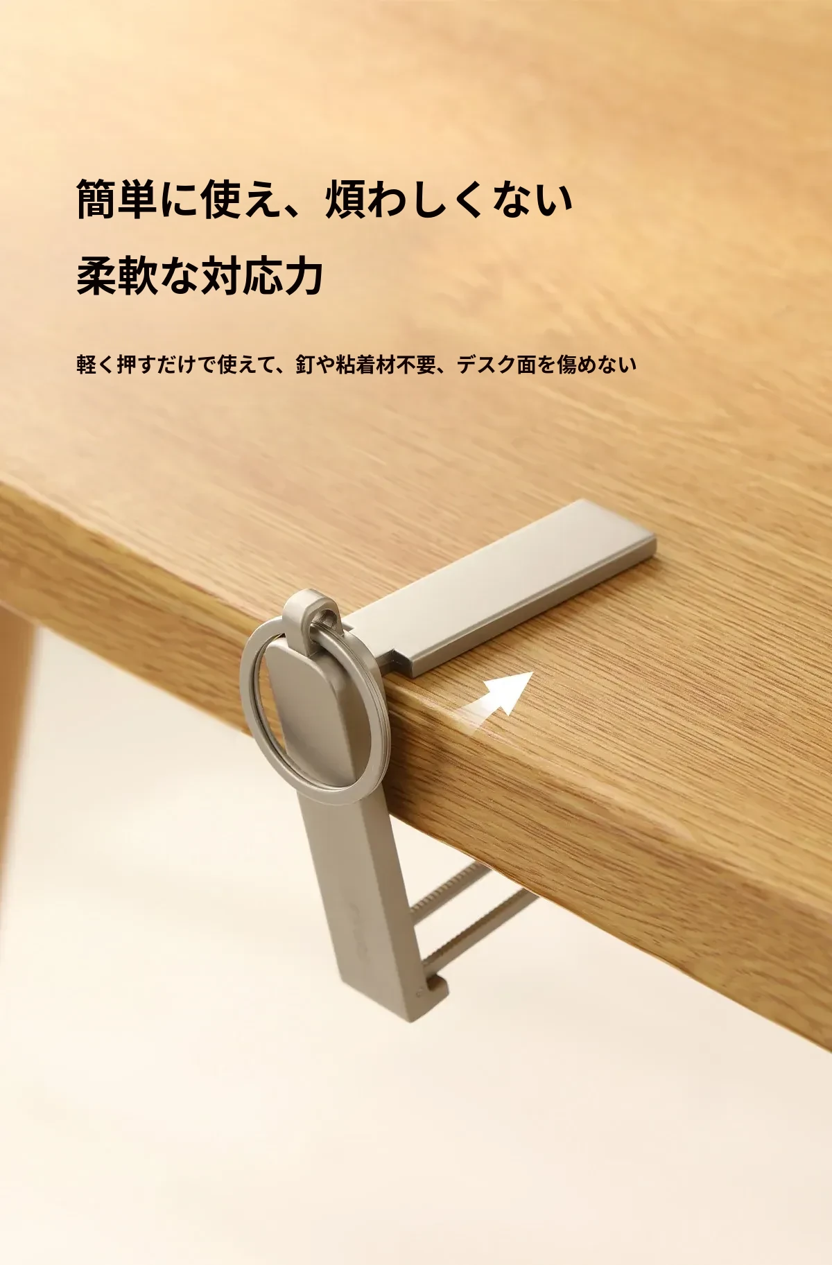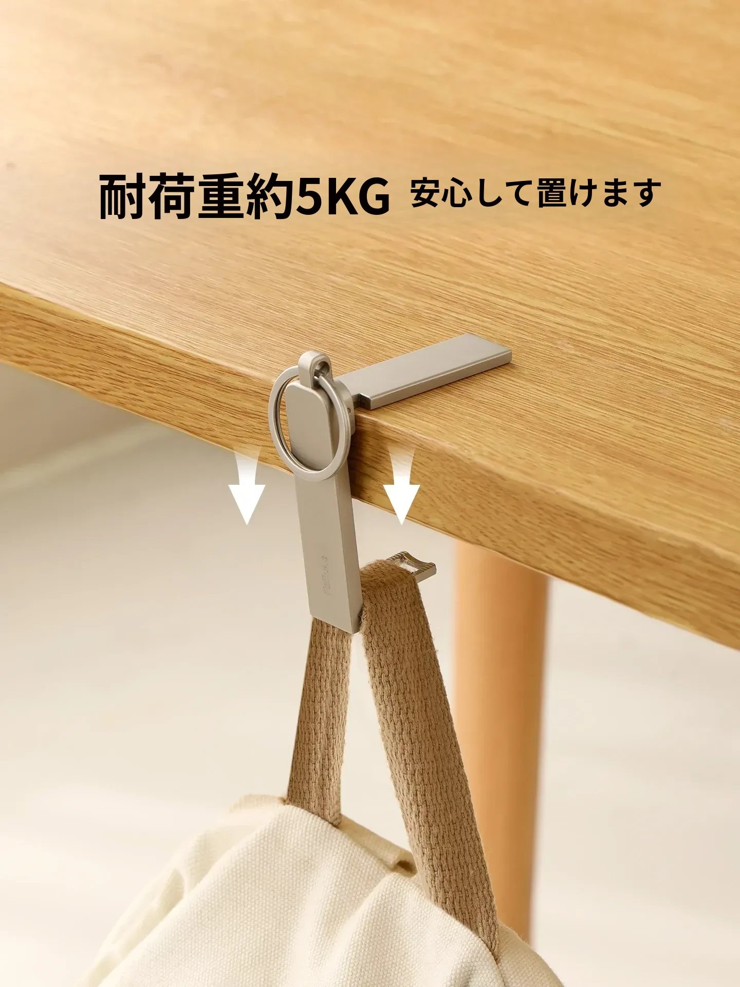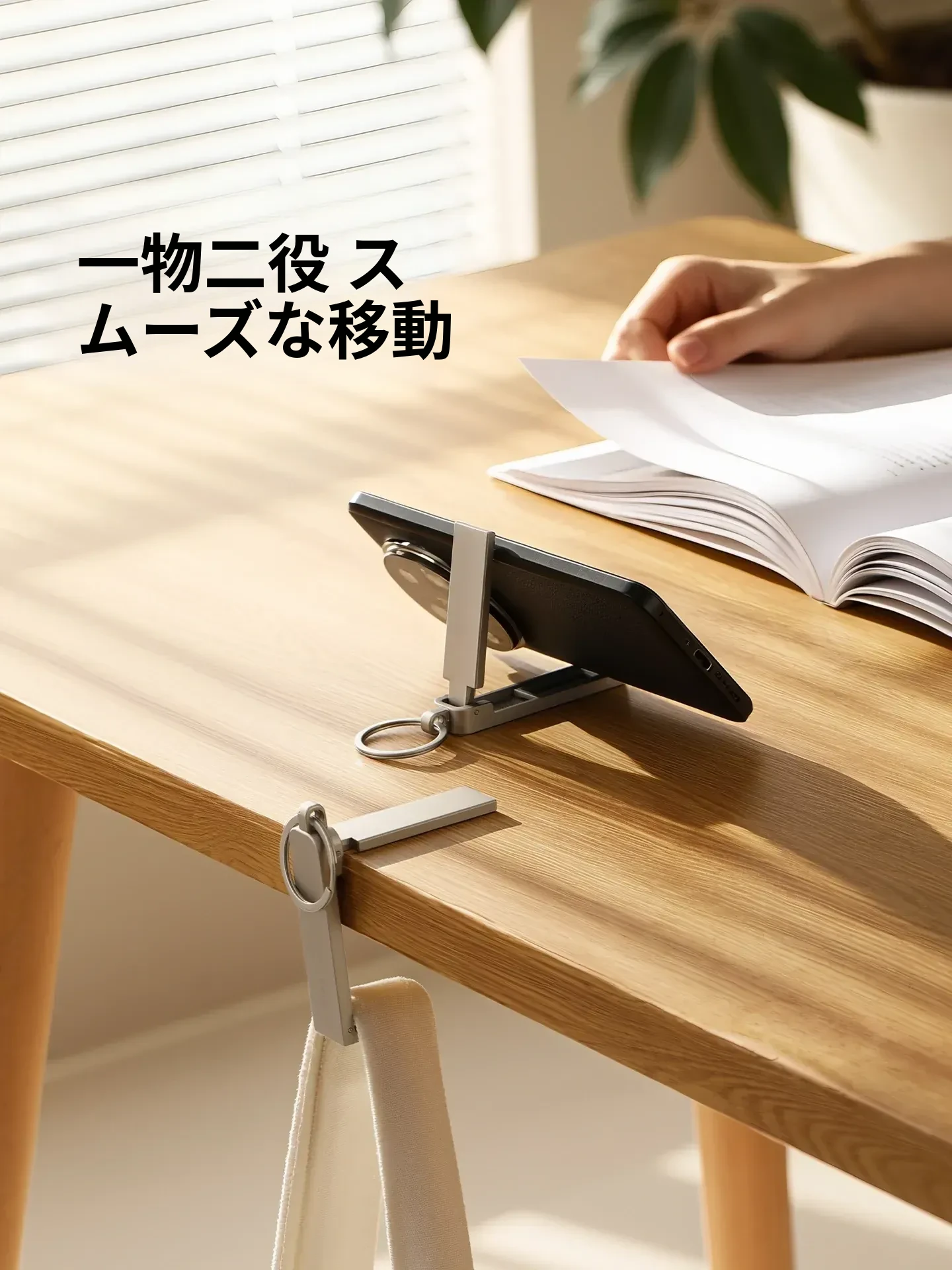 FaSoLa デスクサイドフック 〜 簡単取り付け、オフィスや自宅でのバッグ掛けに最適!多機能スマホスタンド付き、コンパクトで持ち運び便利なアイテムです。