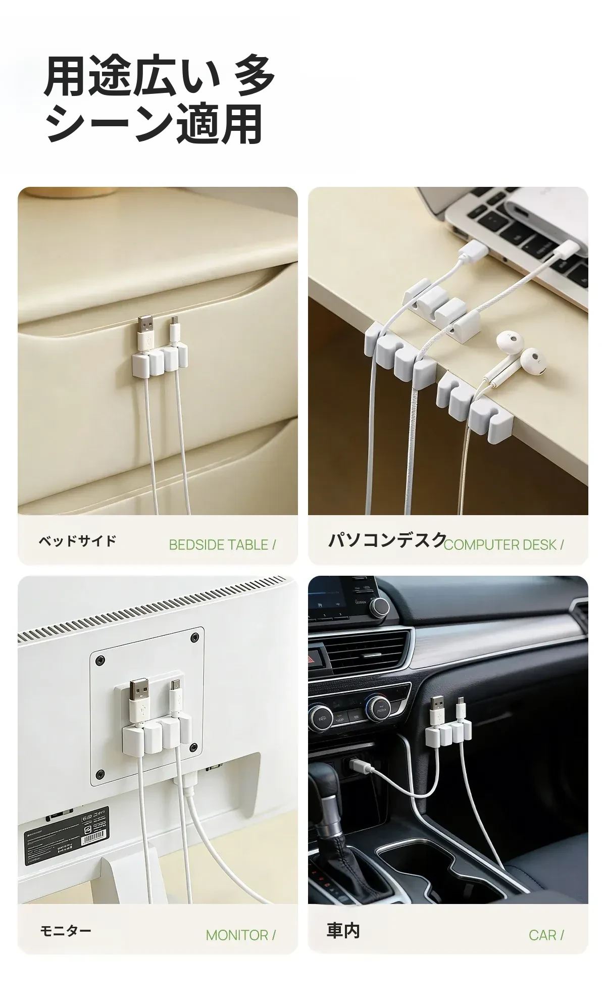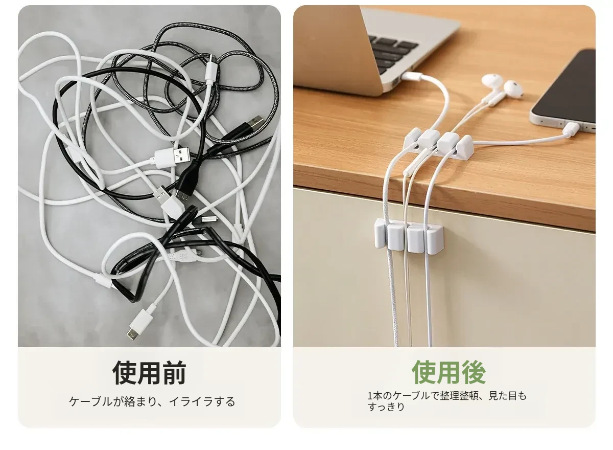 FaSoLaデスクトップケーブルオーガナイザー 簡単取り付けのスマホ充電ケーブル整理グッズ!データケーブルやアクセサリーをすっきり収納できる便利なクリップ!