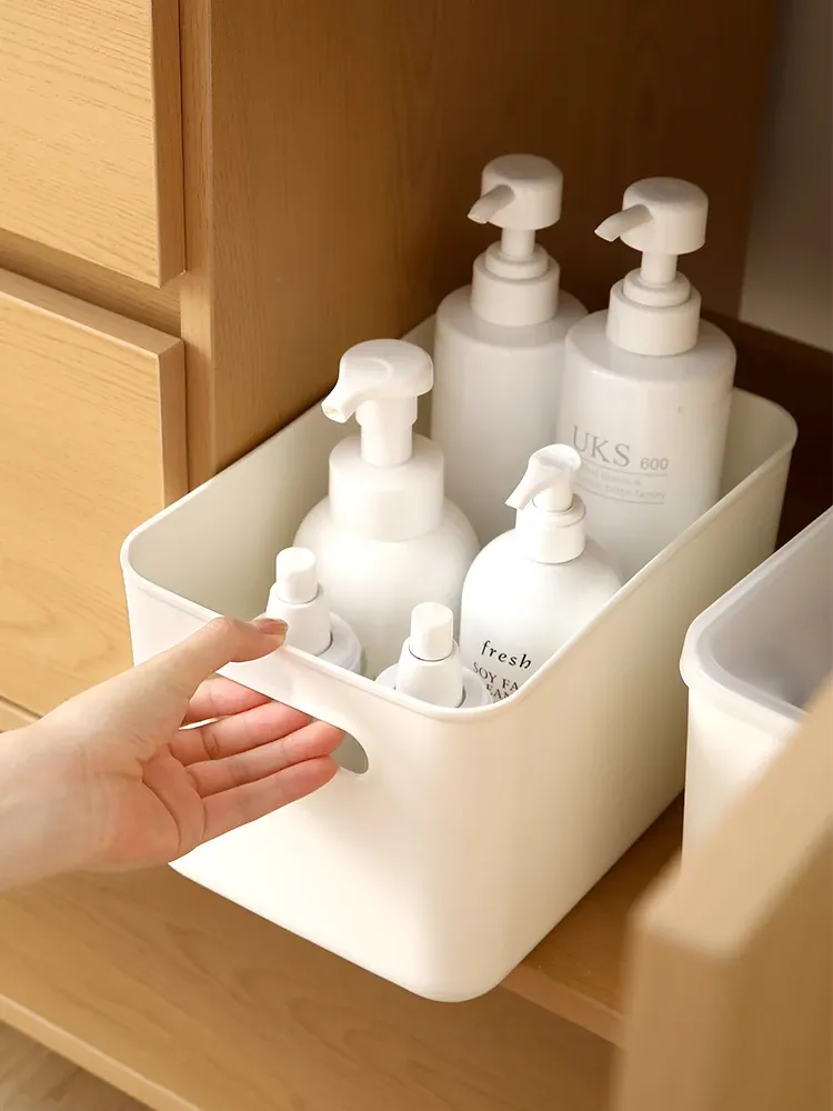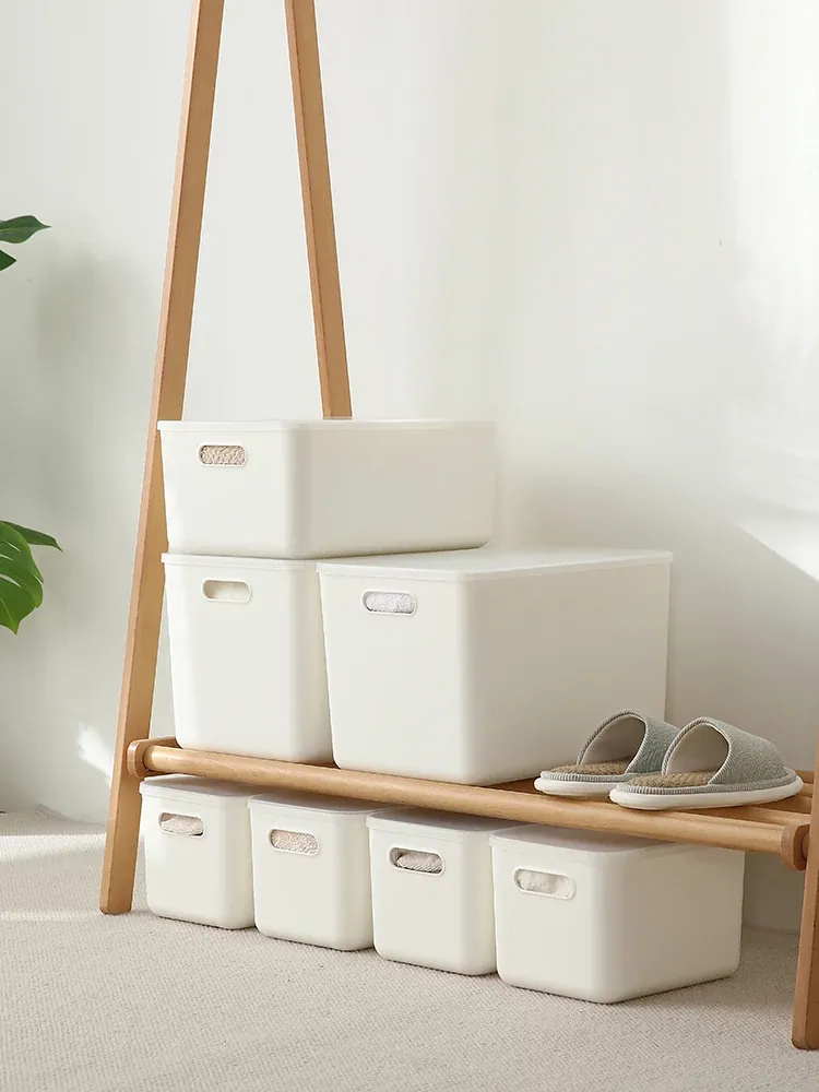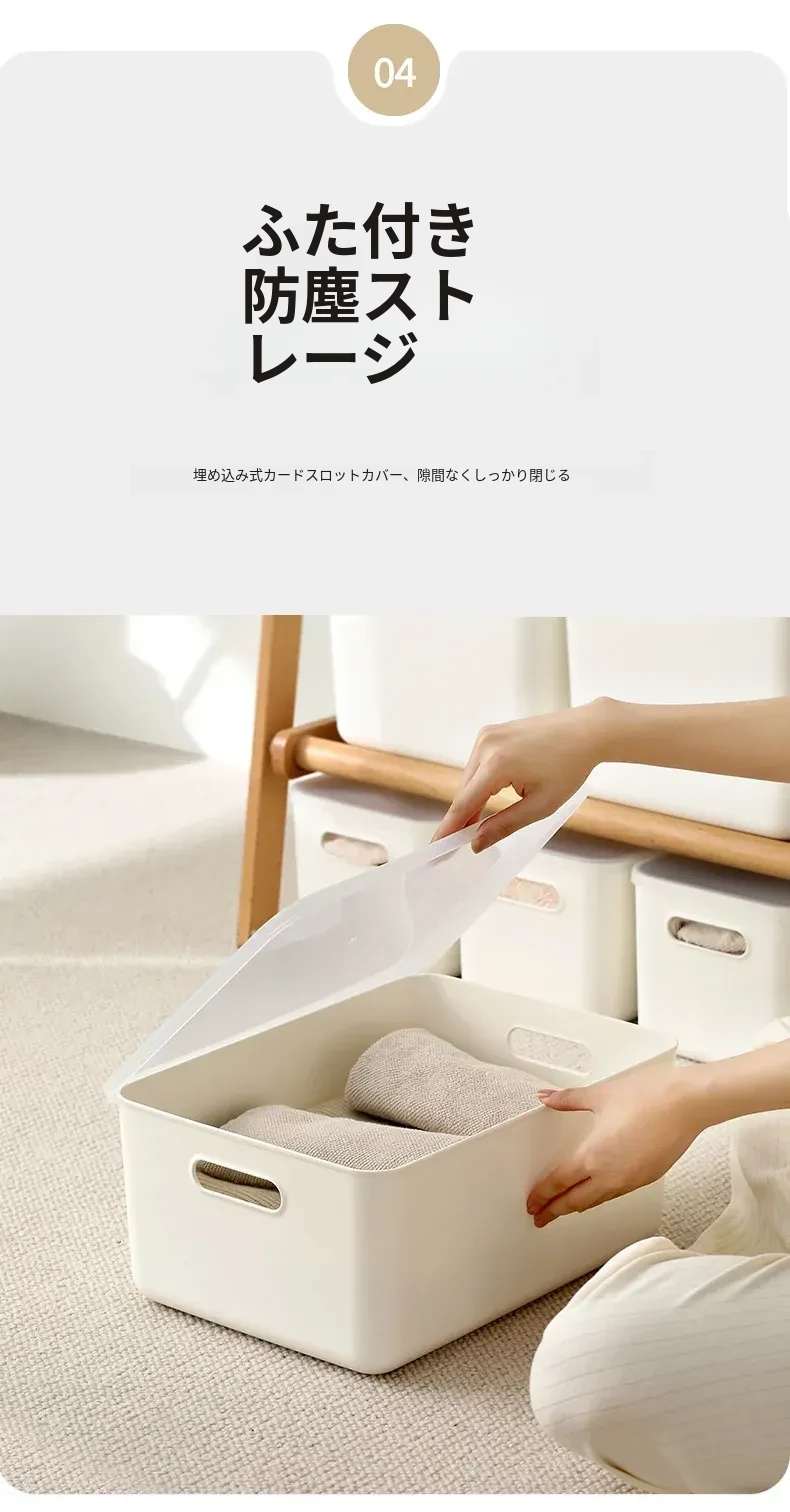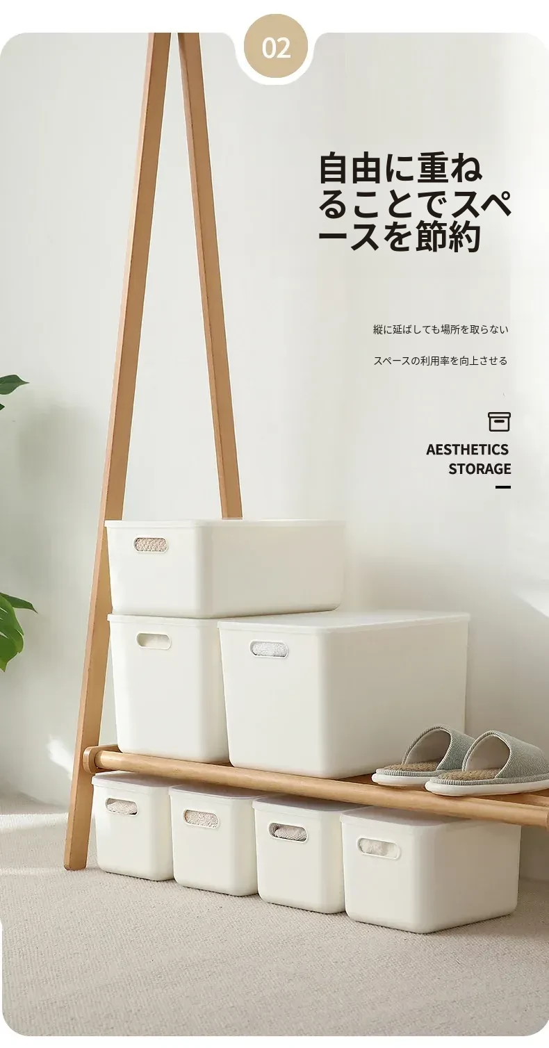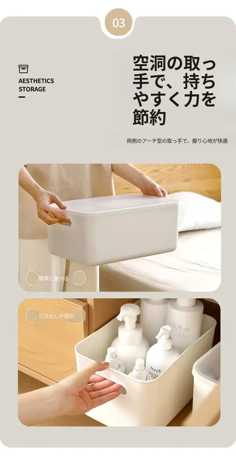 FaSoLaデスクトップ収納ボックス - 蓋付きで便利!化粧品や雑貨をすっきり整理。バスルームやキッチンで大活躍する収納バスケット!おしゃれで実用的な収納ソリューションをお楽しみください。