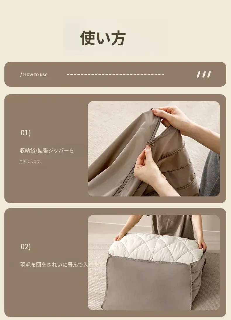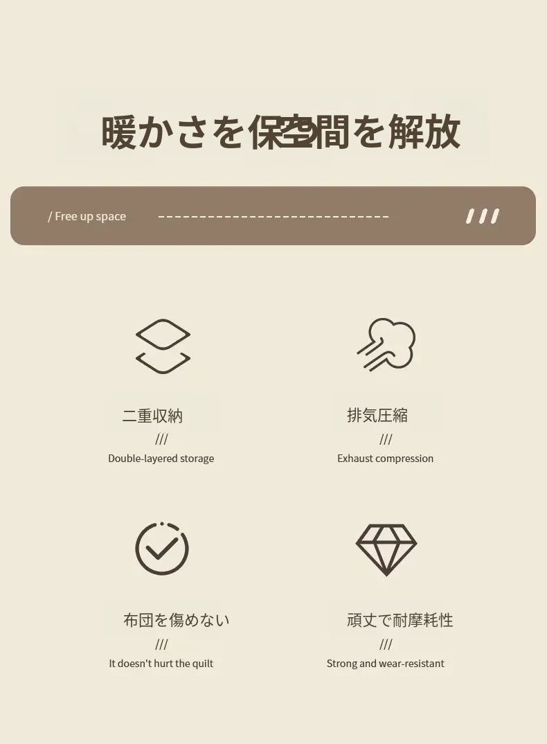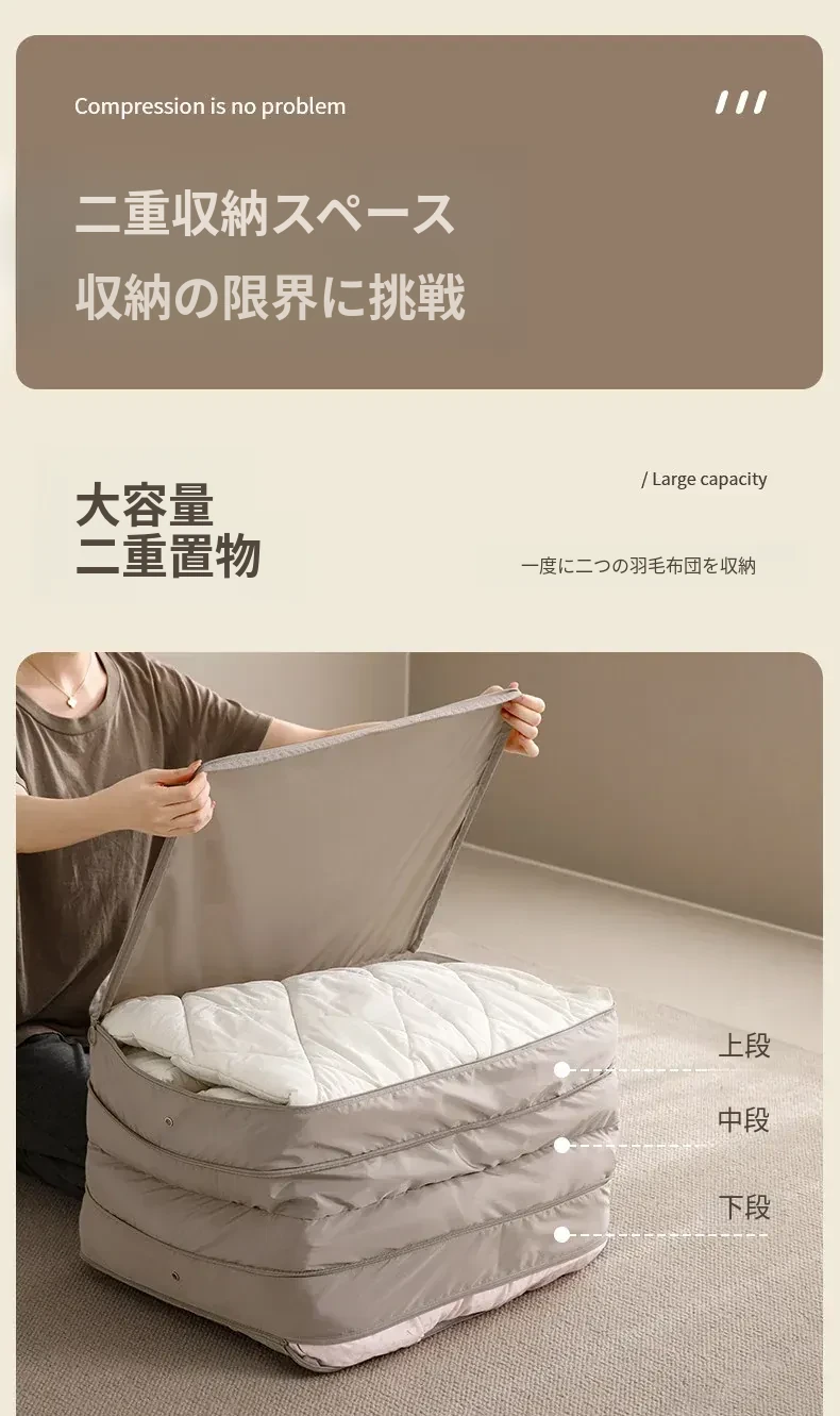 FaSoLaダブルレイヤー収納バッグ|大容量で季節ごとの整理に最適!布団や羽毛布団専用の収納袋で、すっきりとしたお部屋作りをサポートします。