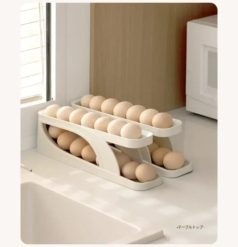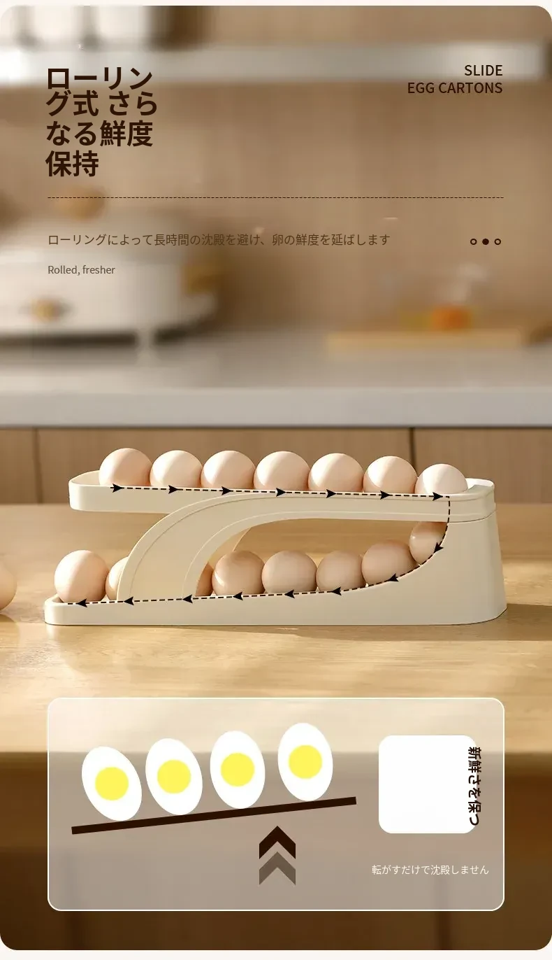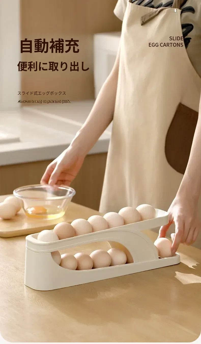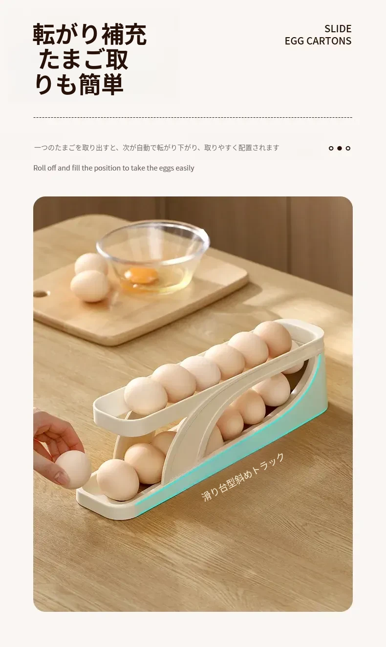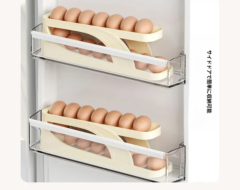 FaSoLaエッグストレージボックス - キッチンや冷蔵庫のサイドドアに最適!食品安全基準を満たした新しいデザインの卵収納ラック。滑り降りるように取り出しやすく、毎日の料理をもっと便利に!