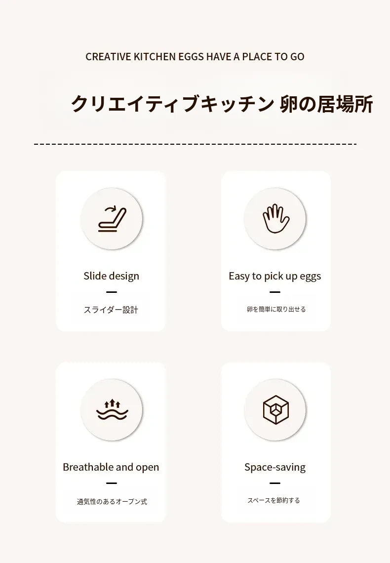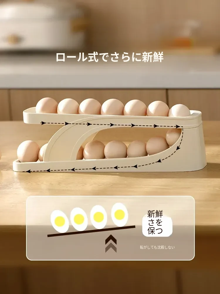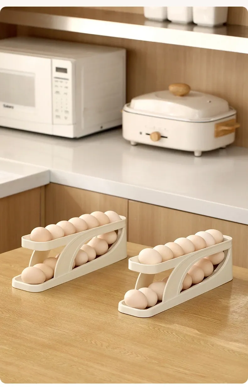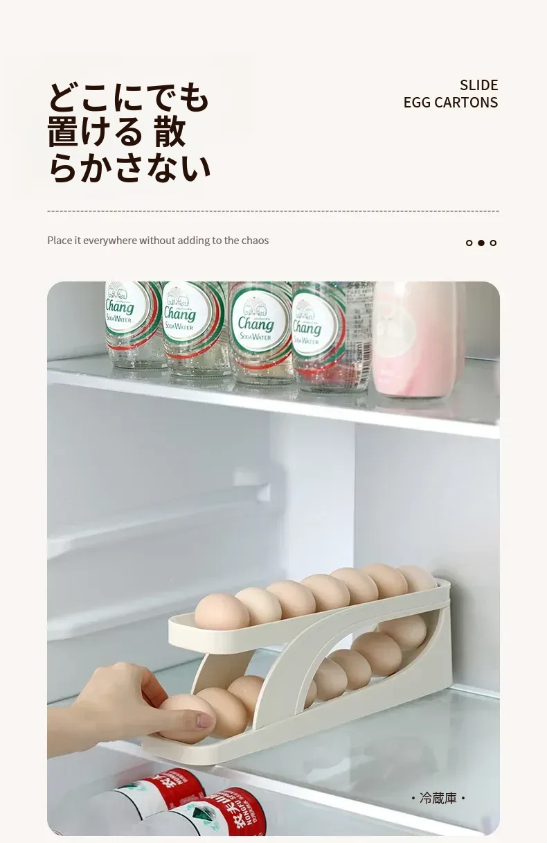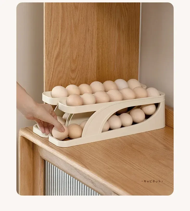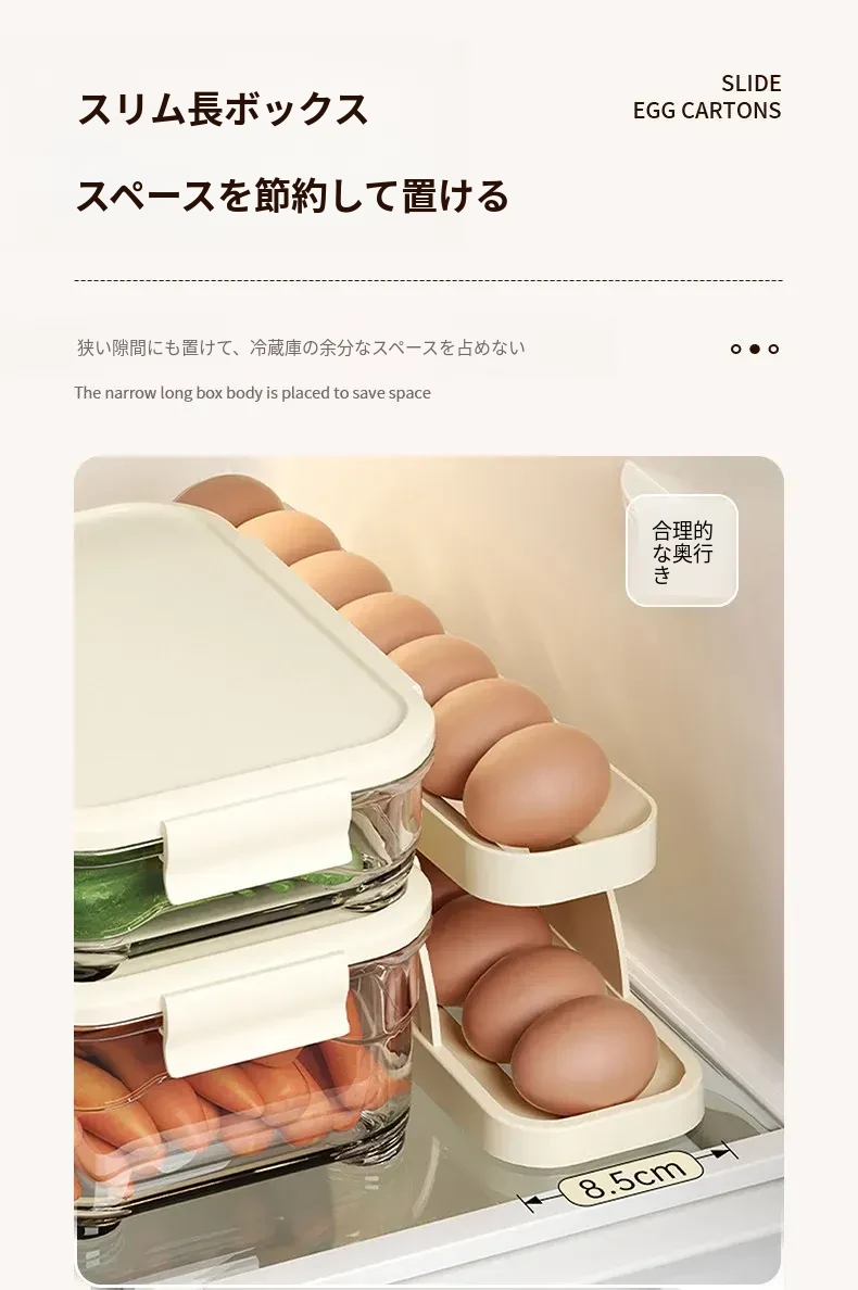 FaSoLaエッグストレージボックス - キッチンや冷蔵庫のサイドドアに最適!食品安全基準を満たした新しいデザインの卵収納ラック。滑り降りるように取り出しやすく、毎日の料理をもっと便利に!