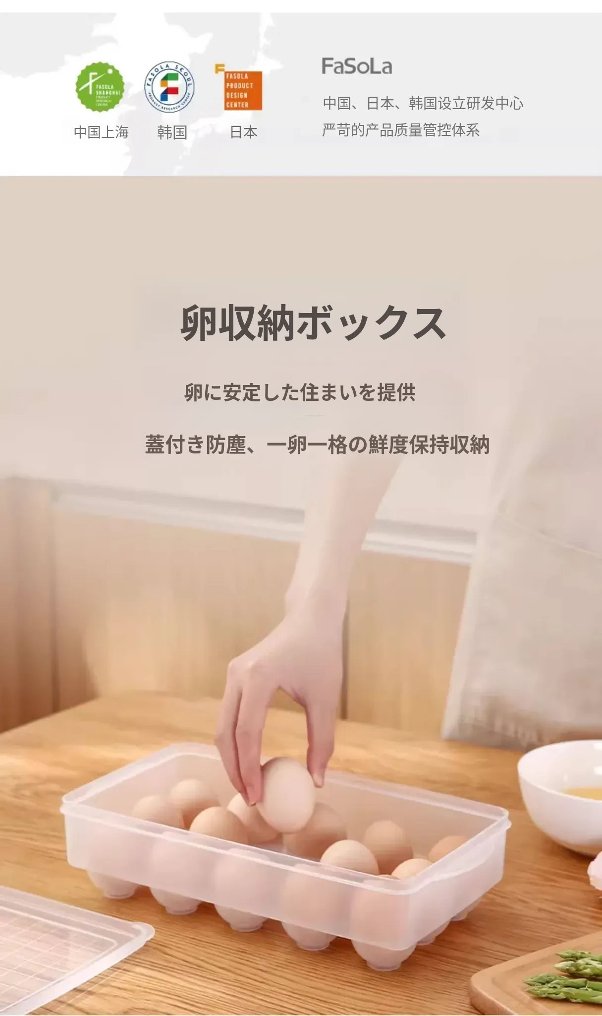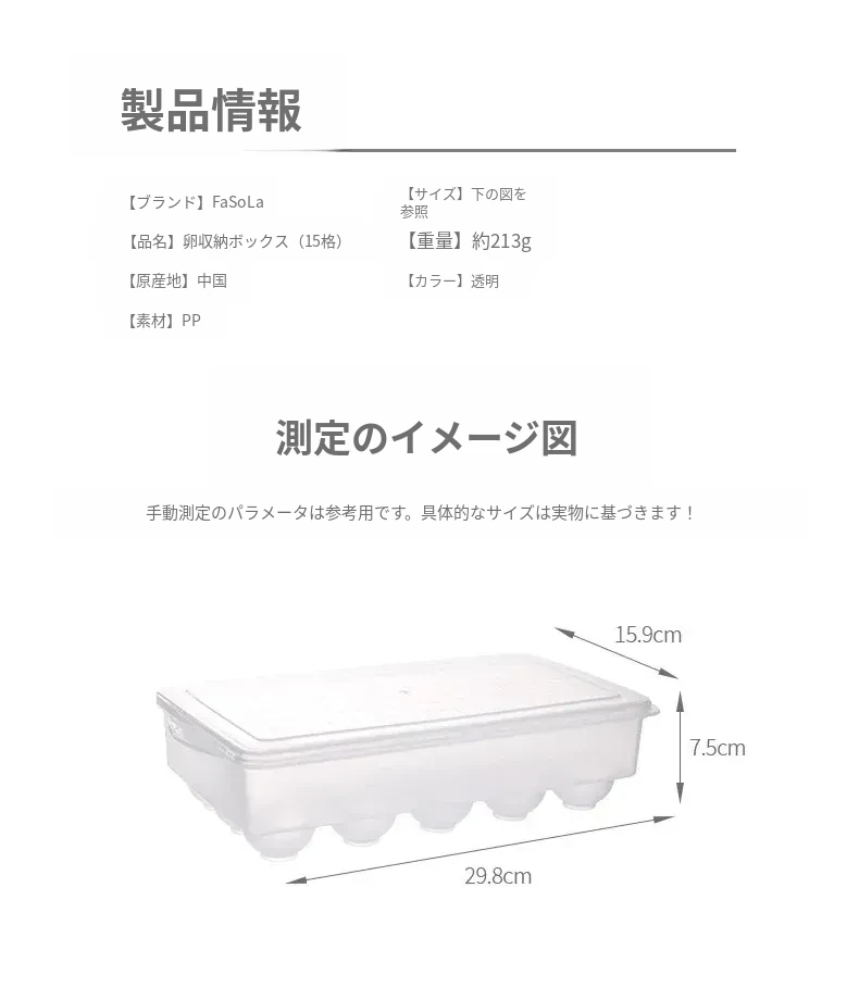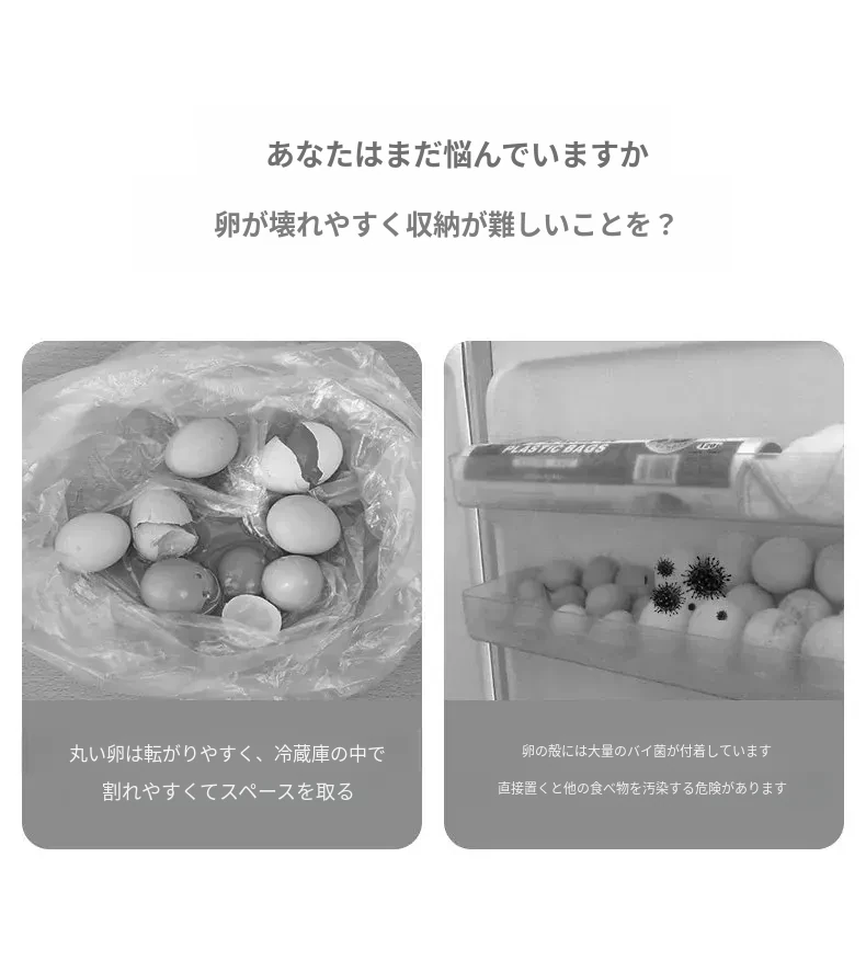 FaSoLa冷蔵庫用新鮮卵収納ボックス - 厚手設計で卵をしっかり保護!キッチンに最適、衝撃吸収・防塵カバー付きで清潔に保ちます。家庭用にぴったりな便利なアイテム!