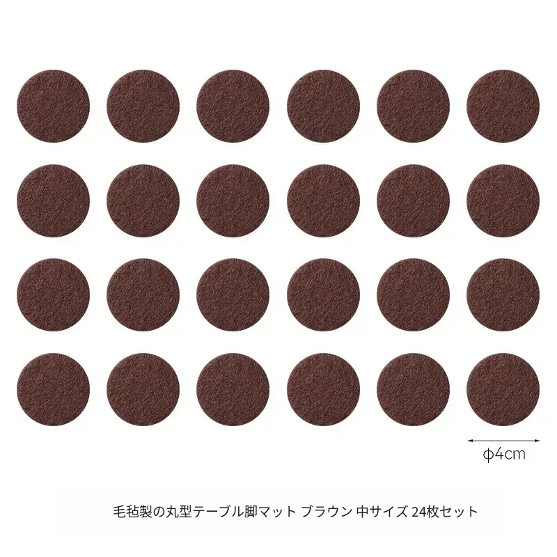 フェルトテーブル脚マット 丸型ブラウン中サイズ 24個