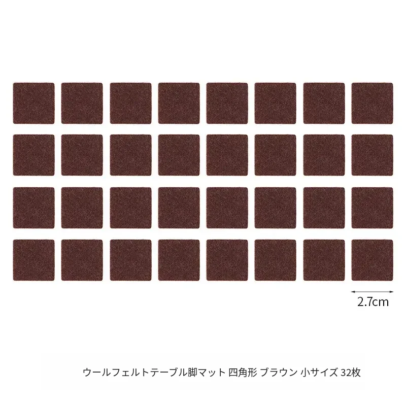 フェルトテーブル脚マット 四角型ブラウン小サイズ 32個