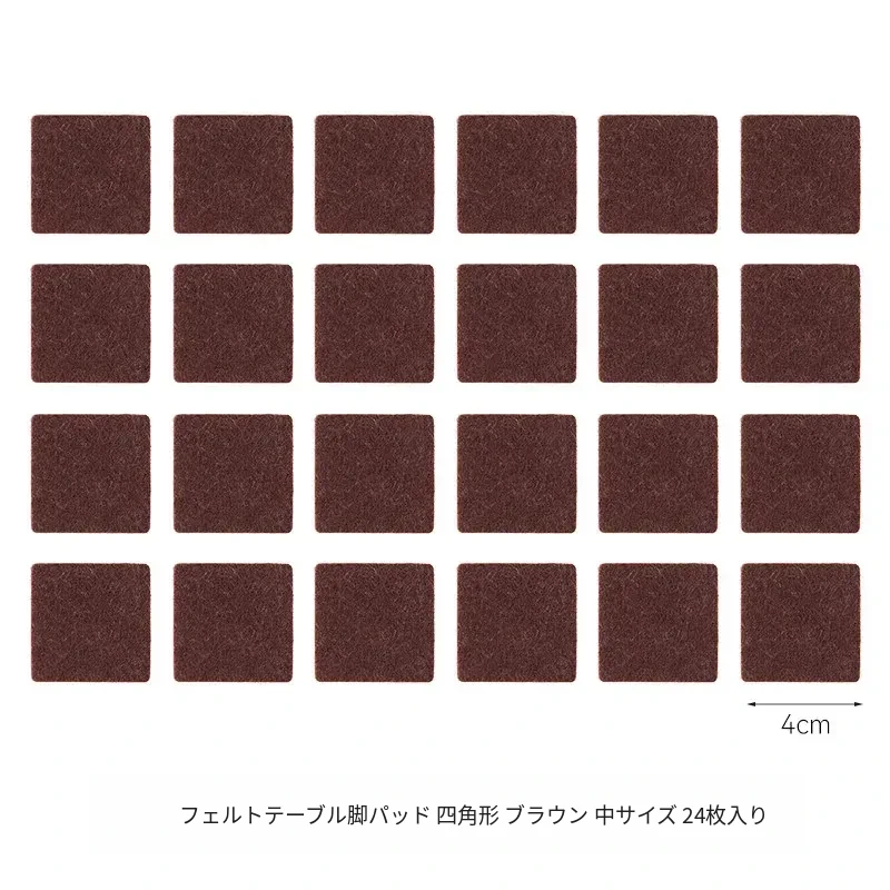 フェルトテーブル脚マット 四角型ブラウン中サイズ 24個