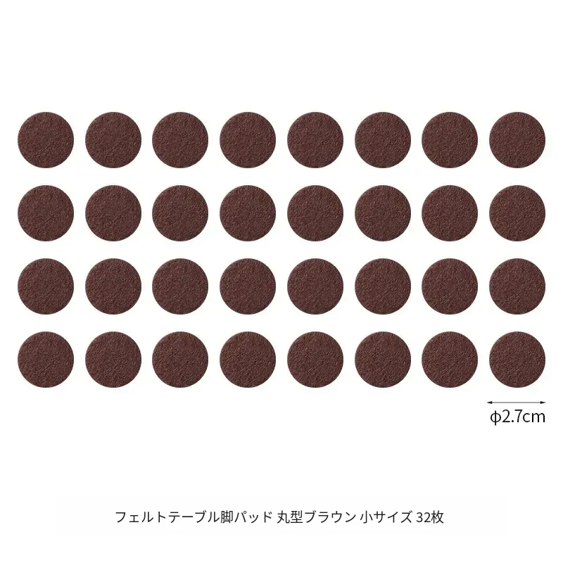 フェルトテーブル脚マット 丸型ブラウン小サイズ 32個