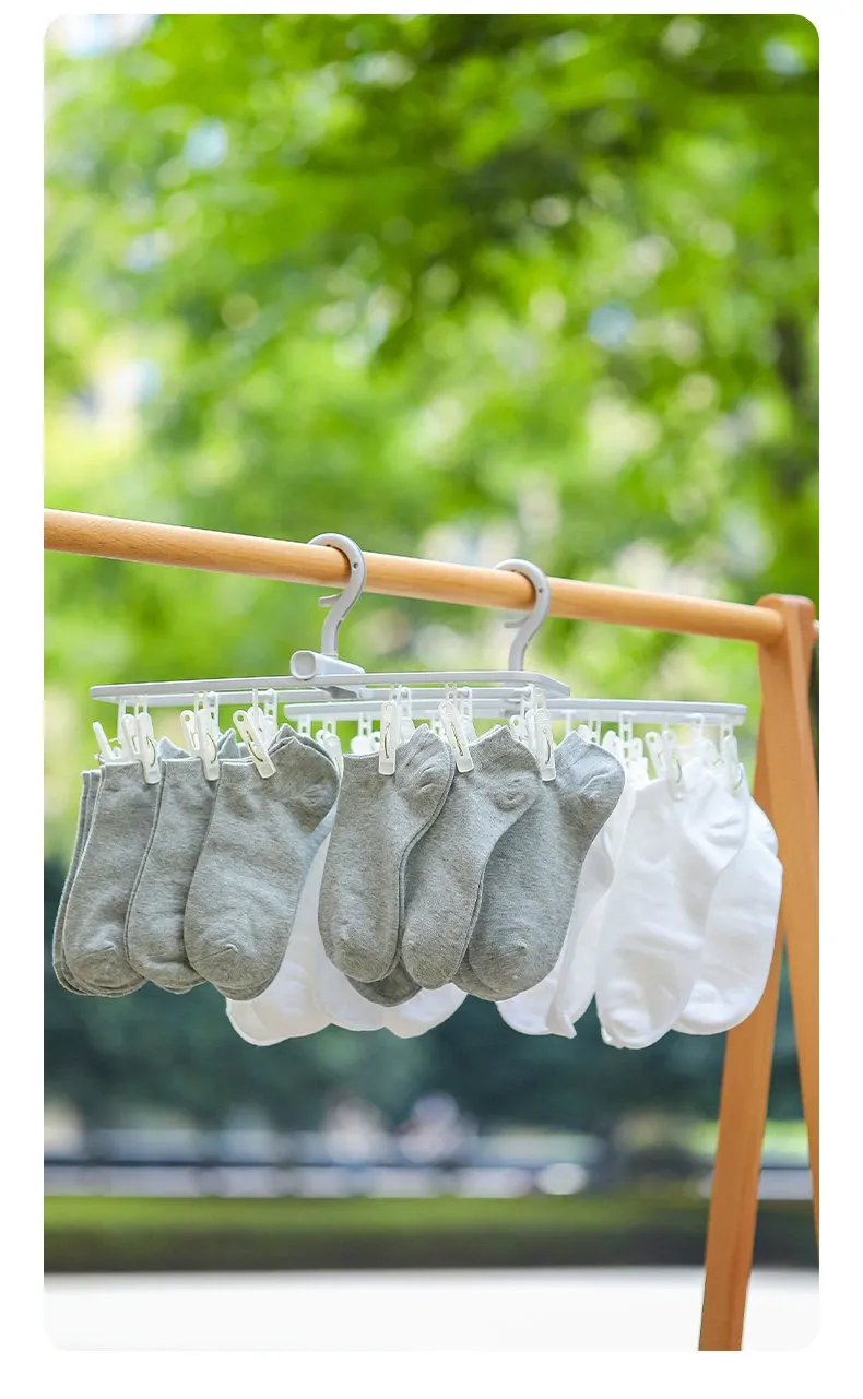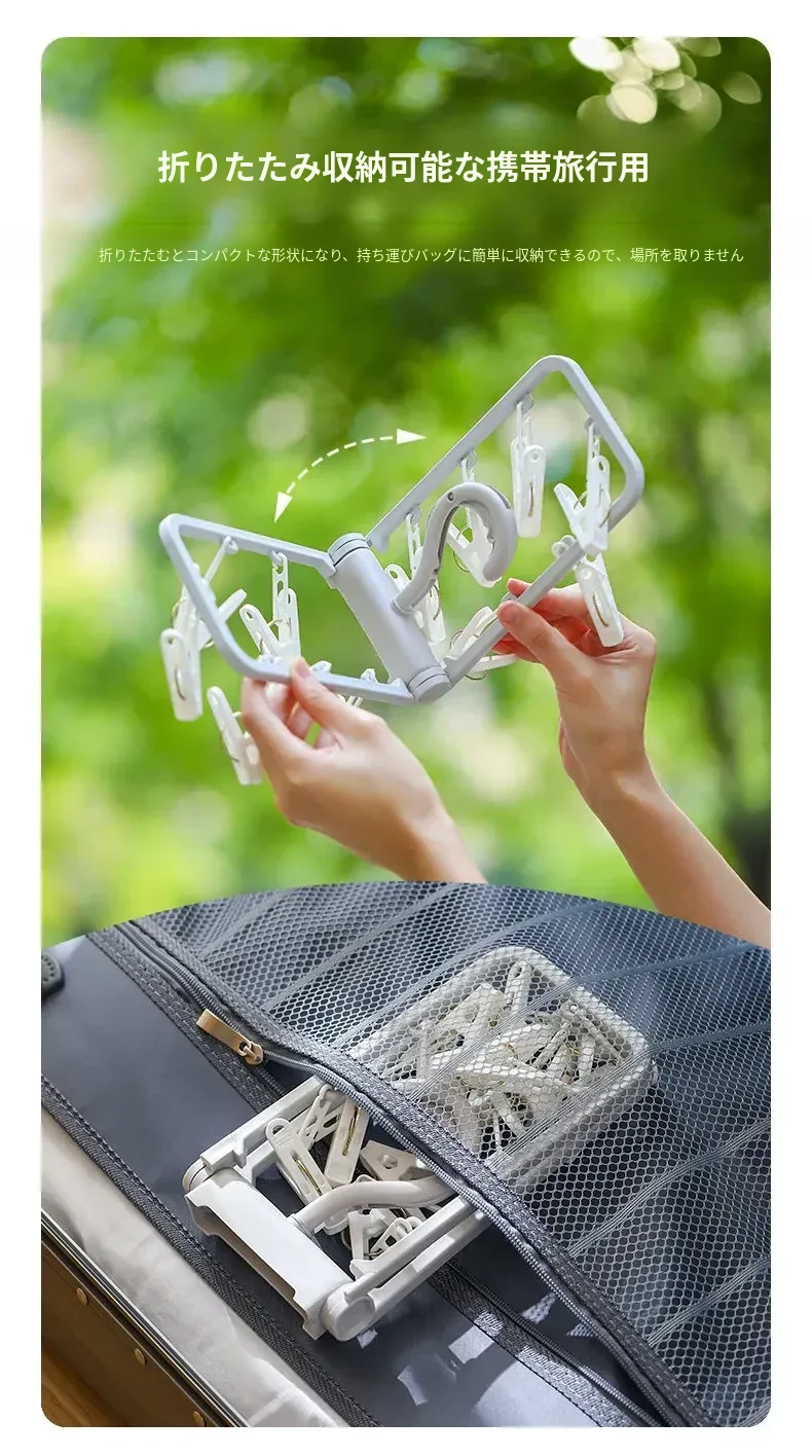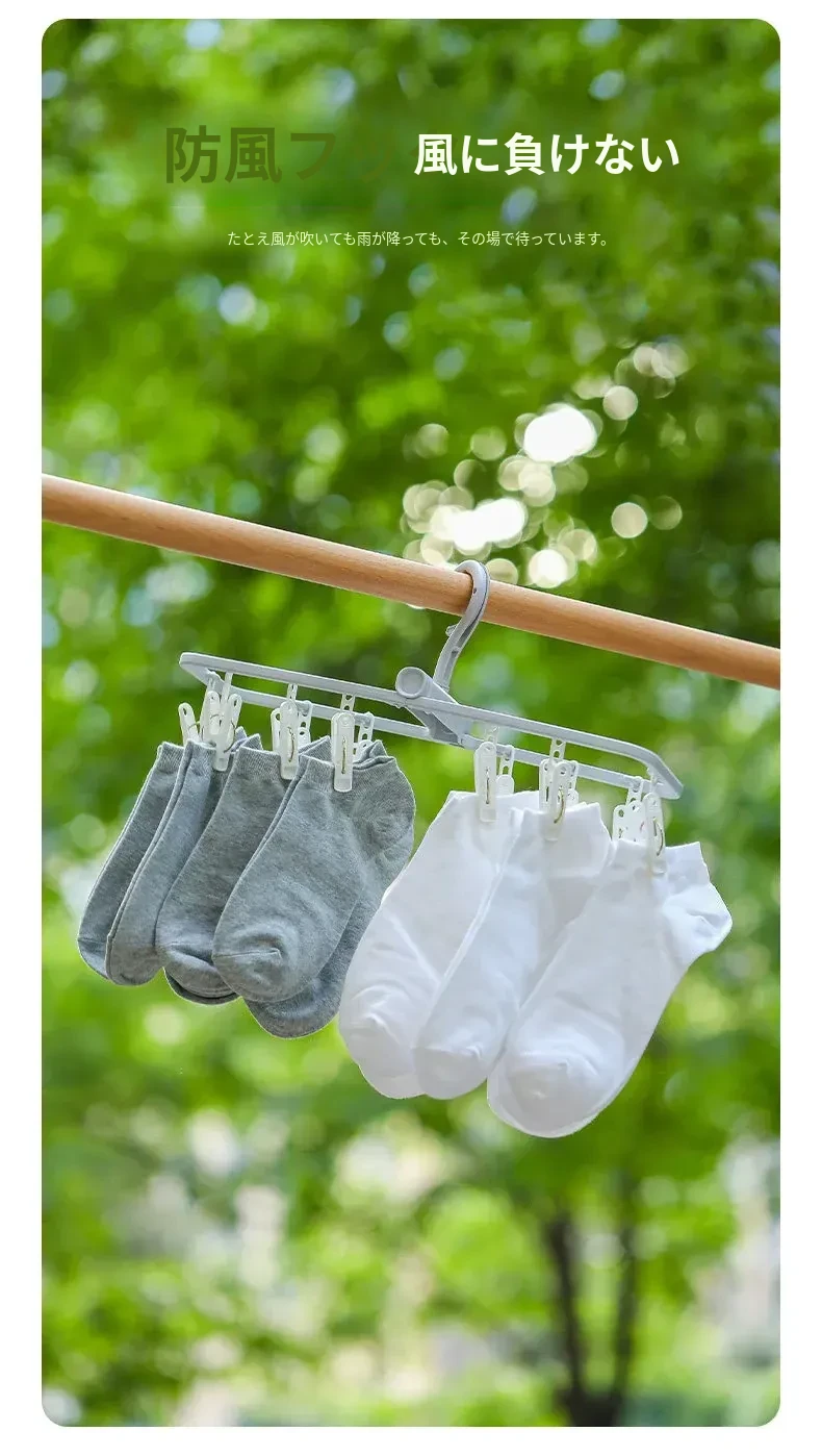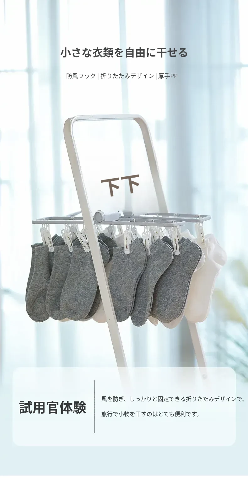 FaSoLa折りたたみ式防風衣類ハンガー - ランジェリー、パンツ、靴下をしっかり乾かすための多クリップ衣類干し台!家庭用の便利な干しラックで、スペースを節約しながら快適に乾燥!
