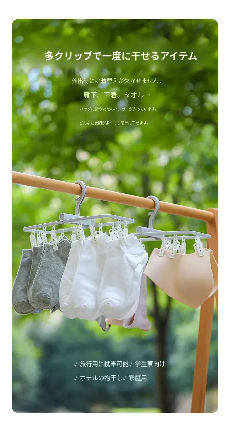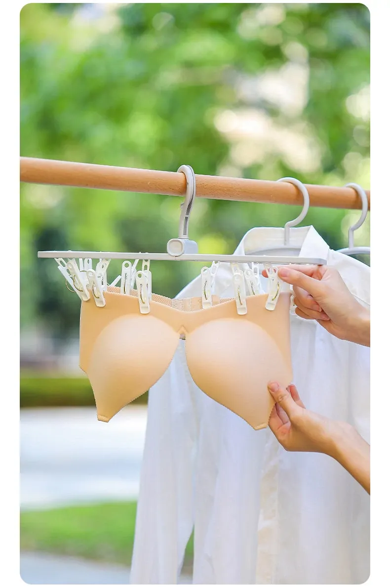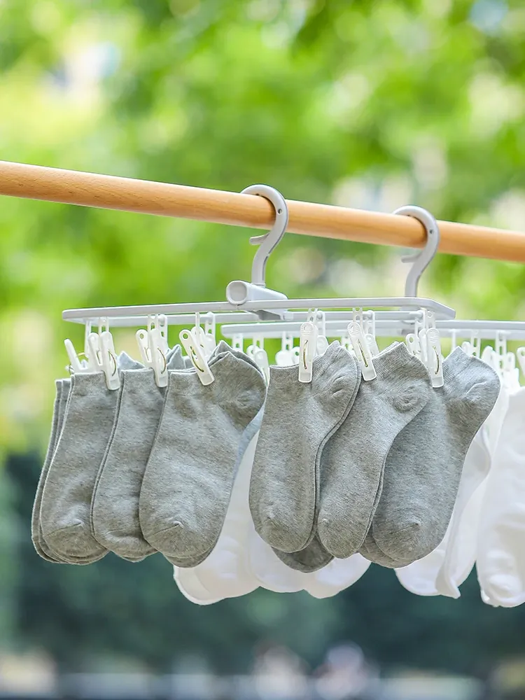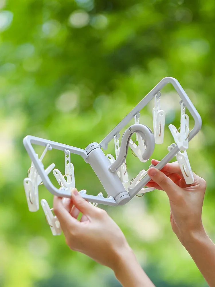 FaSoLa折りたたみ式防風衣類ハンガー - ランジェリー、パンツ、靴下をしっかり乾かすための多クリップ衣類干し台!家庭用の便利な干しラックで、スペースを節約しながら快適に乾燥!