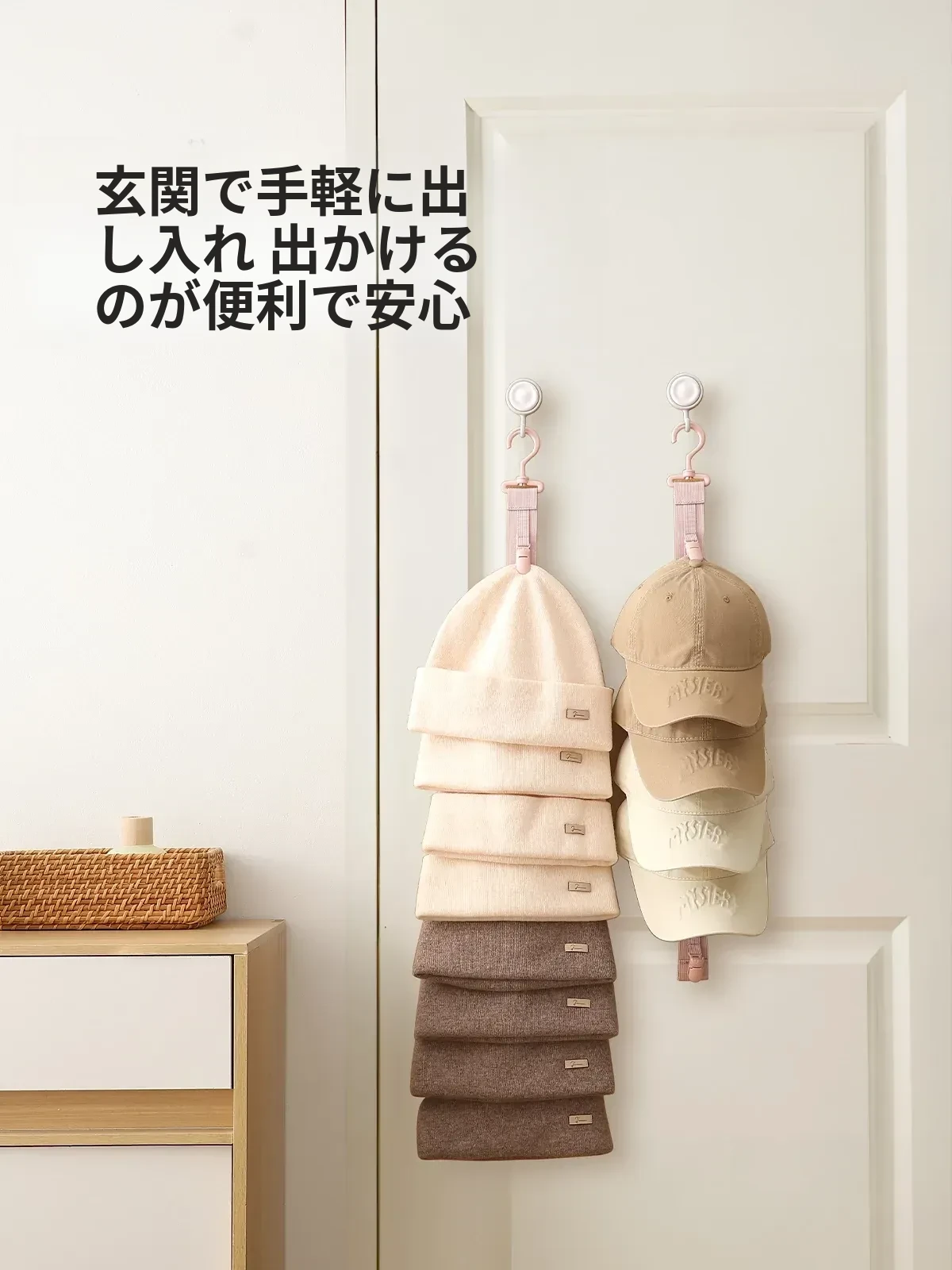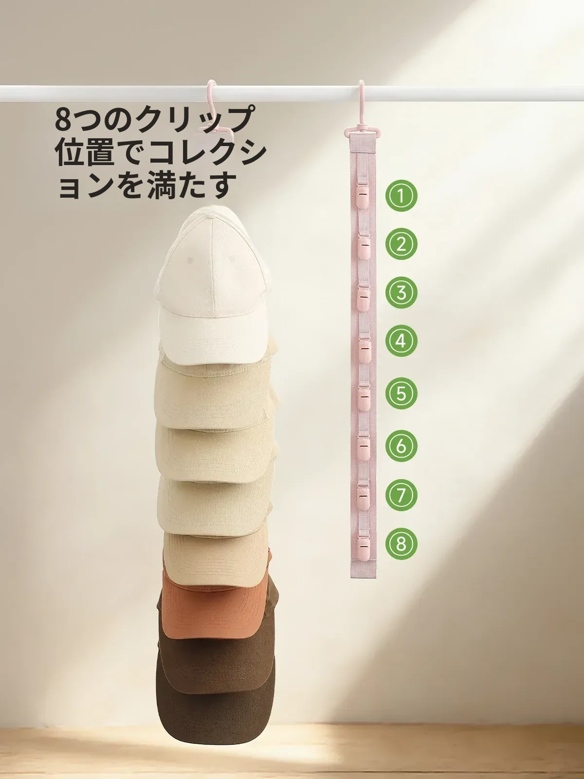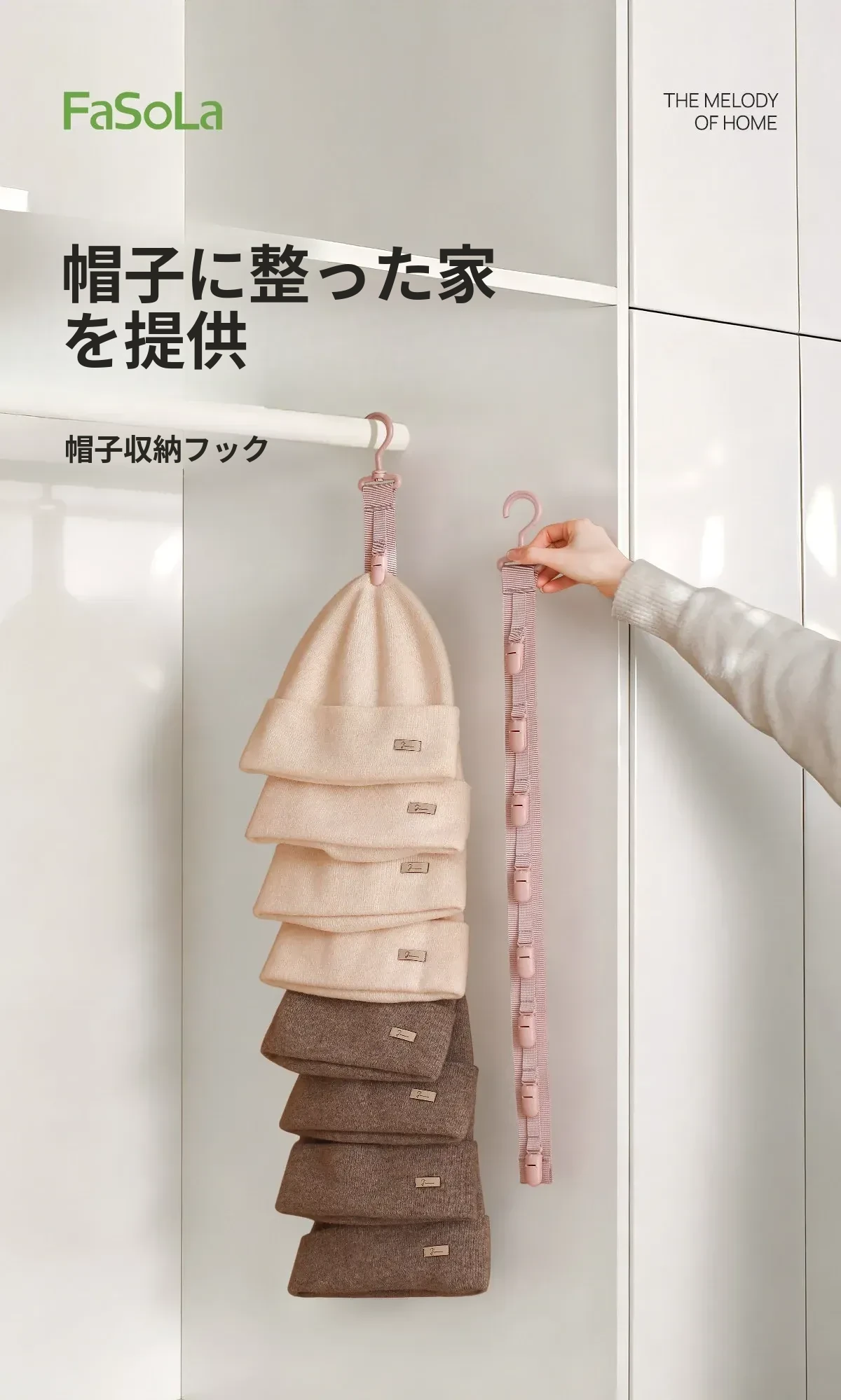 FaSoLaハット収納マジック!壁掛けで省スペースを実現!デイリー使いに最適なキャップクリップ、クローゼットや学生寮のドア裏にぴったりのフックです。おしゃれに整理整頓して、毎日のコーディネートを楽しく!