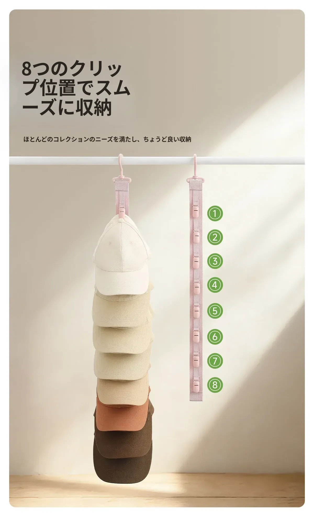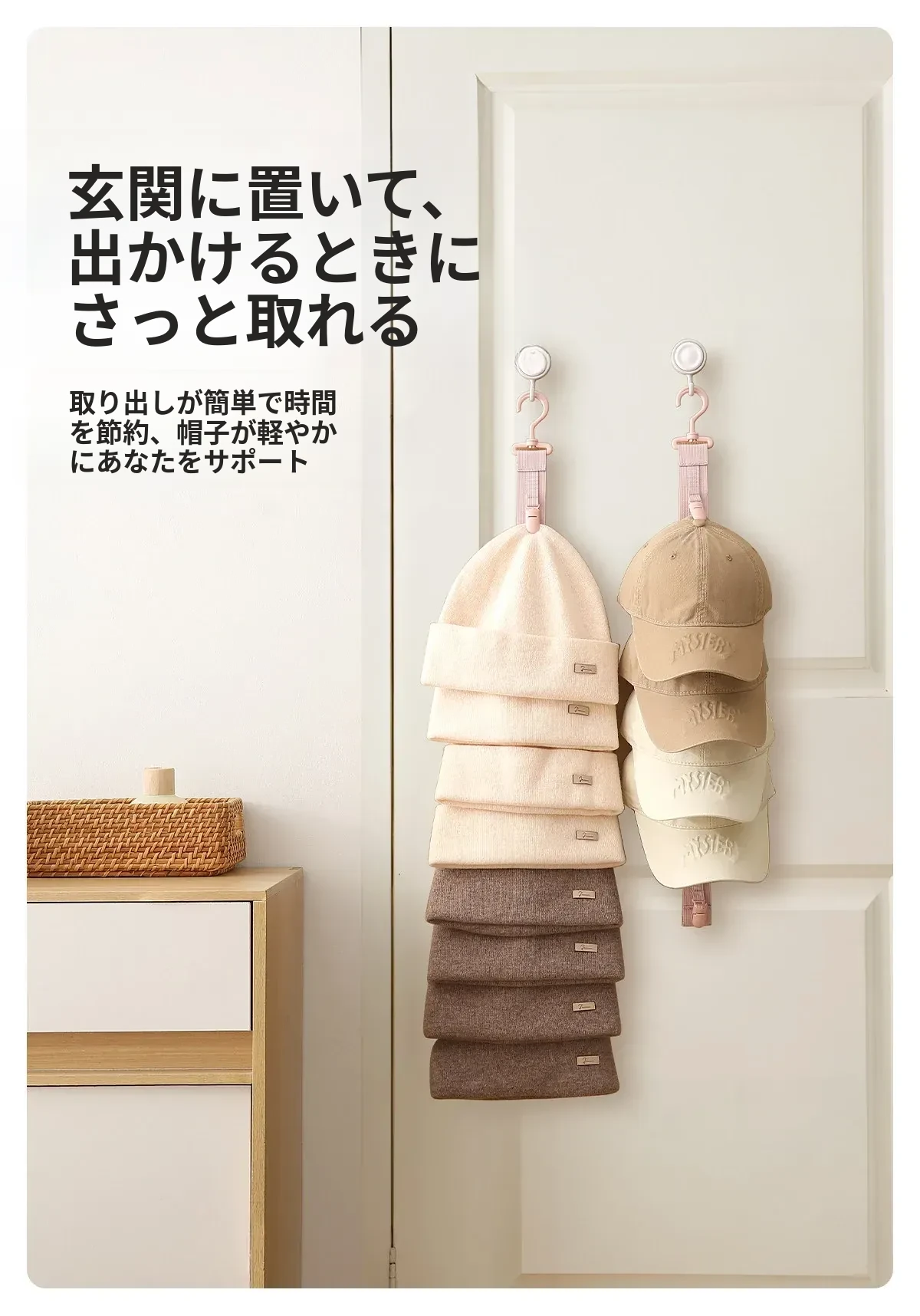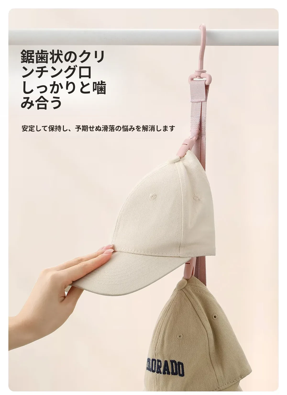 FaSoLaハット収納マジック!壁掛けで省スペースを実現!デイリー使いに最適なキャップクリップ、クローゼットや学生寮のドア裏にぴったりのフックです。おしゃれに整理整頓して、毎日のコーディネートを楽しく!