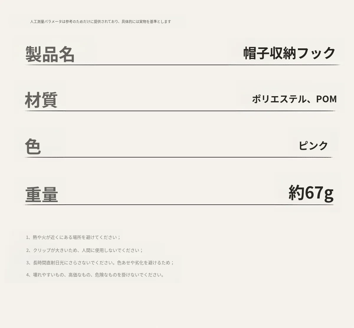 帽子収納フック(ピンク)