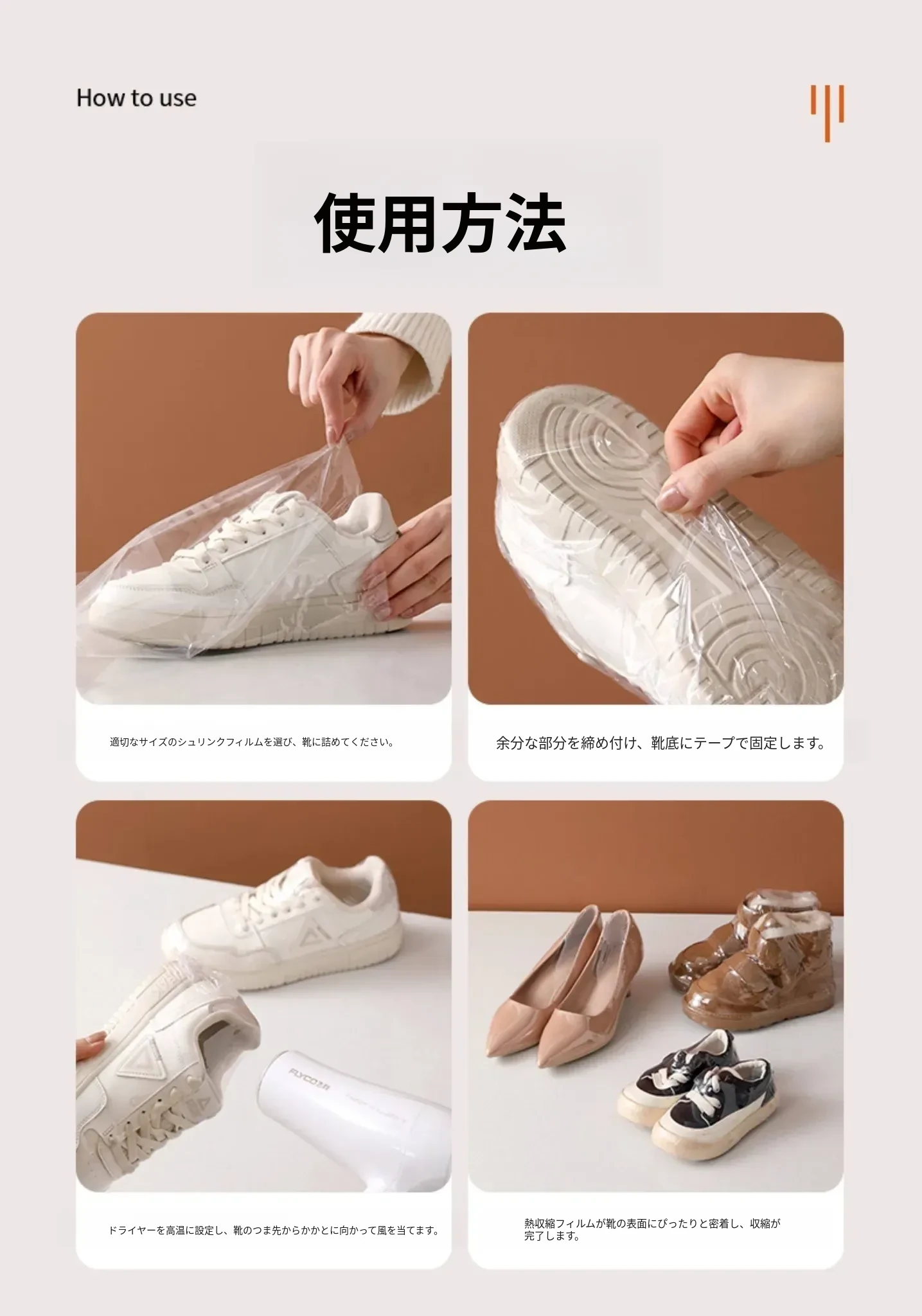 FaSoLa熱収縮フィルムシューズバッグ - 防湿・防塵でシューズを守る!収納力抜群のシューズ保護アイテムで、大切な靴をいつでも清潔に保ちます。あなたの靴をスタイリッシュに収納しましょう!