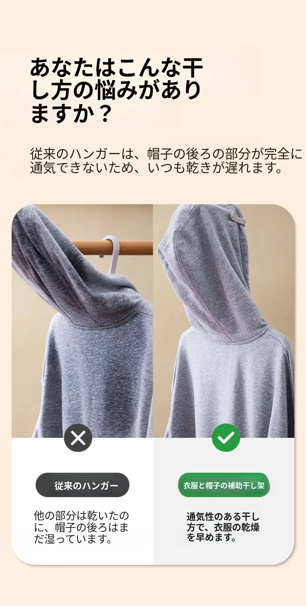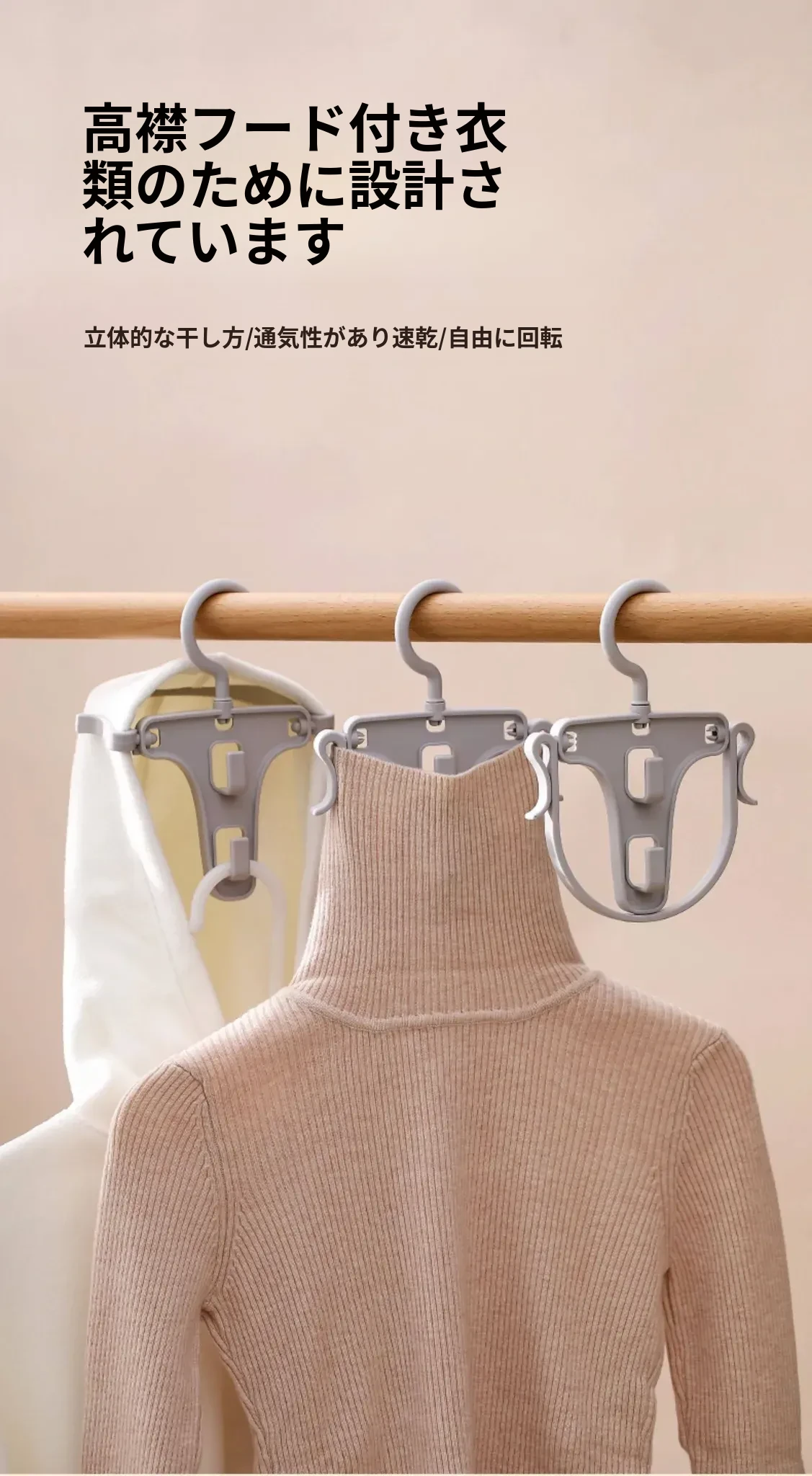 FaSoLa 折りたたみ式フード付きパーカー干しスタンド - 風に強く滑り止めクリップ付き!ハイネックセーターをしっかり支える便利アイテム!家での洗濯がもっと楽しくなる!