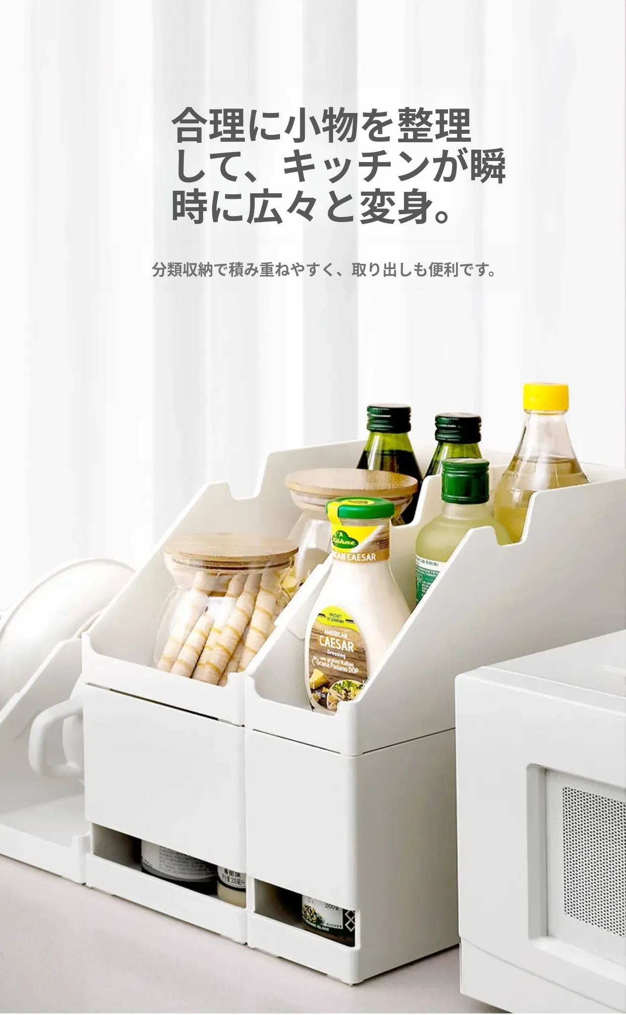 FaSoLa家庭用キッチンプラスチック収納バスケット - 日本風デザインのデスクトップ収納ボックス、リビングのスナックやおもちゃ、雑貨整理に最適!おしゃれで機能的な収納ソリューション。