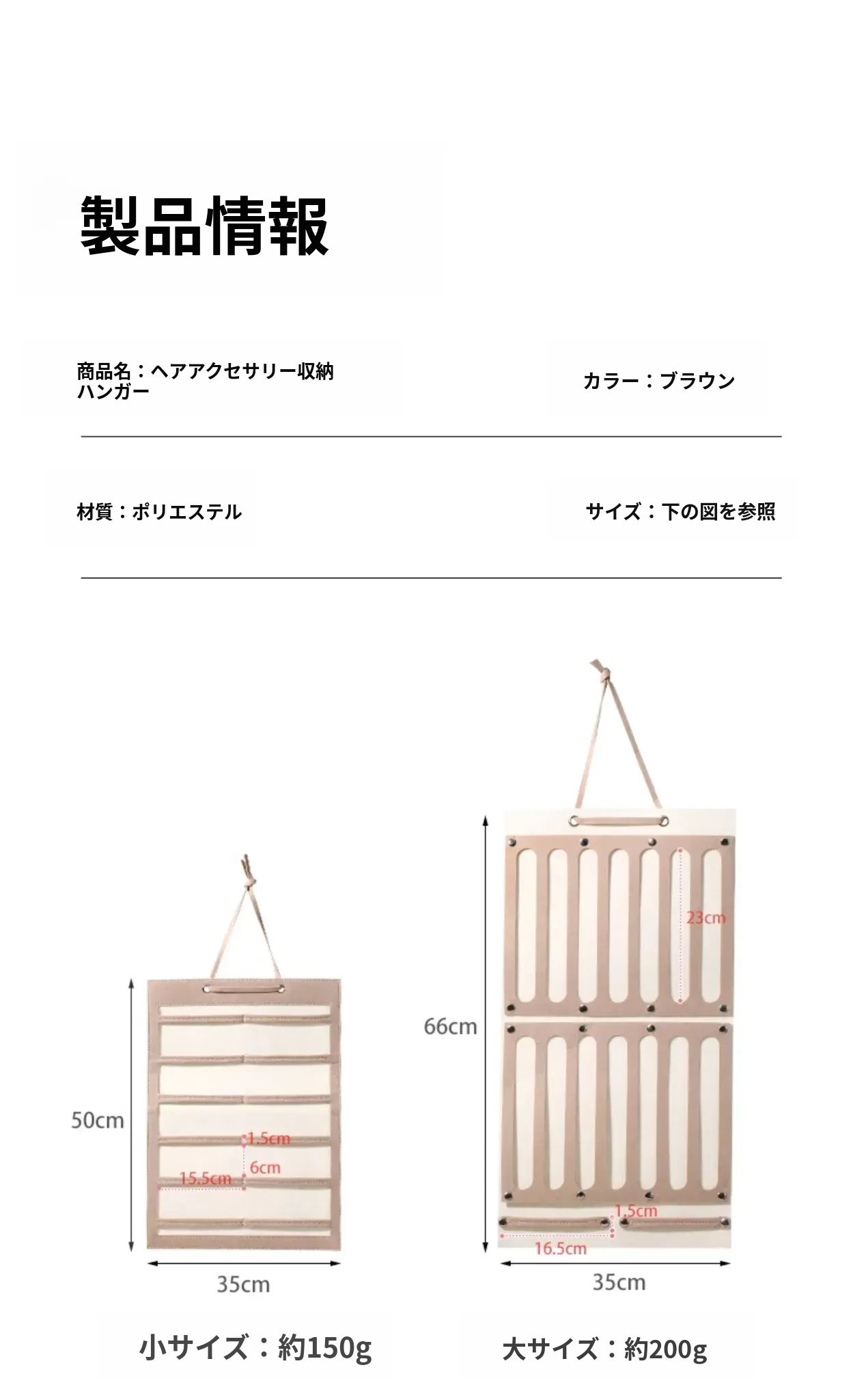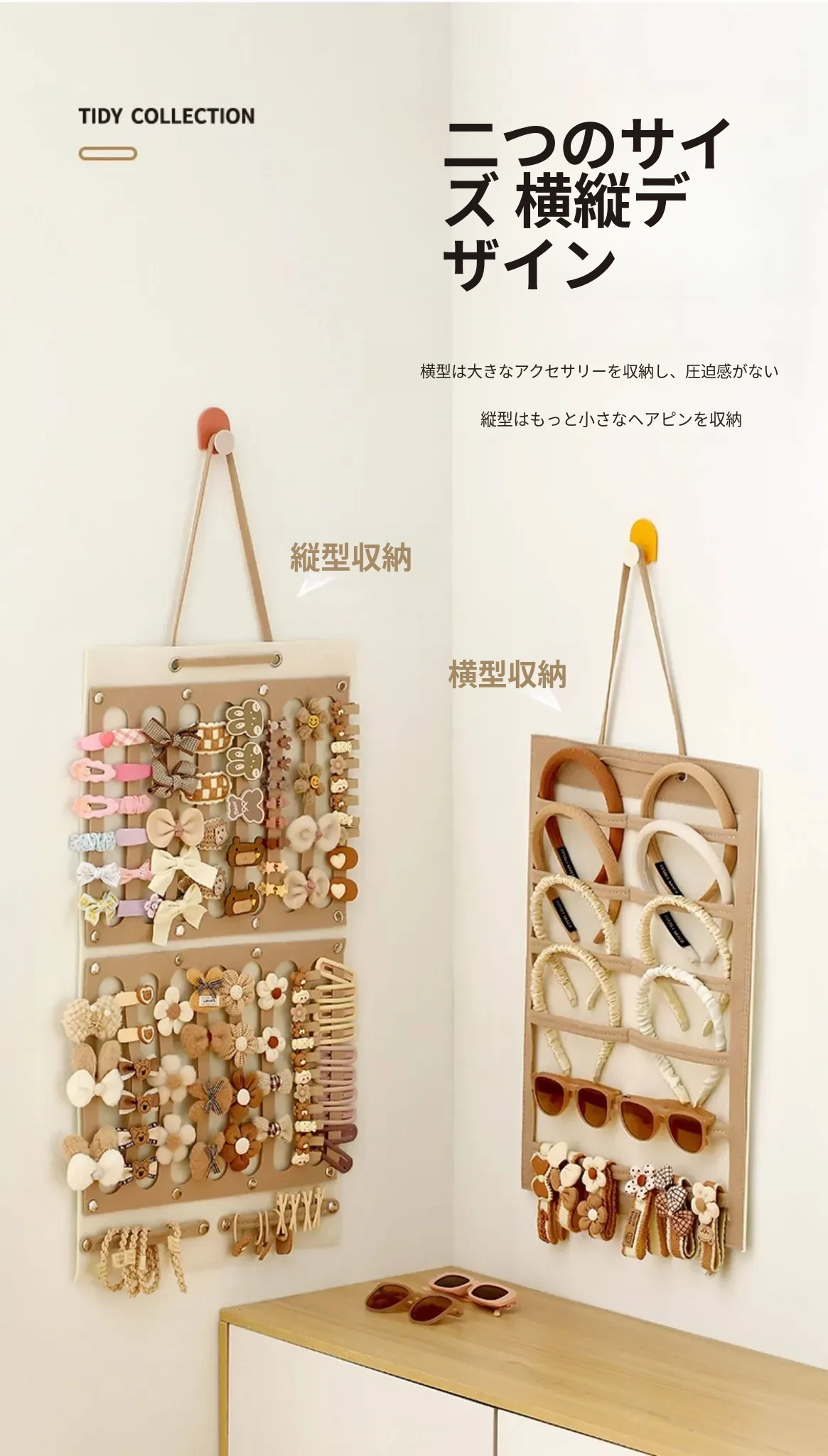 ヘアアクセサリー収納ポーチ(大)2個- フック2個プレゼント