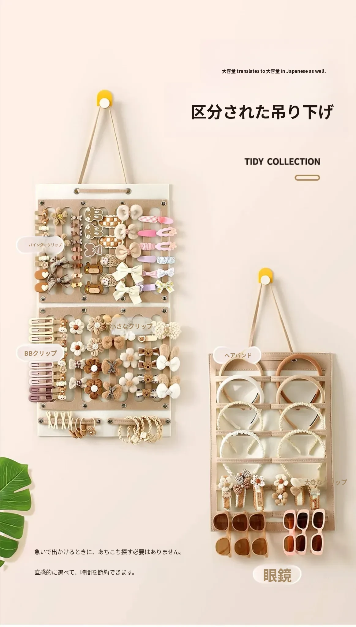 FaSoLa子供用ヘアアクセサリー収納ウォールオーガナイザー - ヘアゴム、ヘアバンド、アクセサリーをスッキリ整理!おしゃれで便利な壁掛けバッグ!