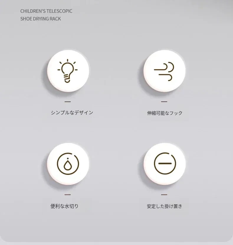 FaSoLa子供用靴干しラック 伸縮可能 家庭用 ベランダ風防止 お子様の靴をしっかり乾かす便利アイテム!おしゃれで機能的、雨の日でも安心して使用できます。