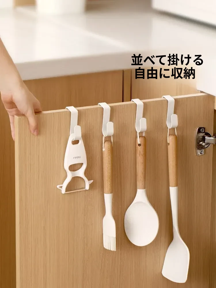FaSoLaキッチンフック 鍋やおたまをスマートに収納!穴あけ不要のドア背面フック。寮や狭いスペースに最適な衣類掛け&収納ラック!整理整頓を簡単に!