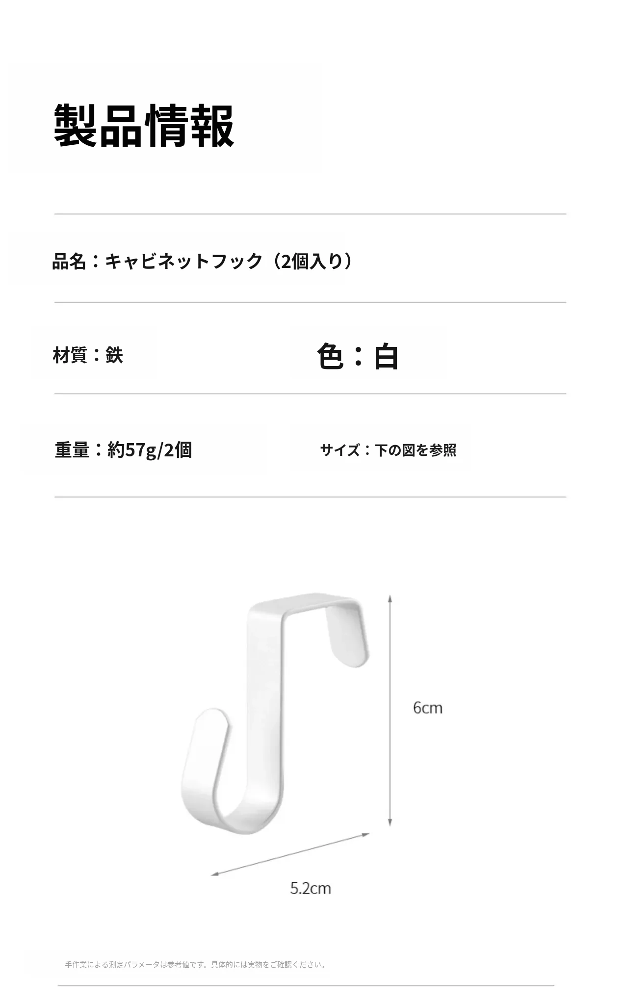 キャビネットフック(2個セット)