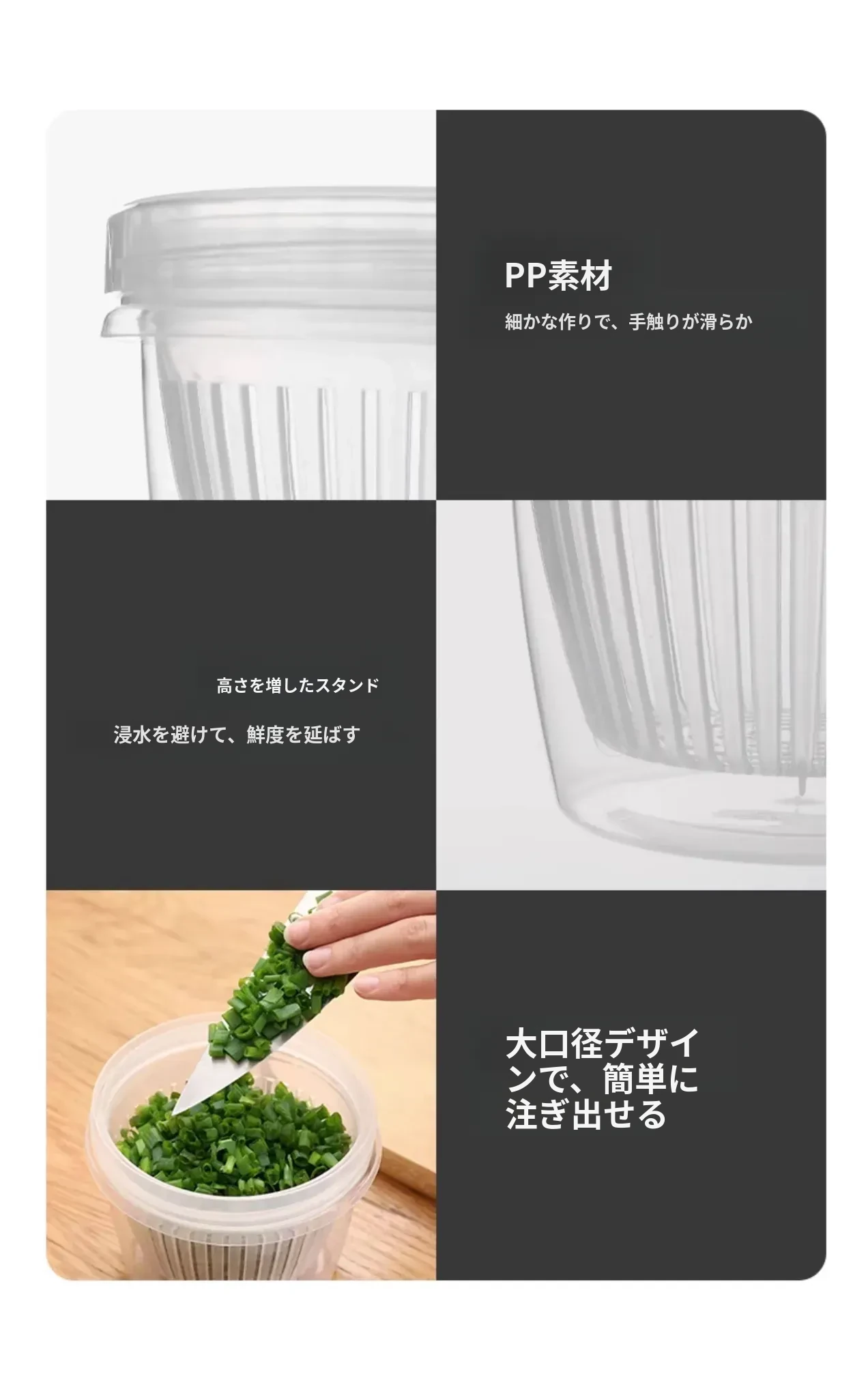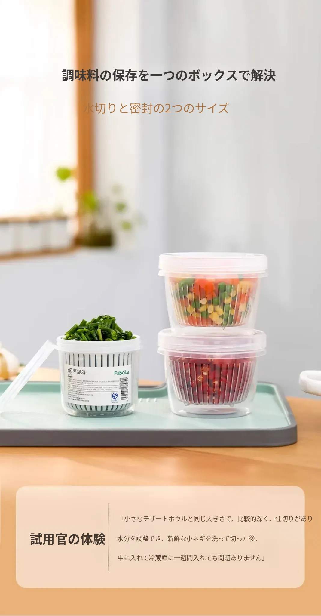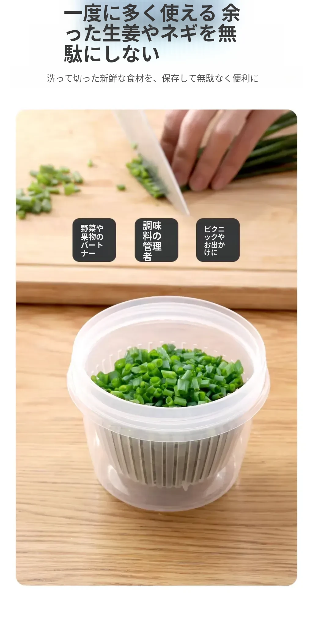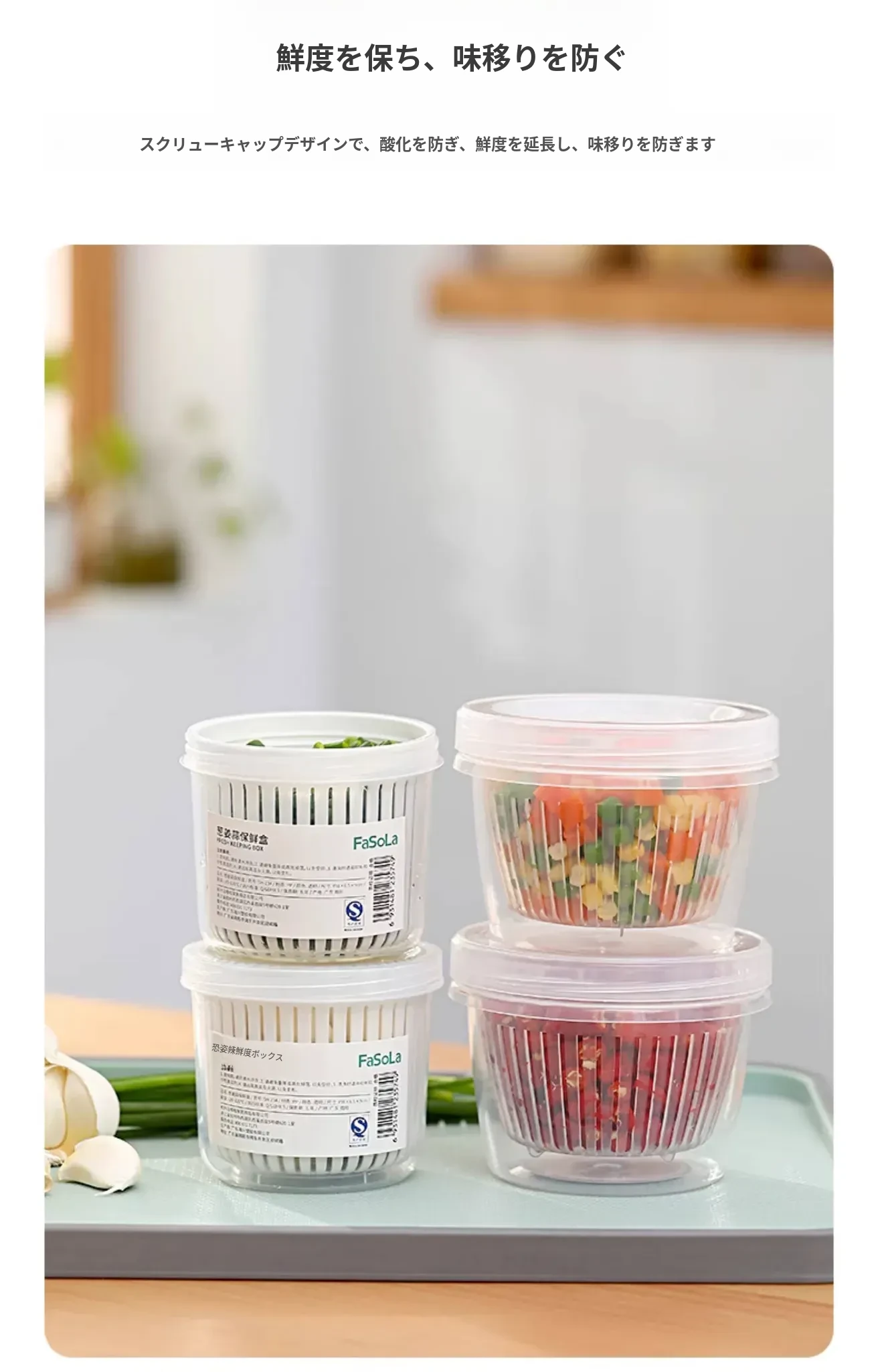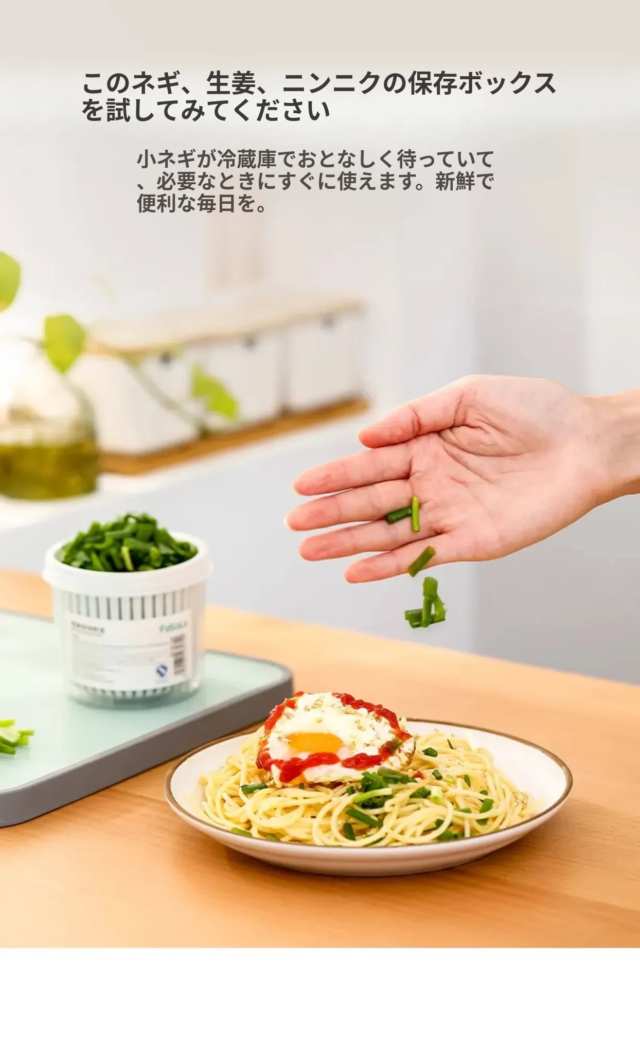FaSoLa葱収納ボックス - 冷蔵庫に最適!新鮮なネギ、生姜、ニンニクを保存し、風味を保つ食品グレードの収納ケース。使いやすく、キッチンをすっきり整理。あなたの料理をさらに美味しく!