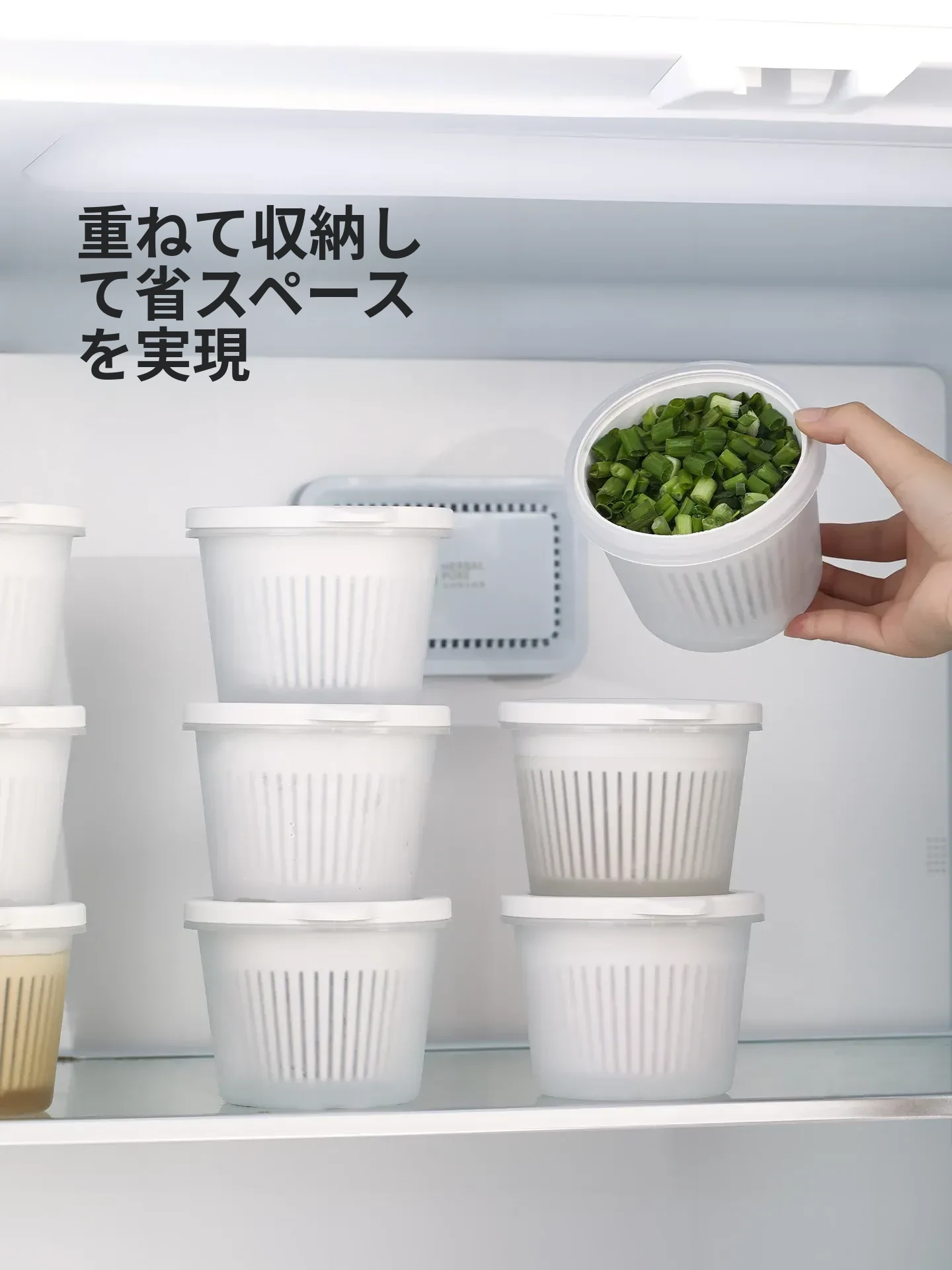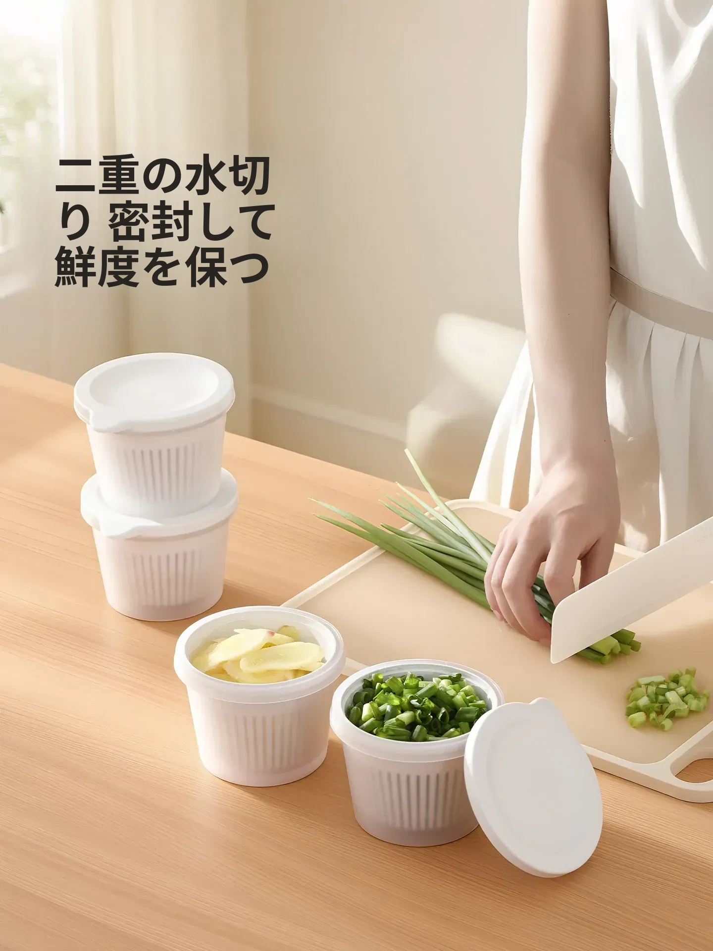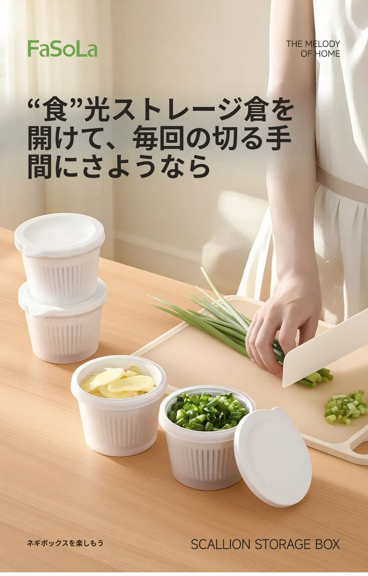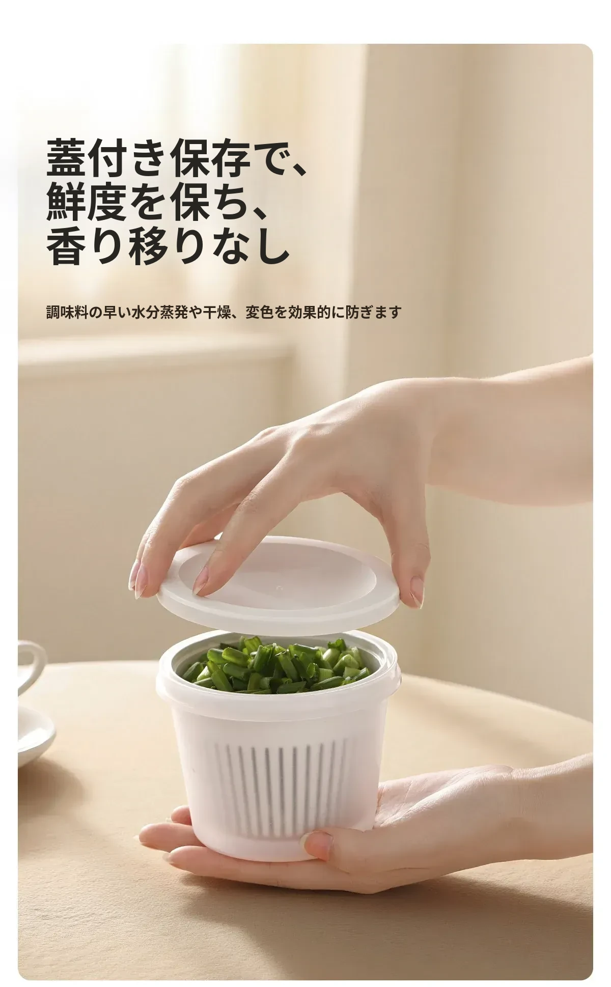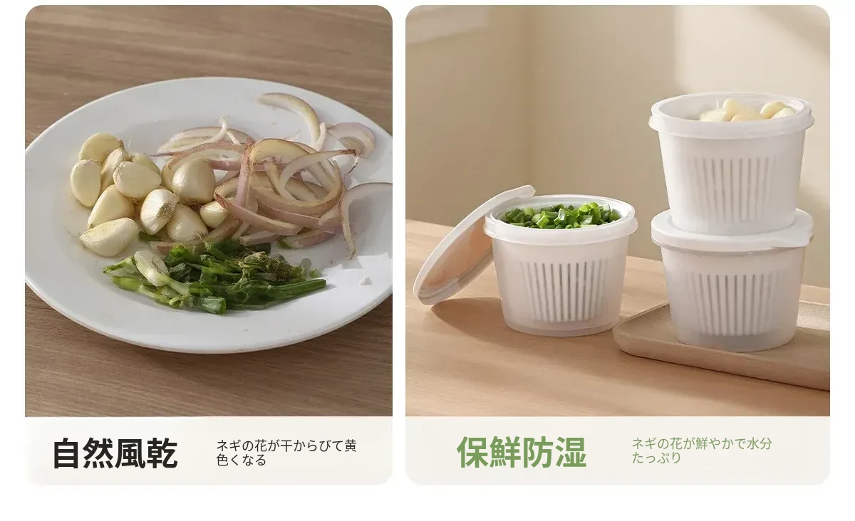 FaSoLaキッチン用ネギ、生姜、ニンニク用水切り調理ボックス - 蓋付きで密封、味が移らない!フルーツや冷蔵庫の保存に最適な収納ボックスです。