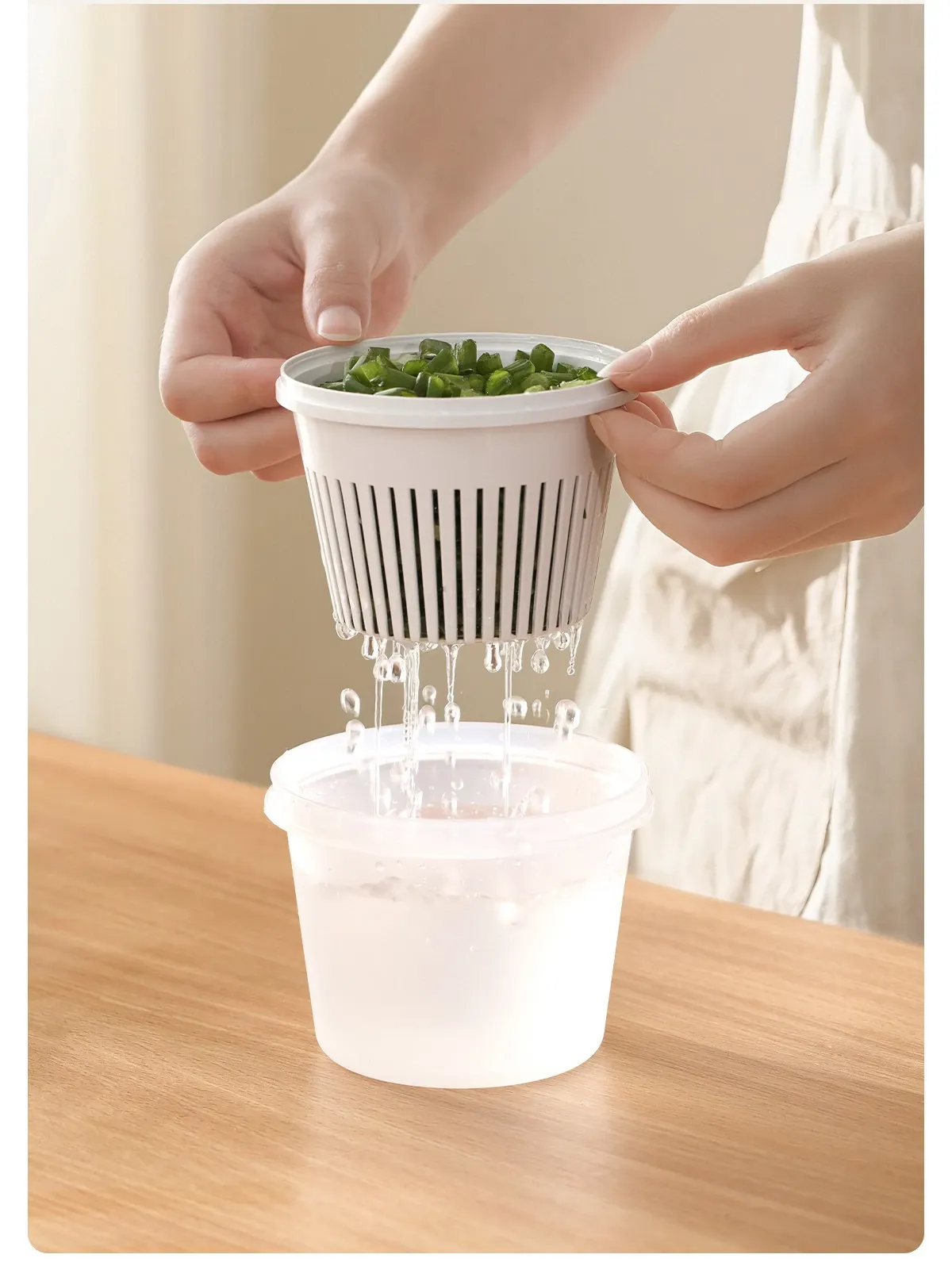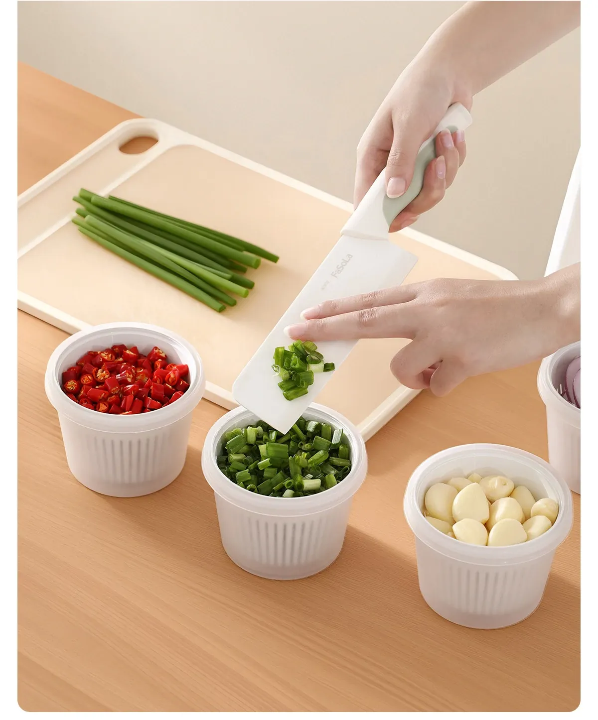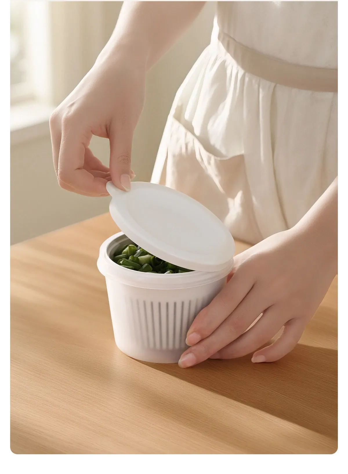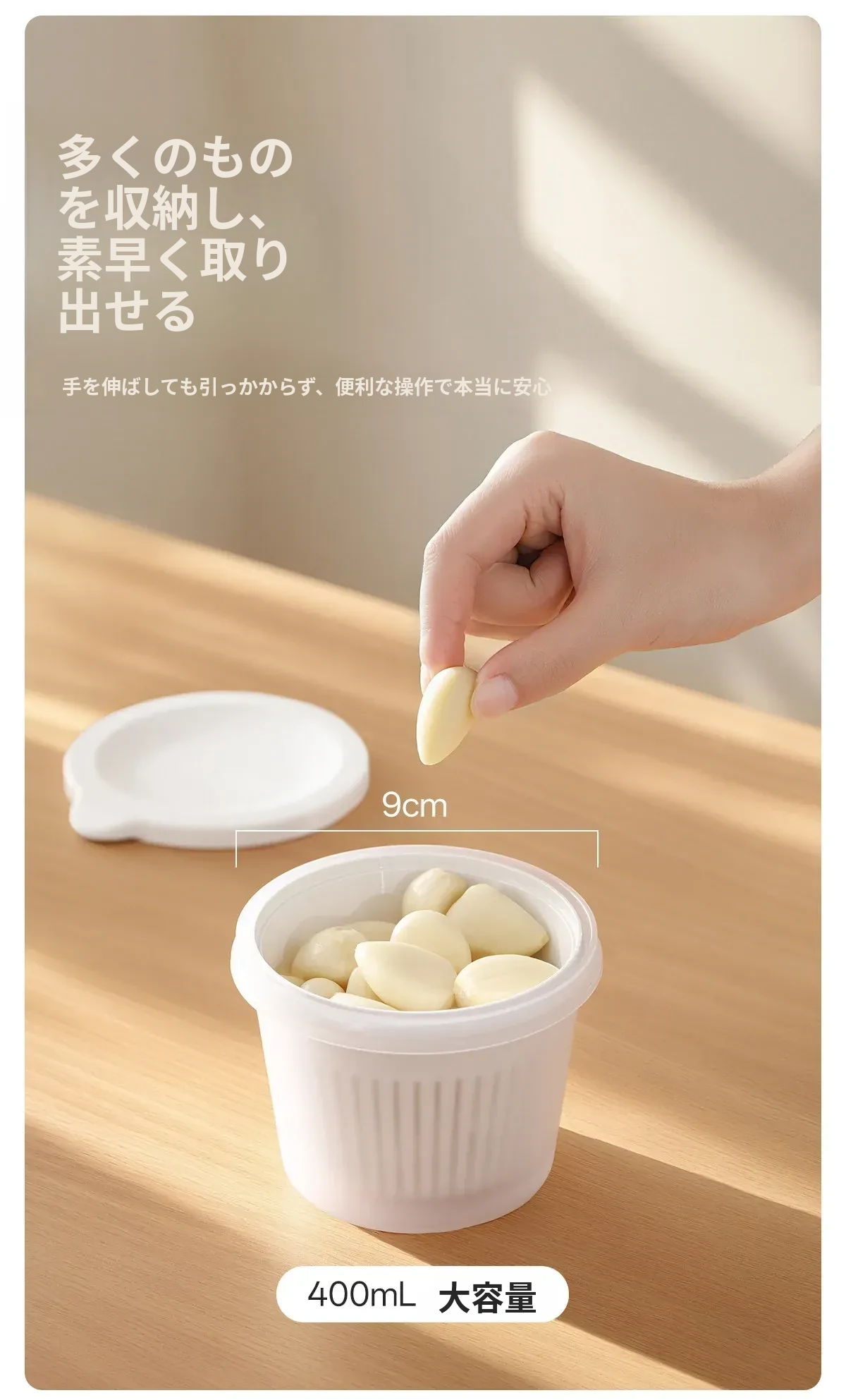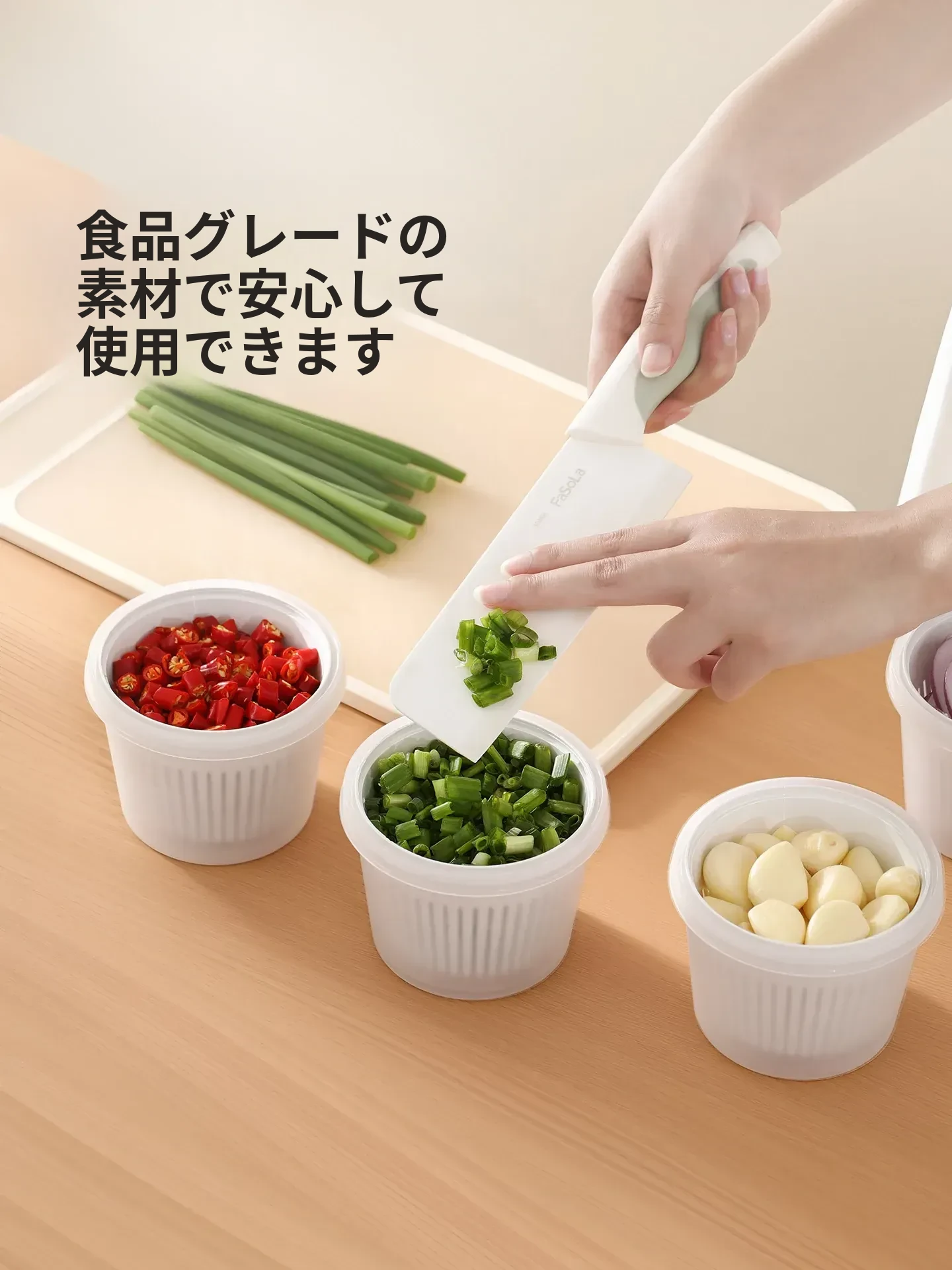 FaSoLaキッチン用ネギ、生姜、ニンニク用水切り調理ボックス - 蓋付きで密封、味が移らない!フルーツや冷蔵庫の保存に最適な収納ボックスです。