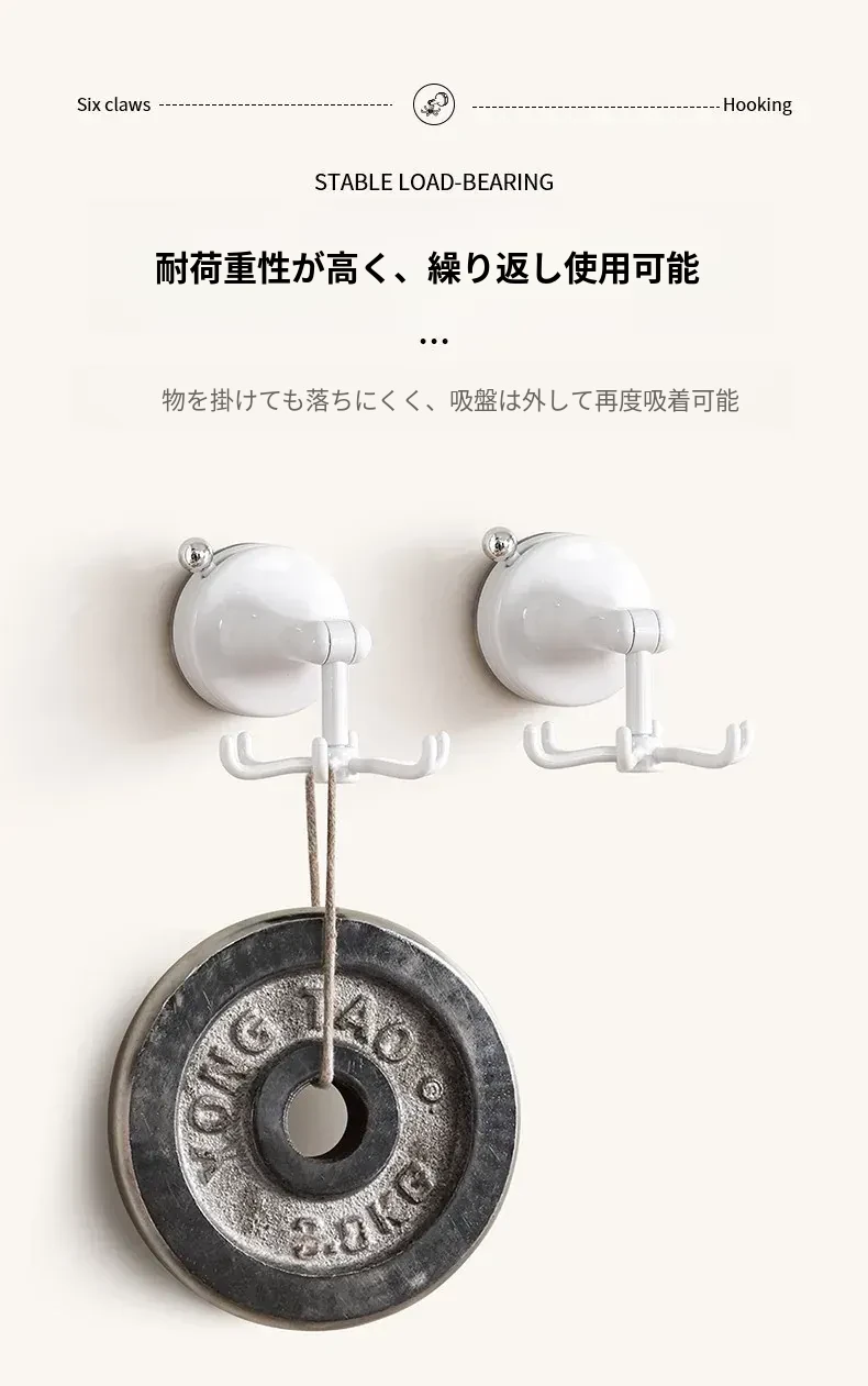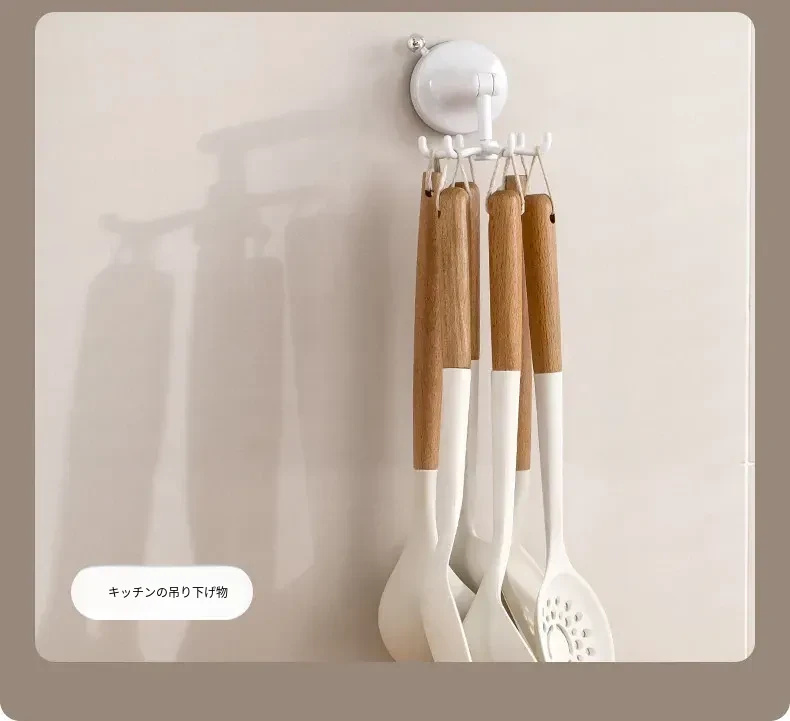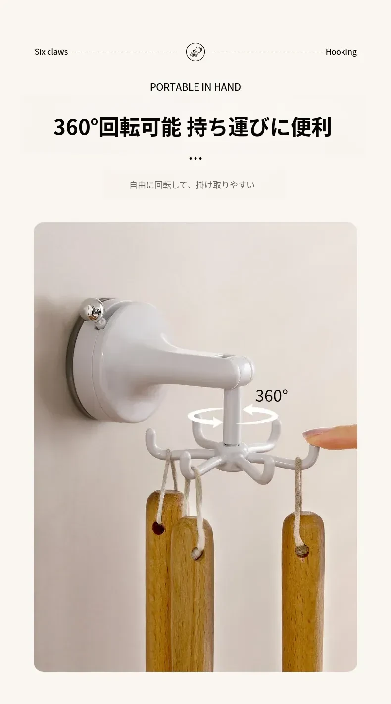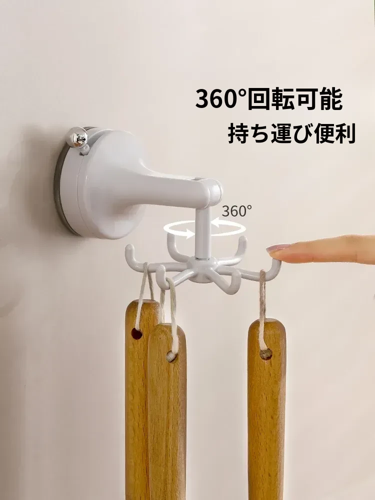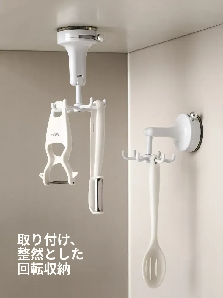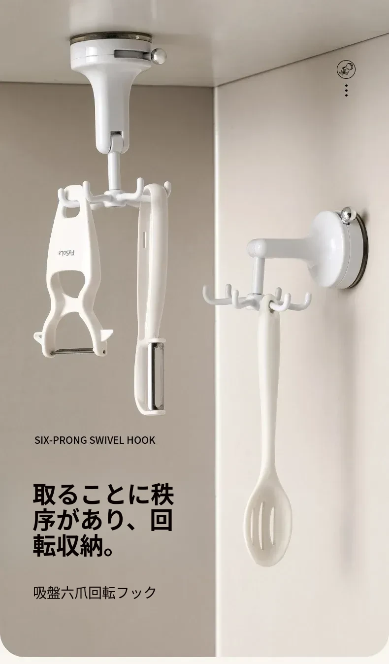 FaSoLaキッチン吸盤フック 六爪回転家用収納ラック 真空式 打孔不要のフライ返し掛けハンガーで、すっきり整理!キッチンを美しく保ち、使いやすさをアップ!