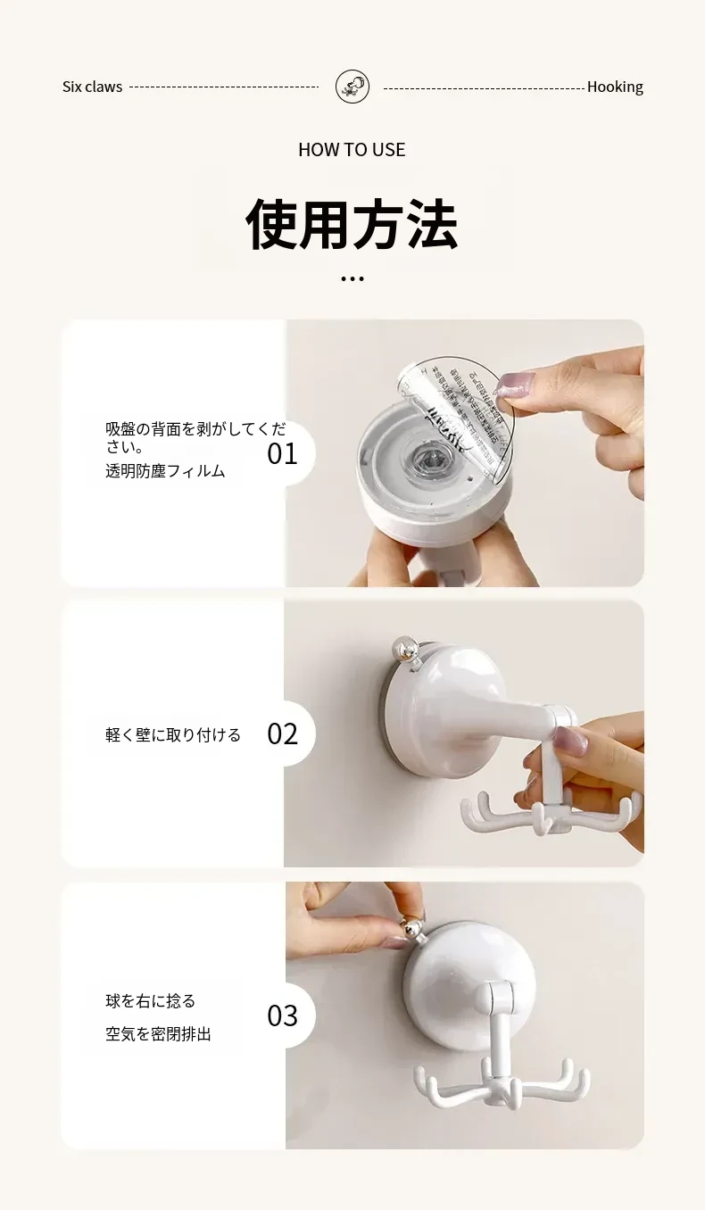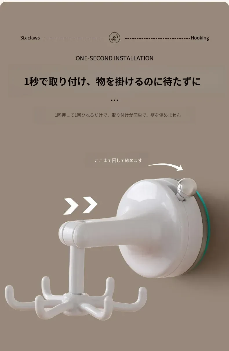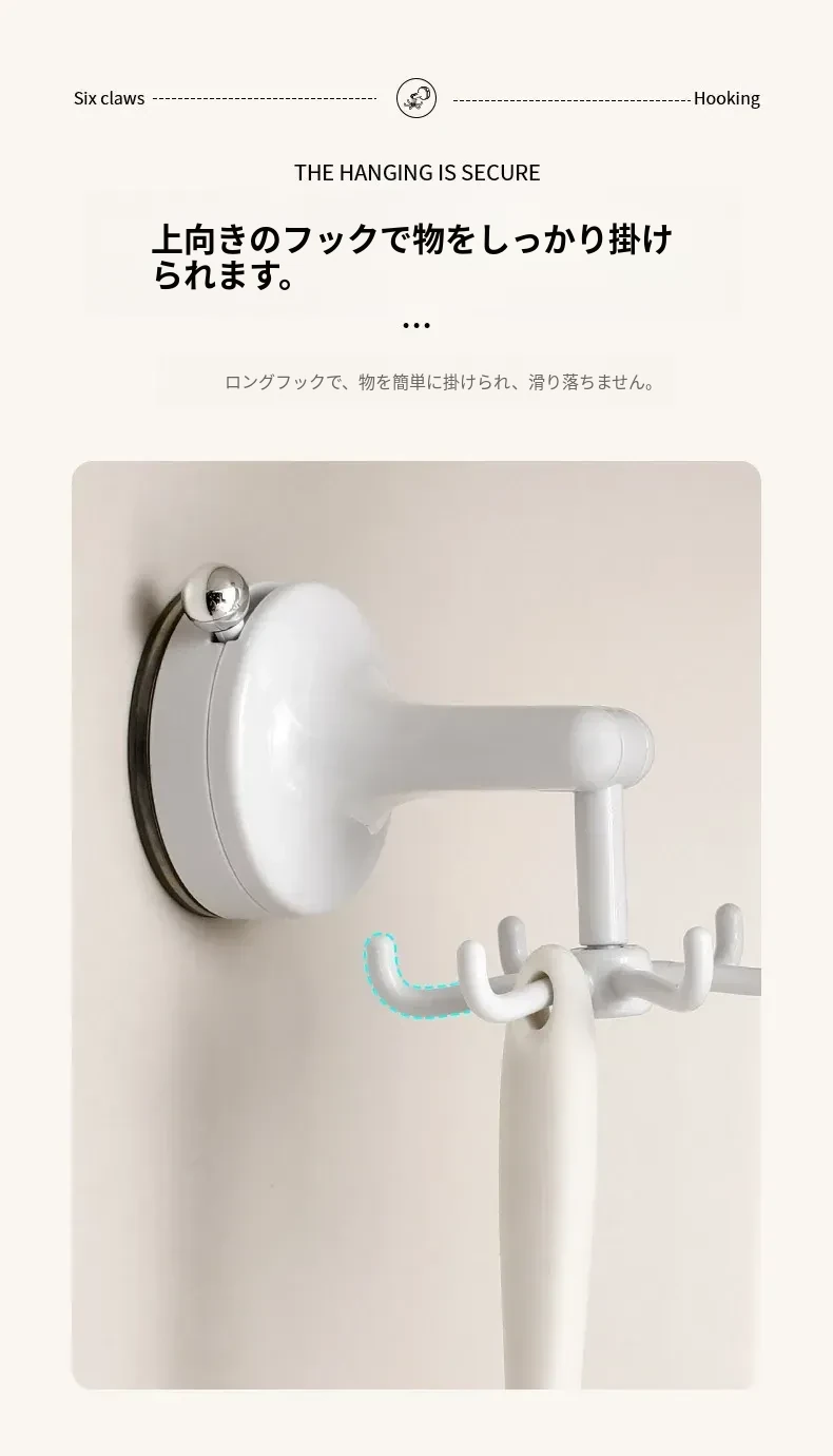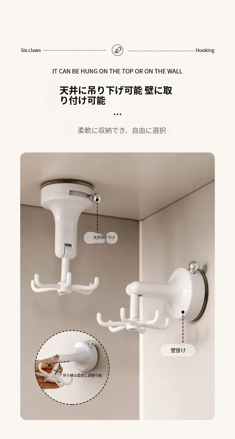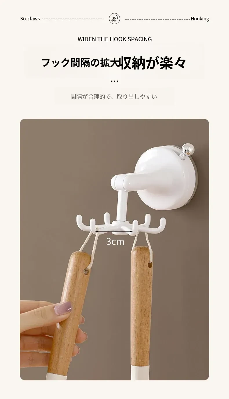 FaSoLaキッチン吸盤フック 六爪回転家用収納ラック 真空式 打孔不要のフライ返し掛けハンガーで、すっきり整理!キッチンを美しく保ち、使いやすさをアップ!