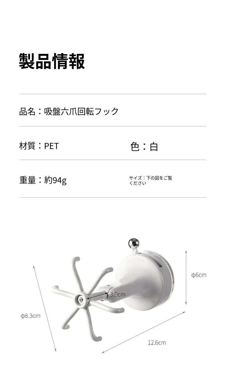 吸盤六爪回転フック(1個)