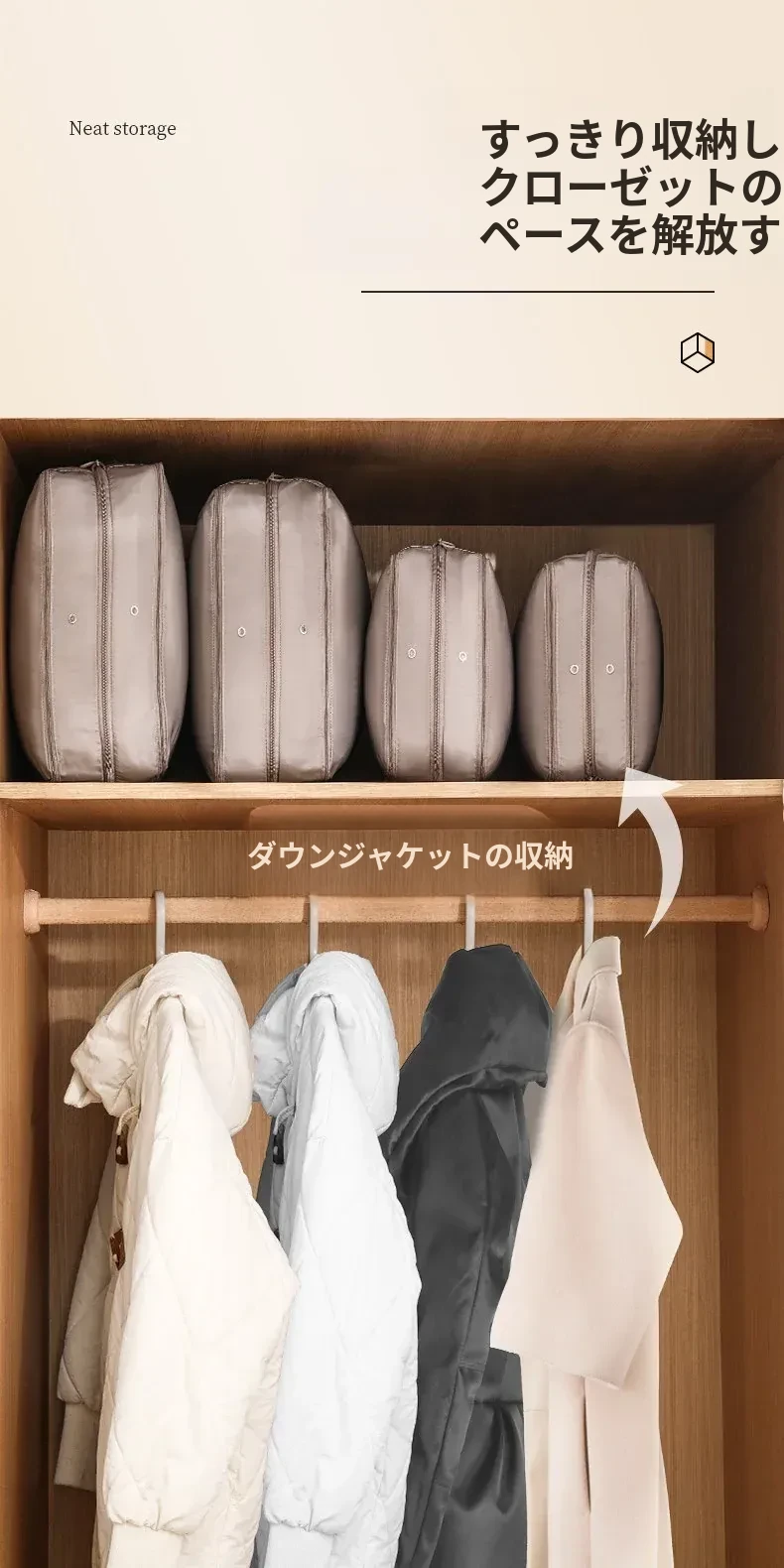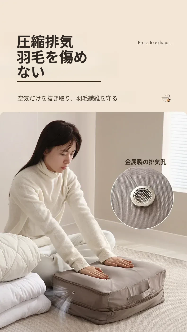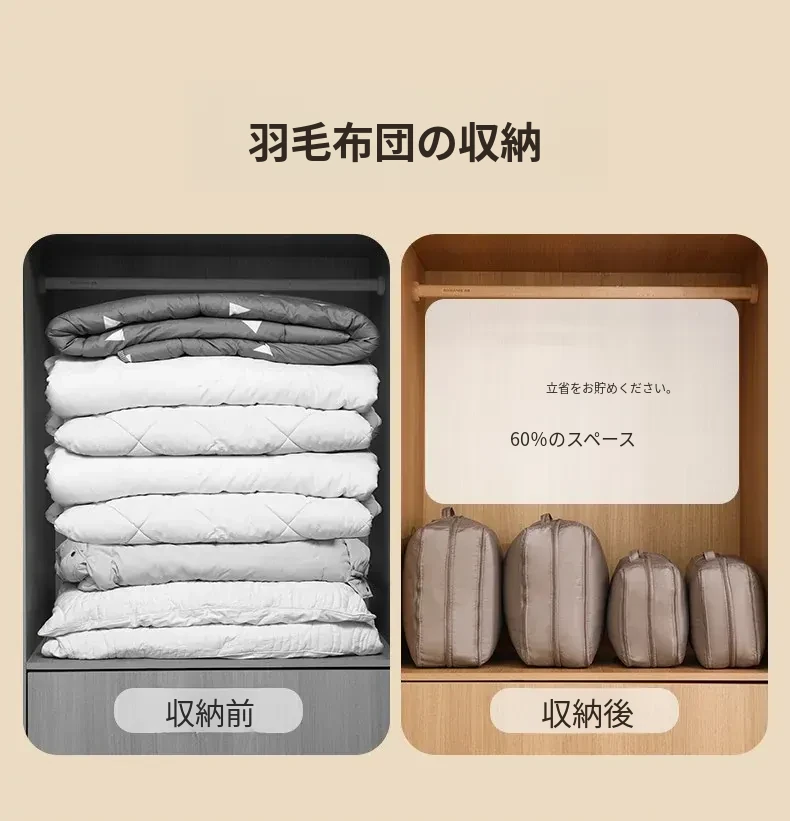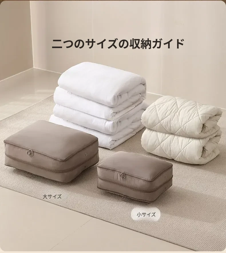 FaSoLa羽毛布団&シルク布団専用圧縮収納袋|大容量で家族全員の冬の必需品をスッキリ整理!ダウンジャケットや布団も一緒に収納可能!